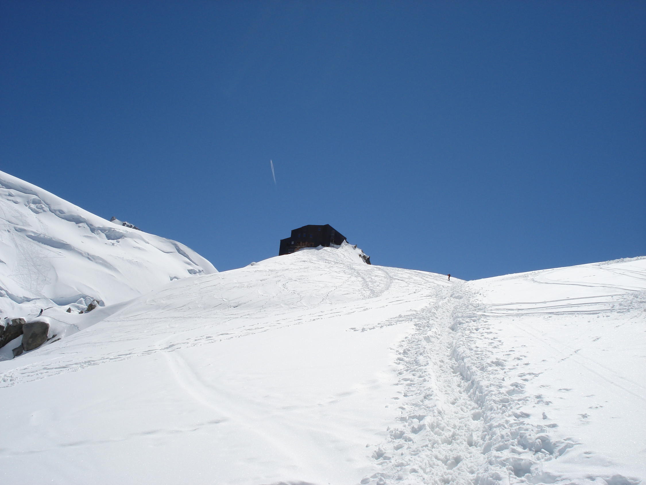 Aufstieg Mont Blanc kurze Tragstelle , leider heute sehr kalt gewesen ein giftiger Nordwind machte uns das Leben schwer, Abfahrt über Nordflanke, am Gipfelhang noch Pulverschnee aber schon alles verfahren, dann decklig, ab Grands Mulets schöner Firn, querung Plan de l Aiguille schöner Sulzschnee.