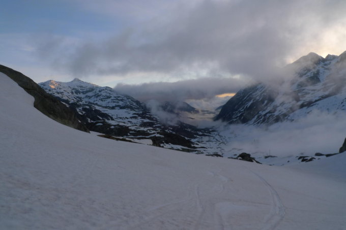 Von der Fibbia zurück zum Gotthardpass musste man den schönen Schnee etwas suchen da die sonnenexponierten Hänge bereits etwas sehr weich waren.