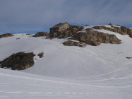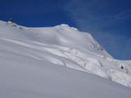 Abfahrt: Ausgezeichnete Verhältnisse vom Gipfel bis ca. 2700 m. Steilstufe bei Bockberg etwas ruppig. Übriges Gelände gut befahrbar.
