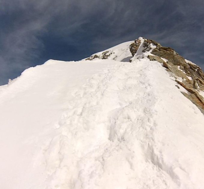 Ich bin über die Normalroute aufgestiegen. Es herrscht zur Zeit bester Trittschnee mit sehr wenig Felskontakt. Habe die Route selten so gut angetroffen. Bin dann über die Südwand abgefahren. Es hatte relativ viel Triebschnee in der Wand. Stöcke mit Pickelaufsatz sind zu empfehlen!!!