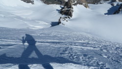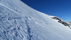 Nassschneerutsche zwischen 2700 und 2400m fast bei jedem Schwung oder Querung.