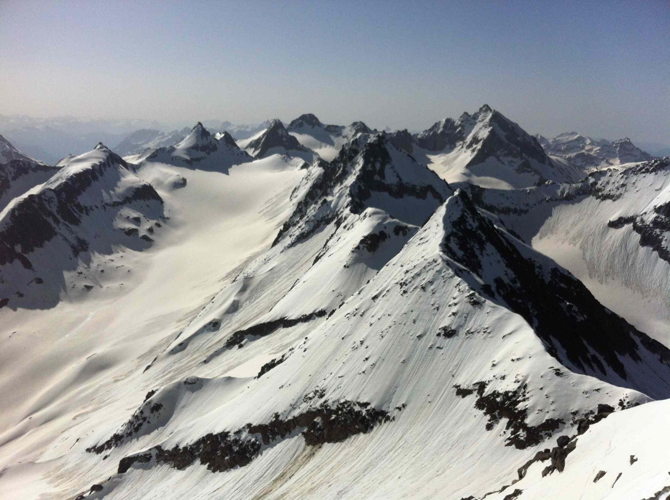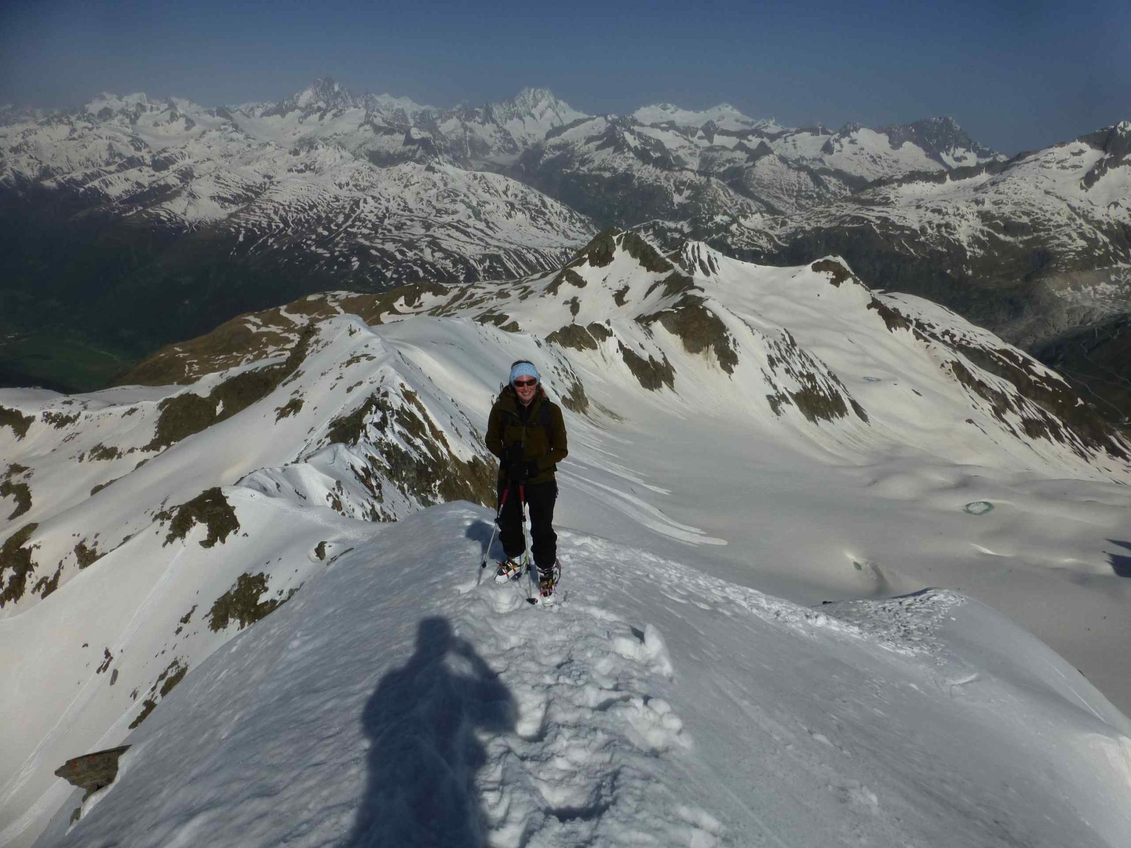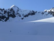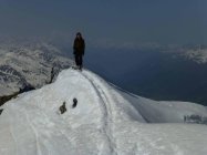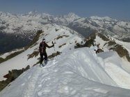 Aufstieg ab Skidepot auf Grat und Gipfel sind gut gespurt.