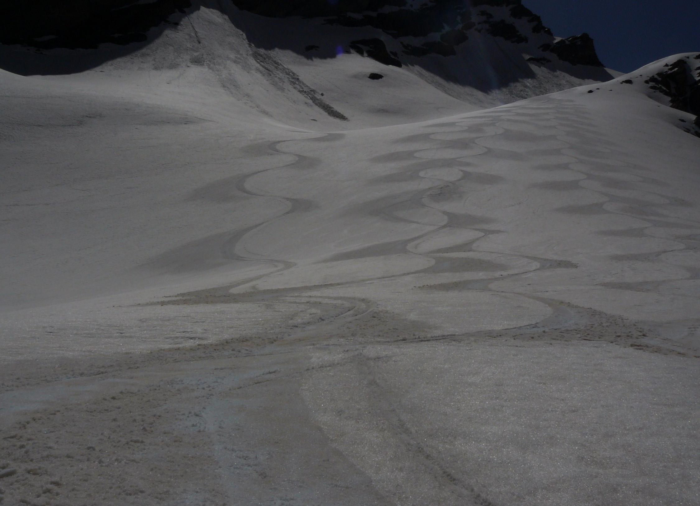 Absolute Spitzenverhältnisse bis hinunter zum Bach auf 2100m ü.M. Strässchen zur Hinter Bergalga gut mit Mountain-Bike befahrbar. Wenige Schneereste. Traumwetter und Sicht!