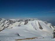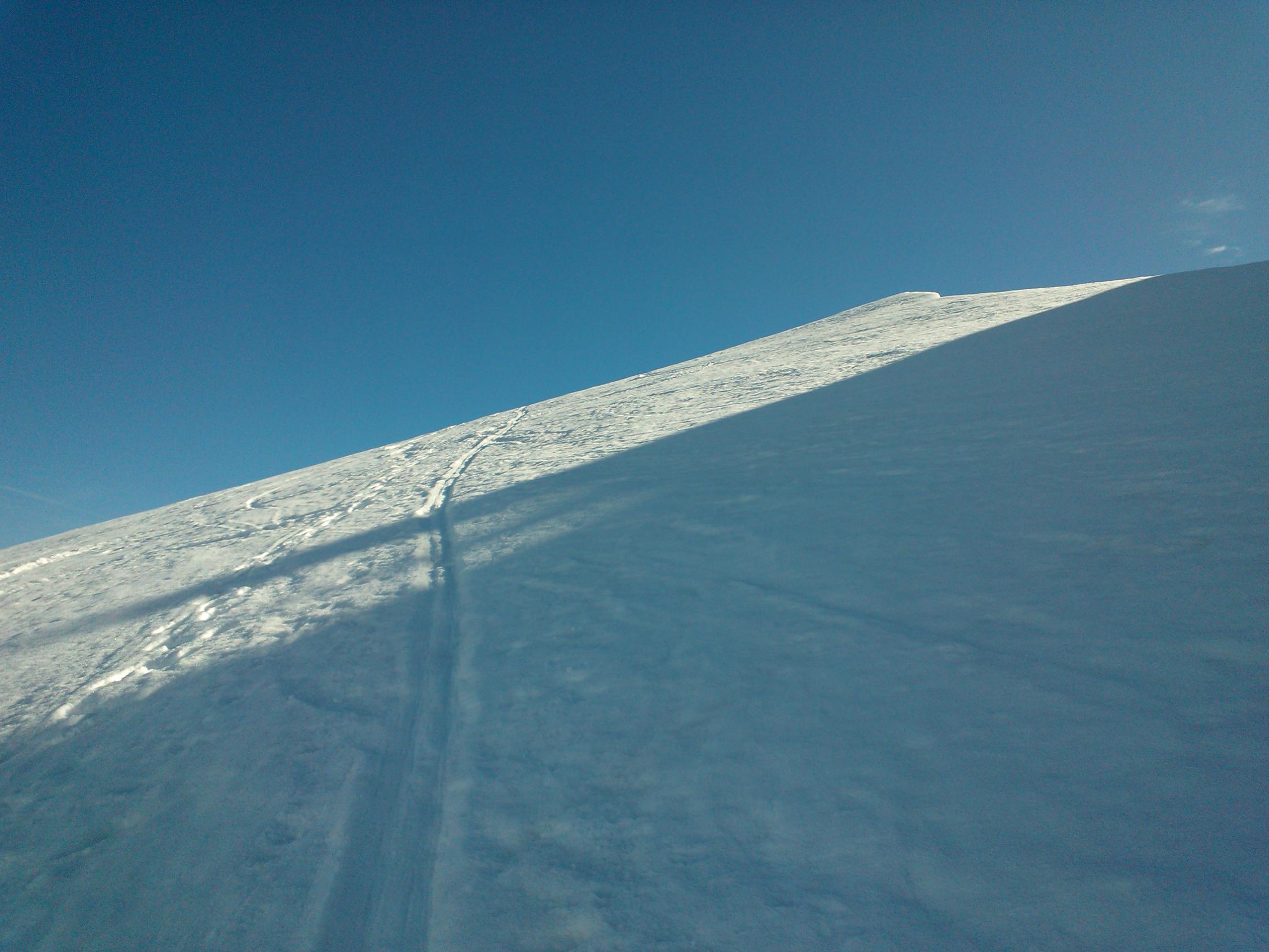 Entsprechend der Hitze war der Schnee bis gegen 2900 MüM nicht gefroren. Trotzdem noch knapp hinter dem PP Chuobärgli anfellen möglich. Der erste Bruch auf 2400 MüM ging heute noch gut, aber generell ist der Schnee in der letzten Woche stark geschwunden. Oberhalb des 2. Bruchs auf knapp 3000 MüM dann tragfähig gefrorener, bester Firn! Aufstieg problemlos, Gipfelrast im Hemd und ohne Handschuhe mit wenigen anderen Tourengängern. Abfahrt bis 3000 MüM super Firn, dann rasch Pflutter, den man gut schwingen konnte. Ab ca. 2600 MüM durchgebratener Sommerschnee. Störend war der Saharastaub, der die Sache stark bremste. Trotzdem nochmal eine sehr schöne Tour am Susten.