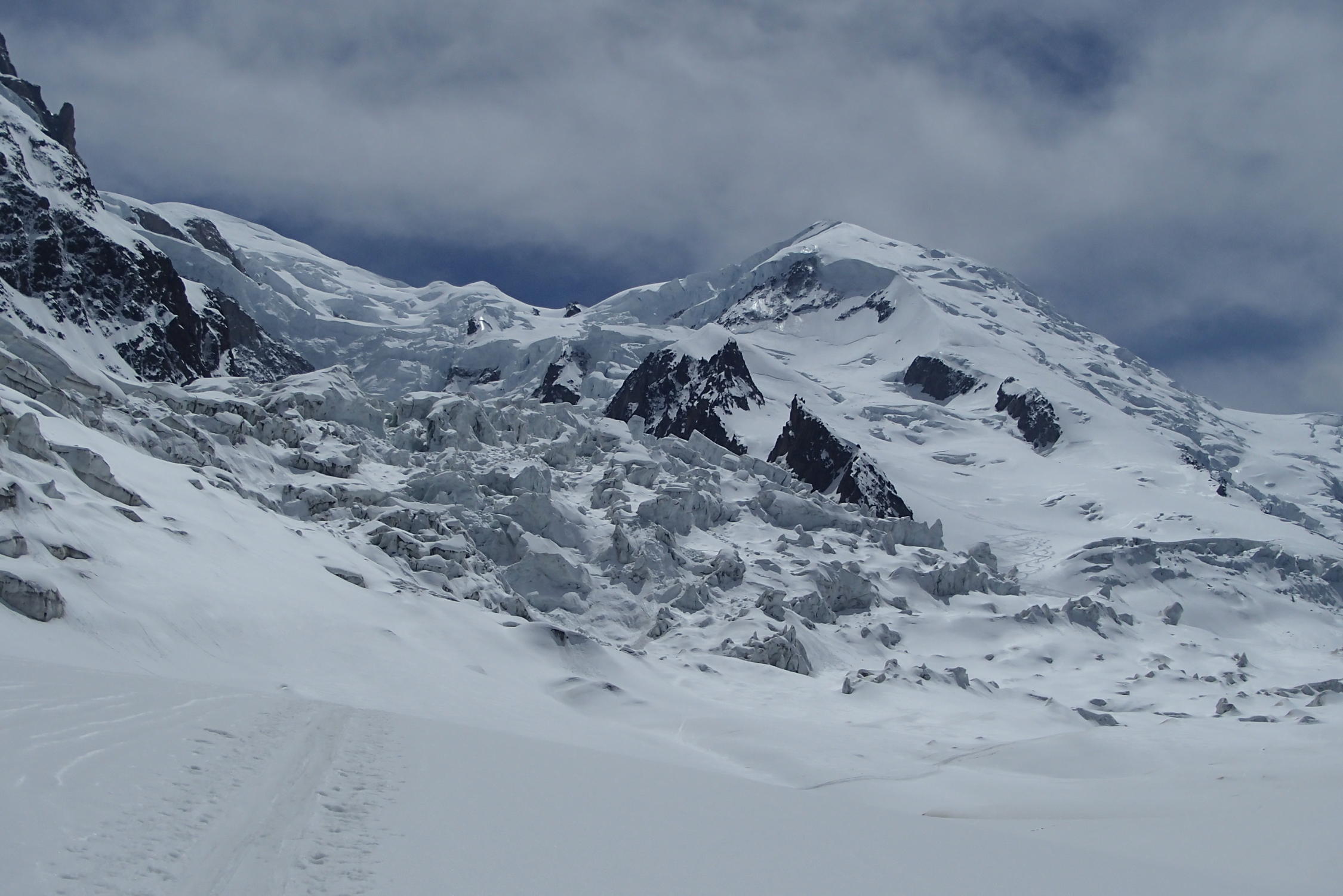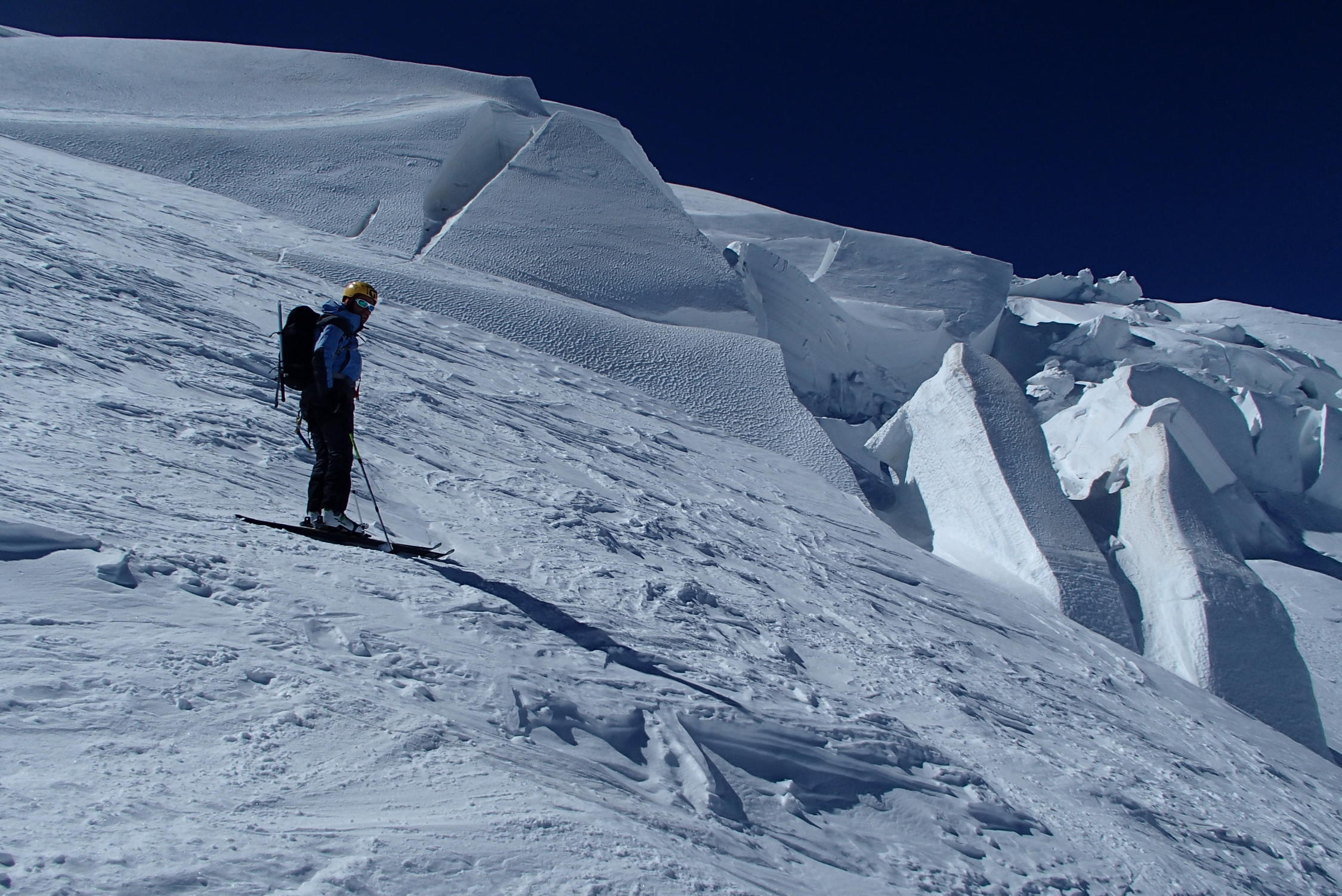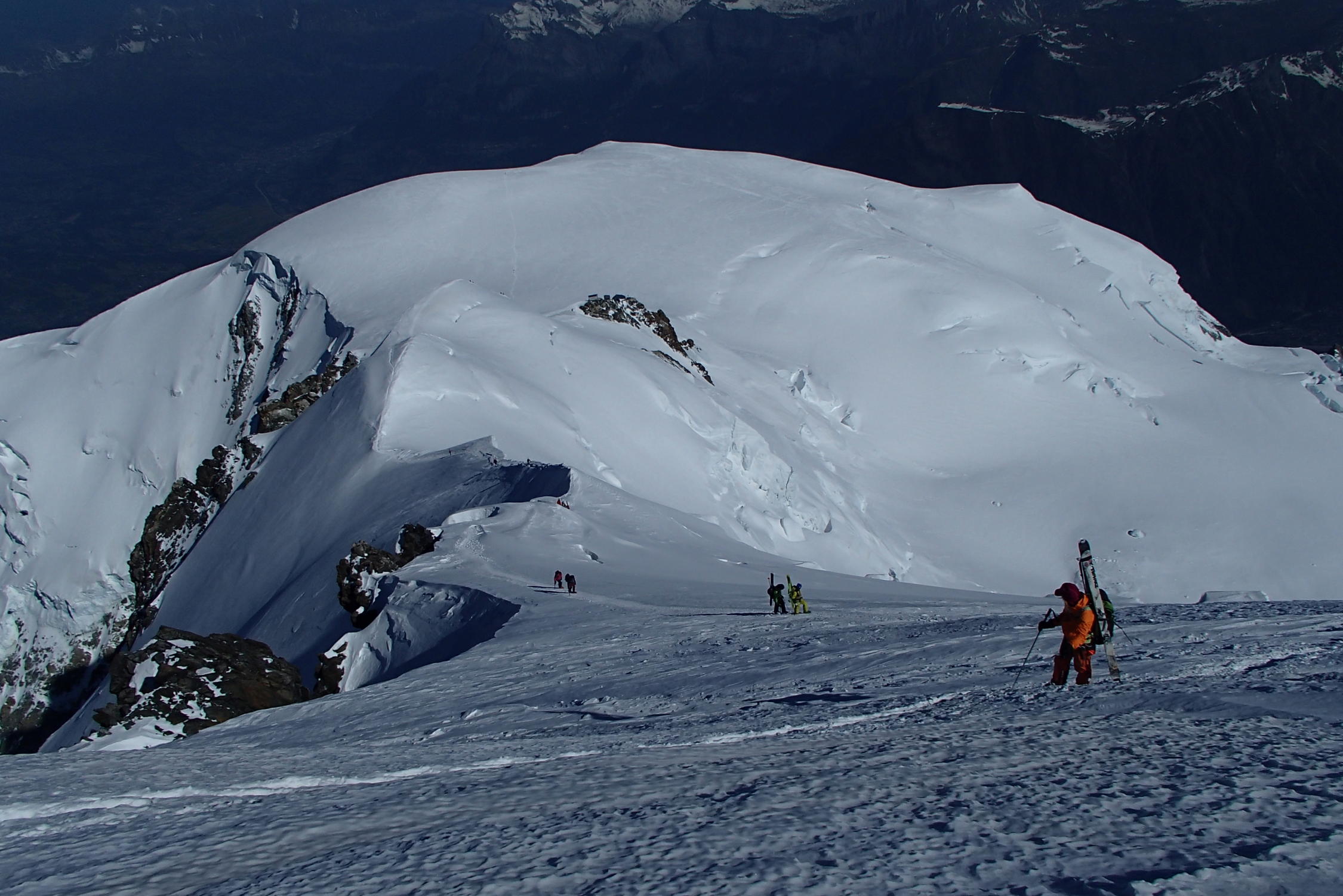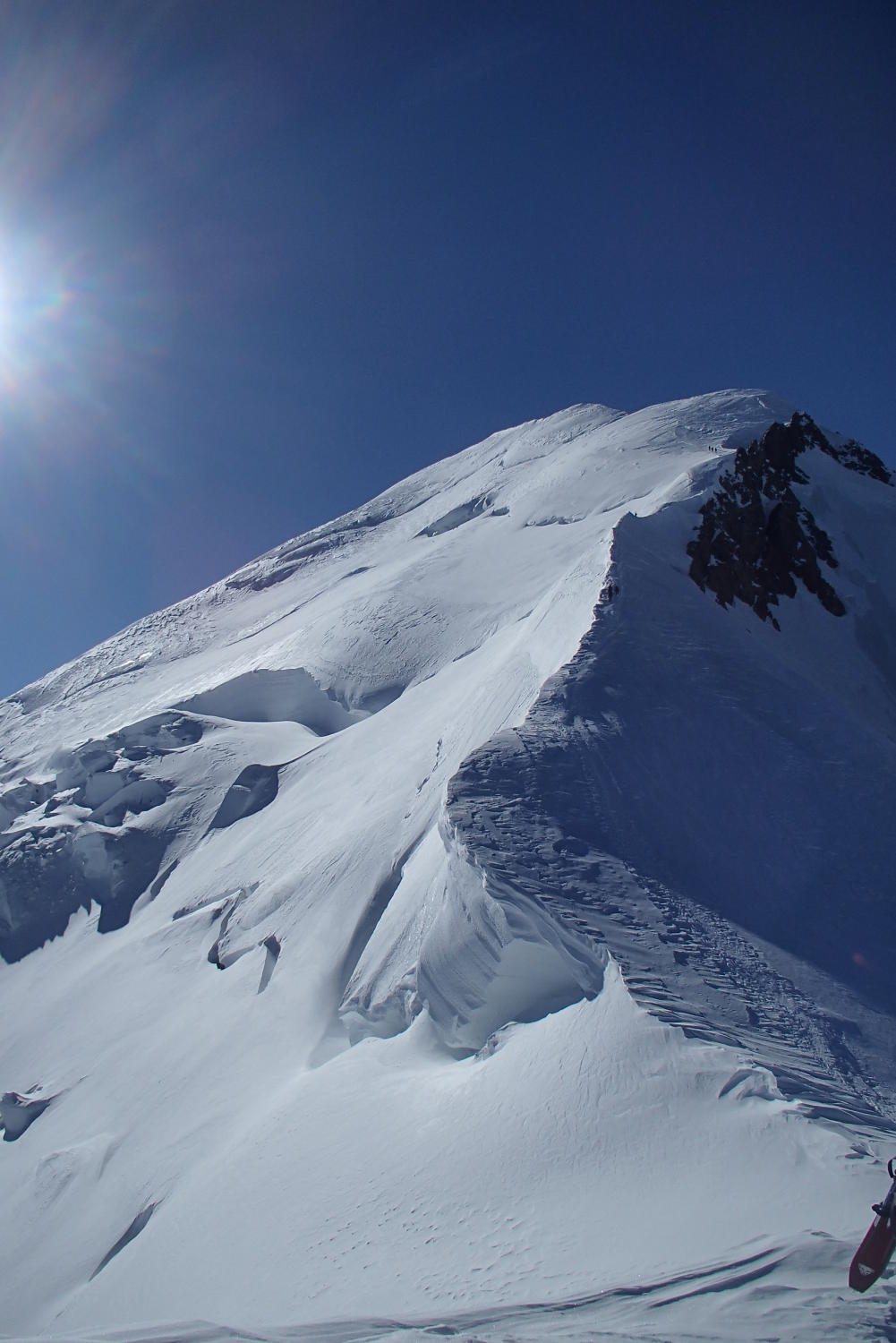 Schone wetter , gut sulz schnee, aber große und zahlreiche Gletscherspalten, besonders unten 3000m in Jonction und Bossons Gletscher, Arete des Bosses sehr gut