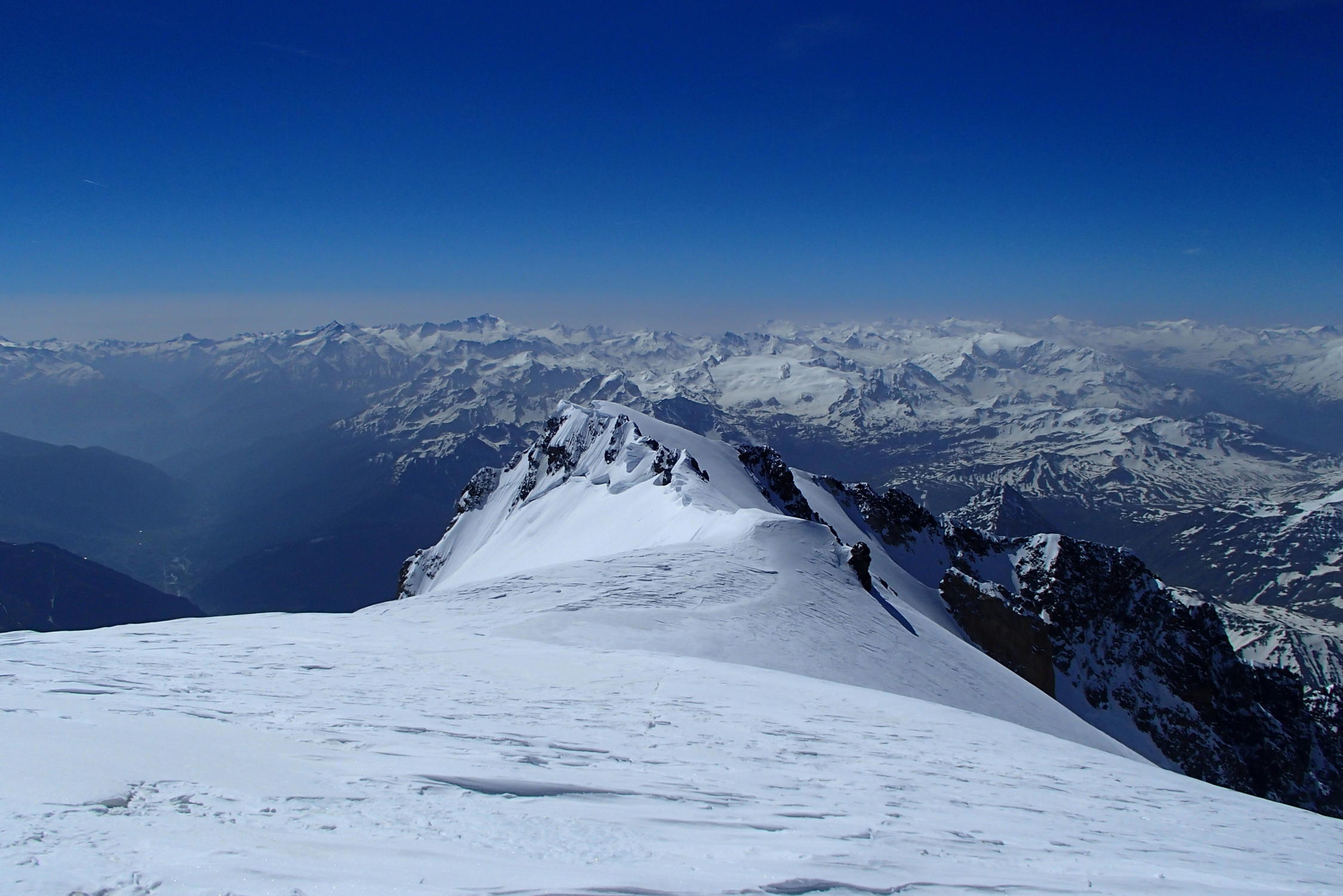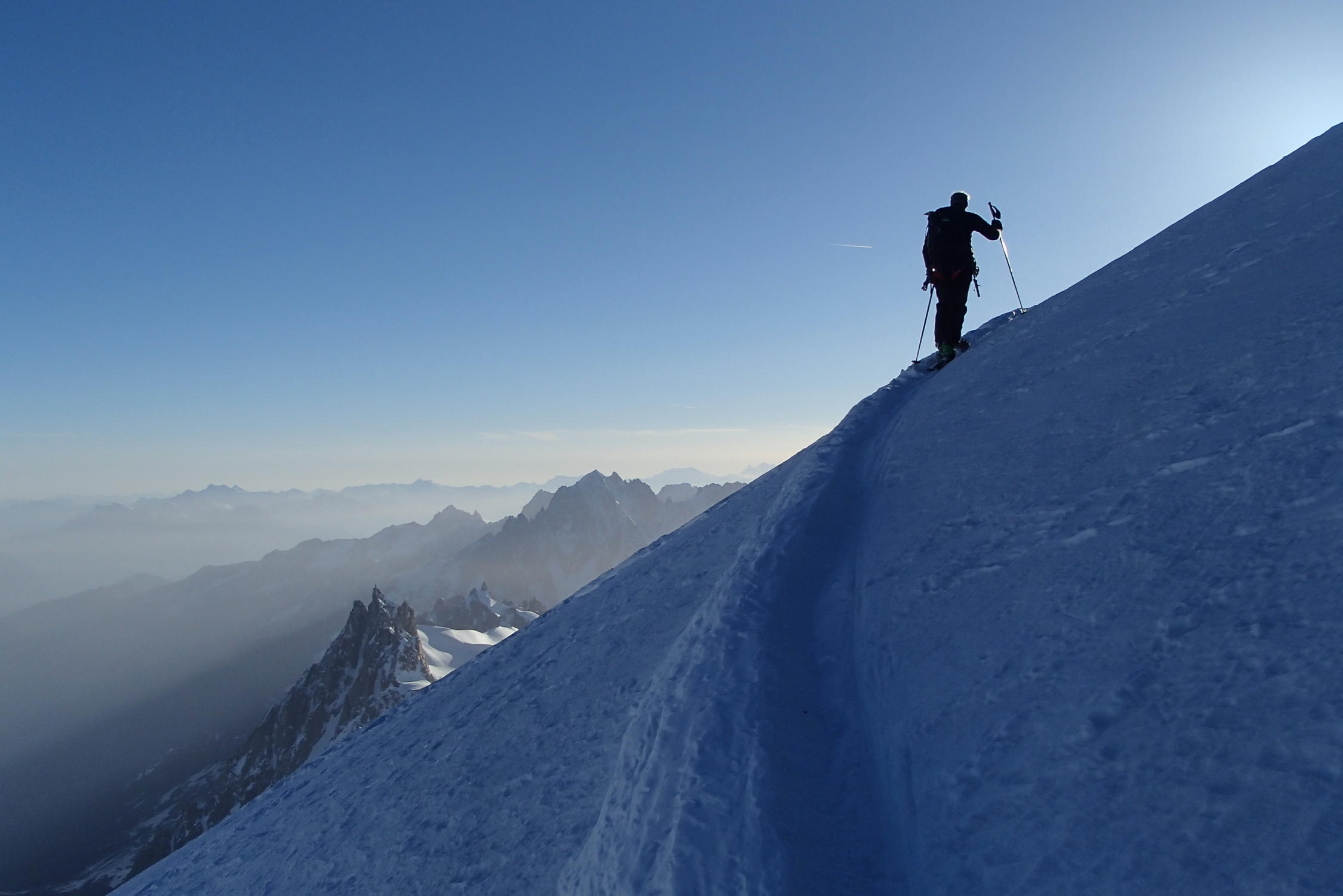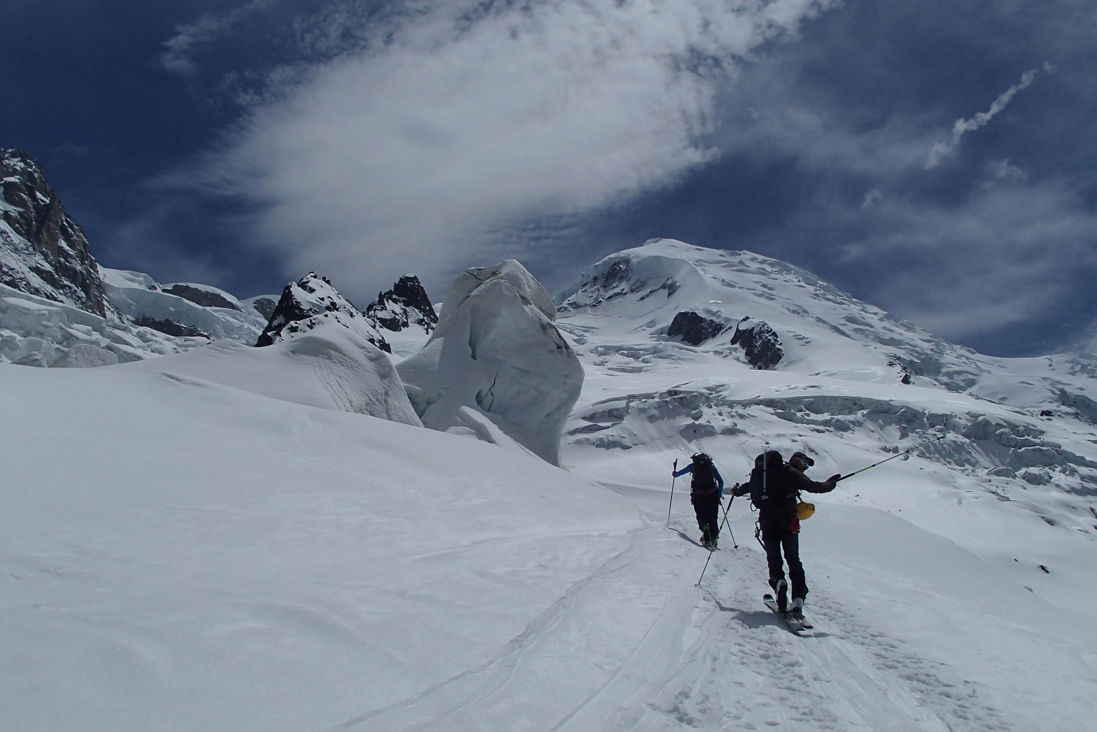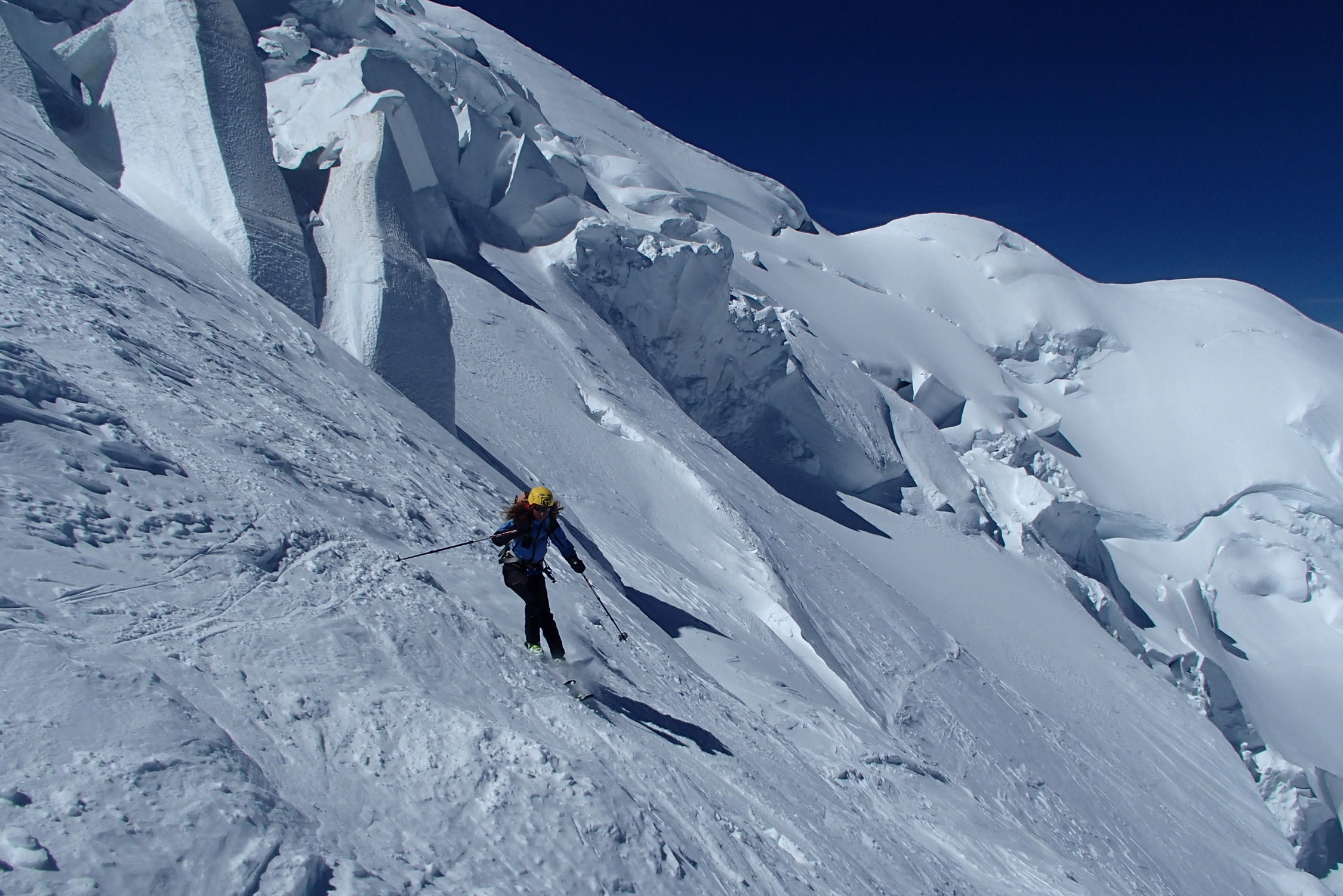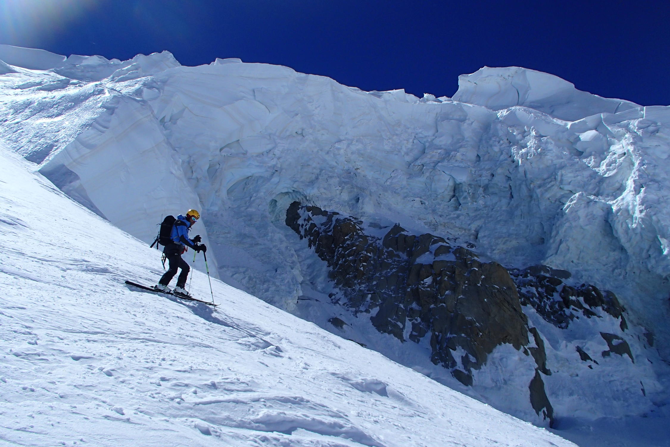Schone wetter , gut sulz schnee, aber große und zahlreiche Gletscherspalten, besonders unten 3000m in Jonction und Bossons Gletscher, Arete des Bosses sehr gut