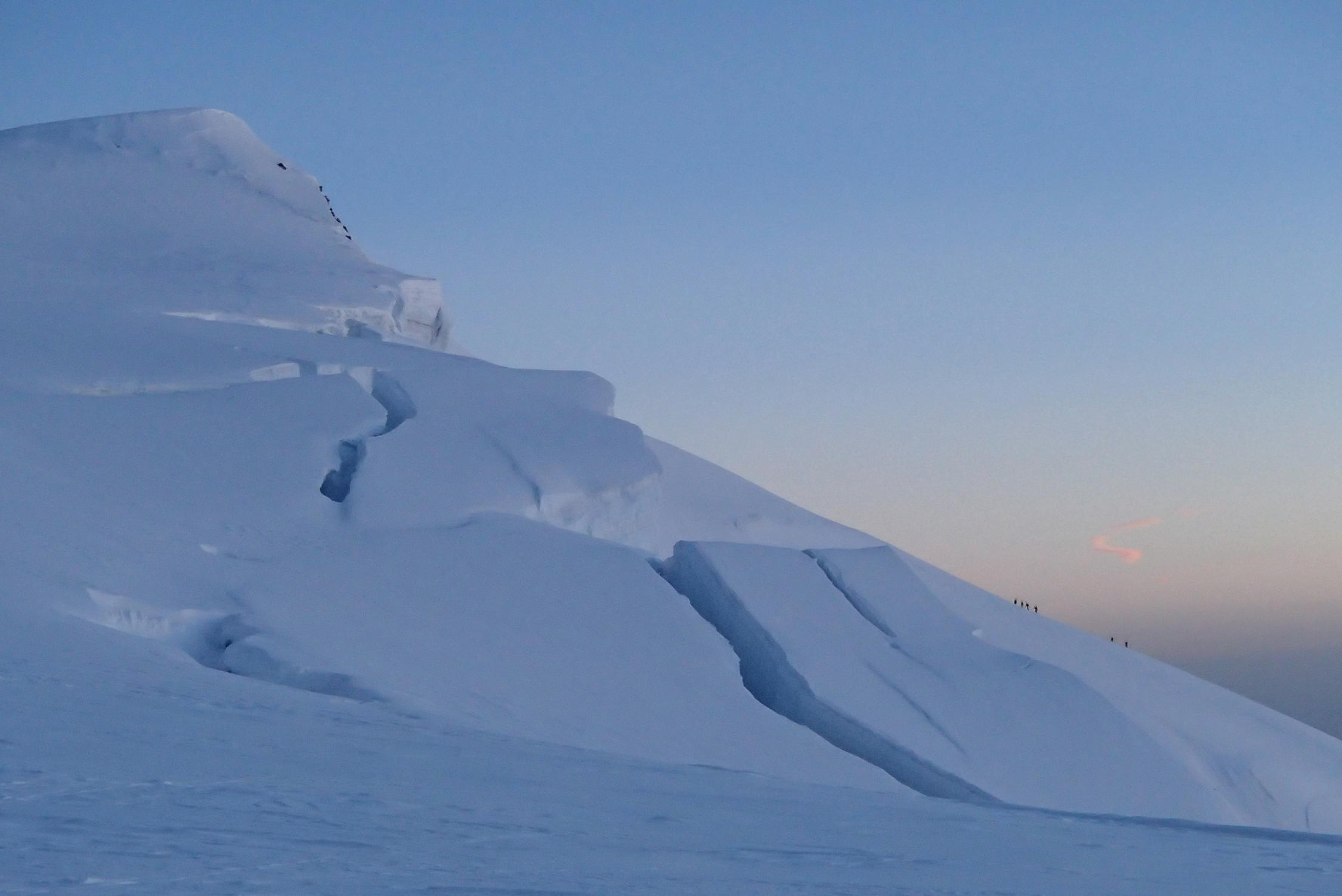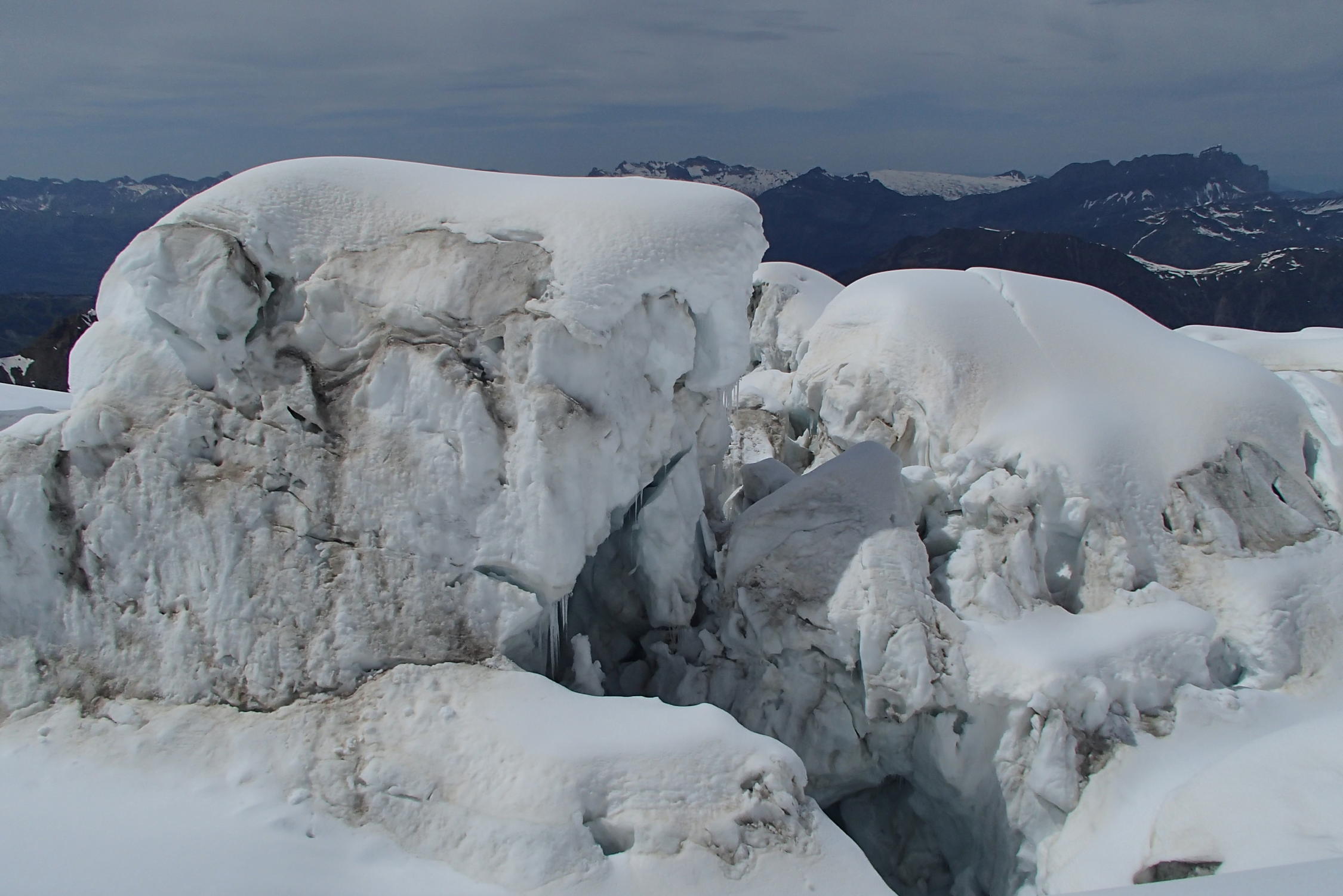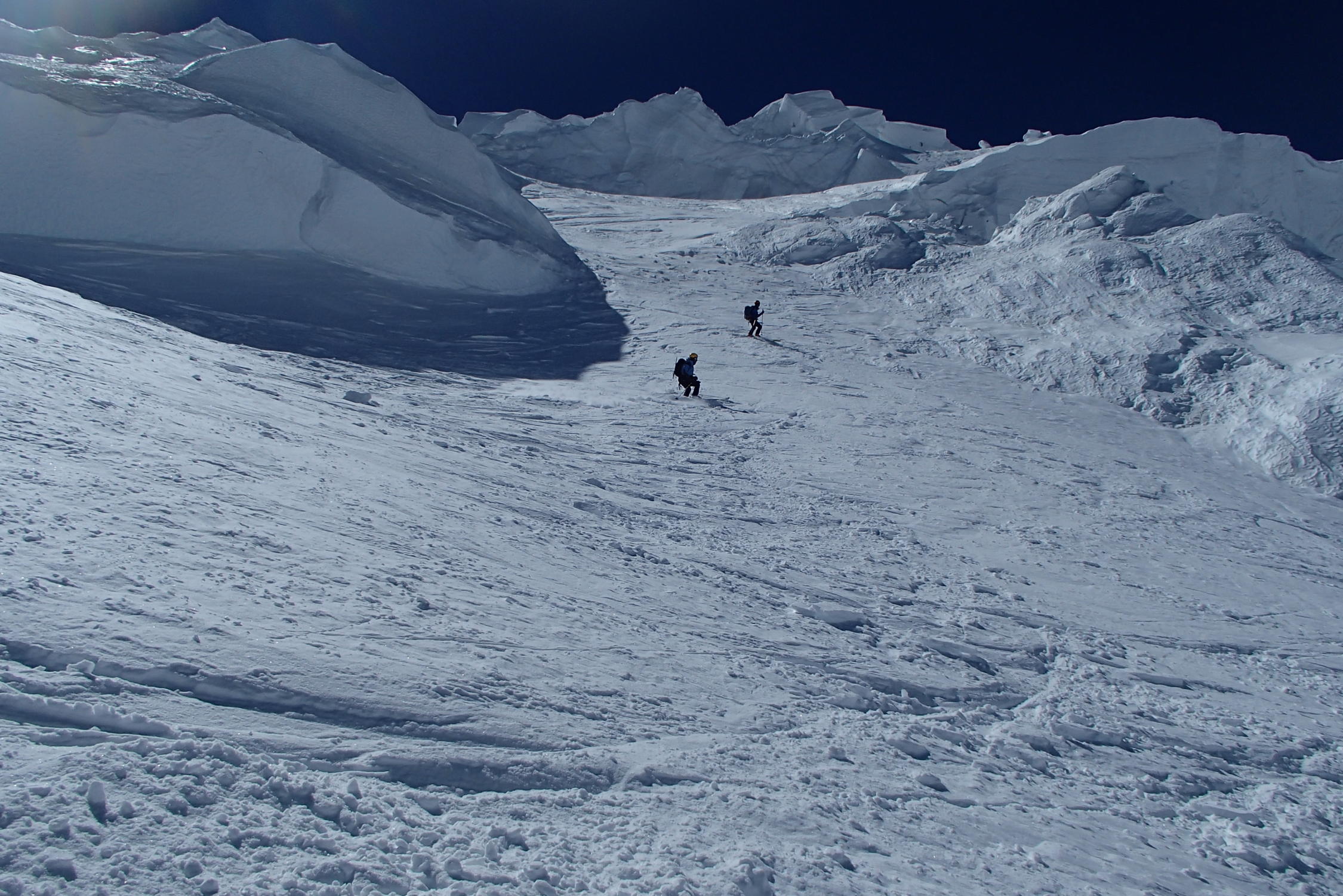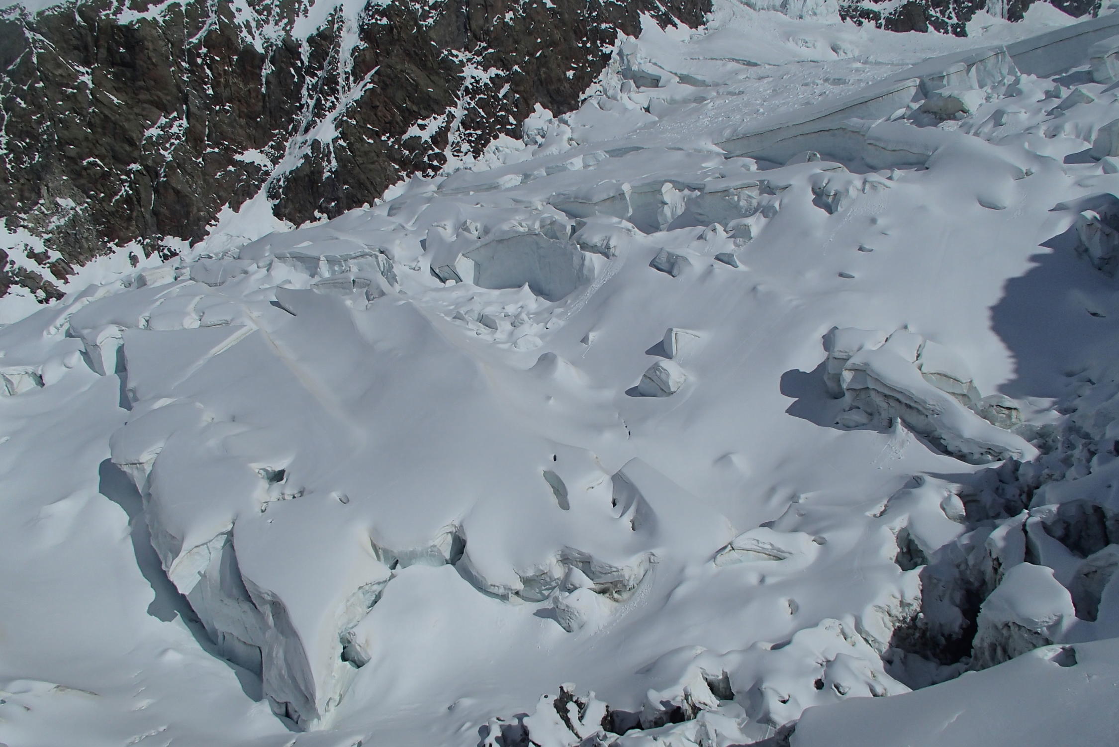 Schone wetter , gut sulz schnee, aber große und zahlreiche Gletscherspalten, besonders unten 3000m in Jonction und Bossons Gletscher, Arete des Bosses sehr gut