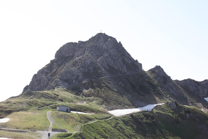 Zustieg: kurz unterhalb des Einstiegs noch ein Altschneefeld, was bei der Hitze kein Problem war, da soichweich.
