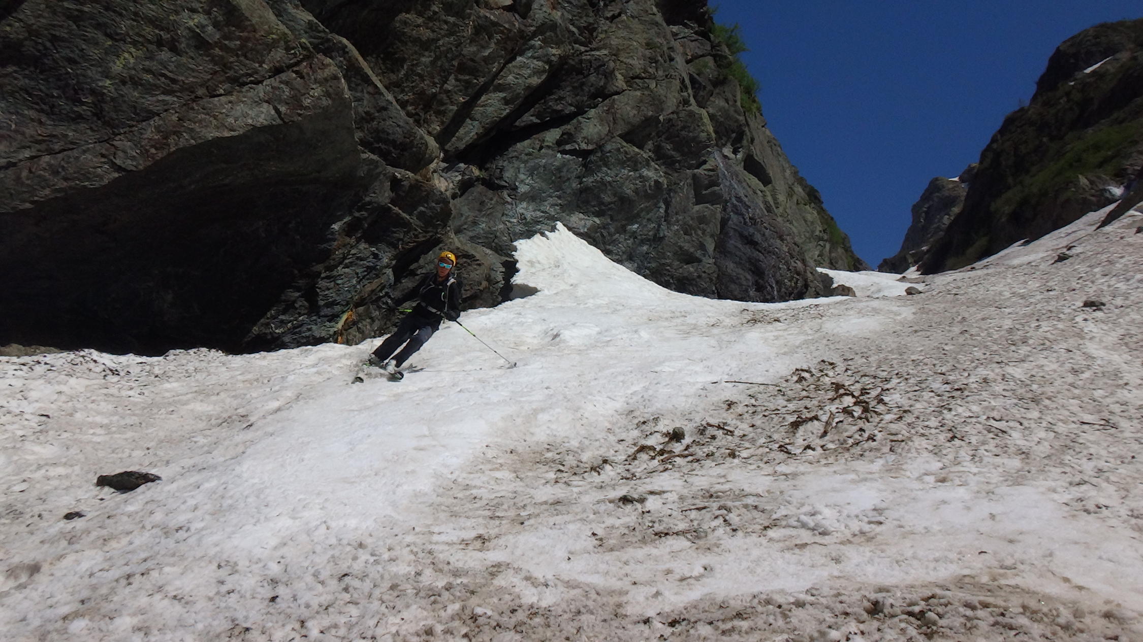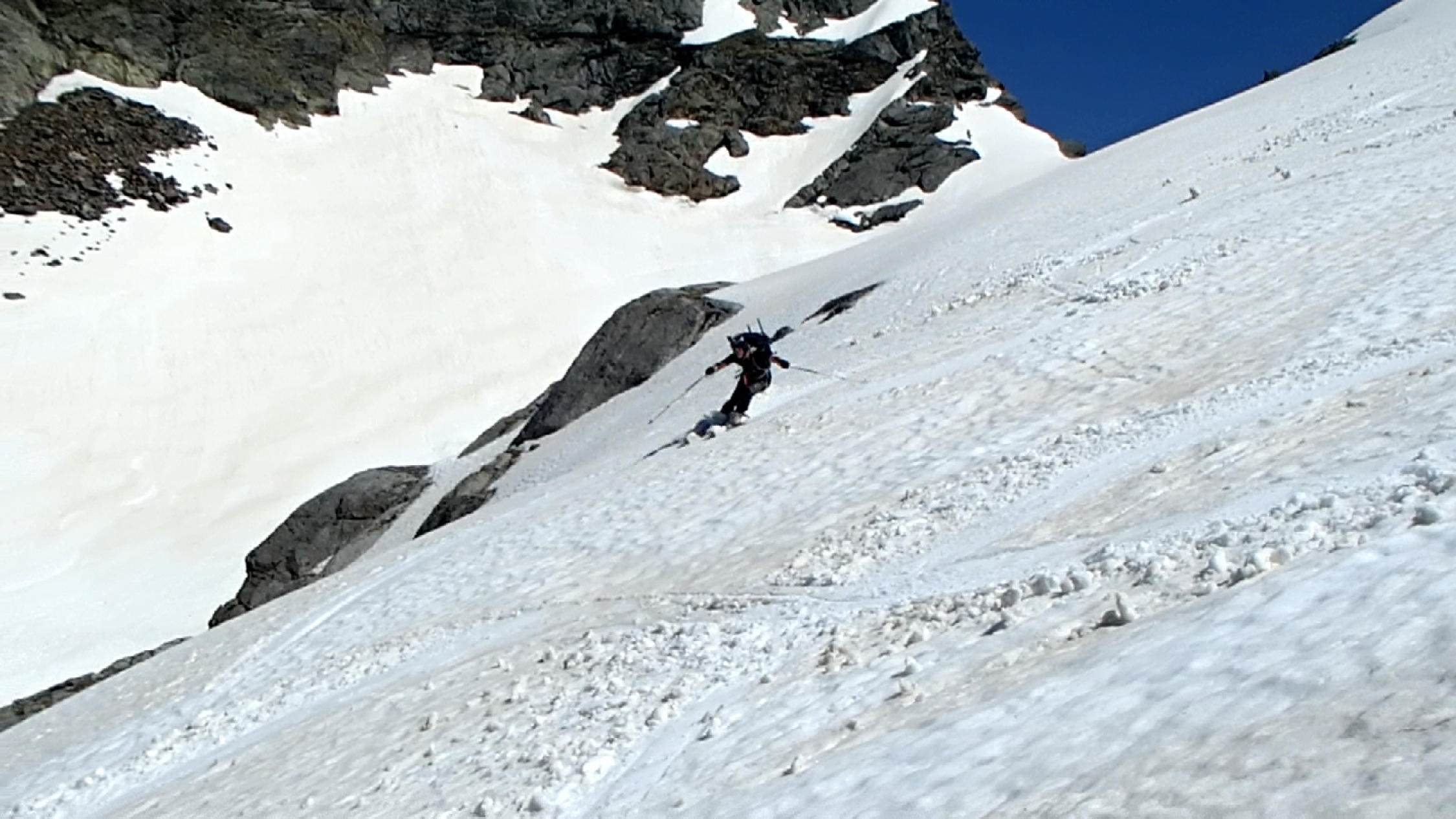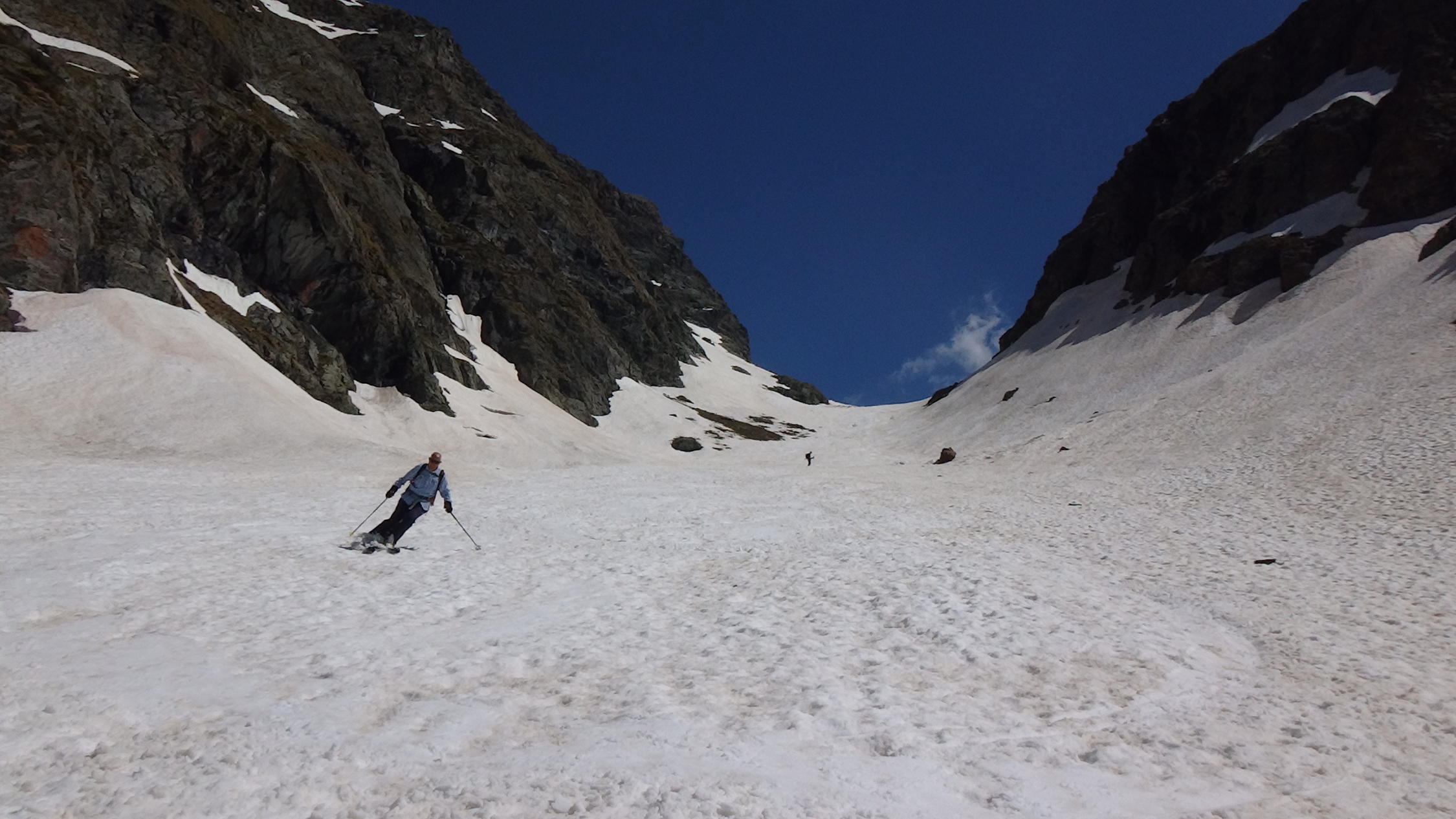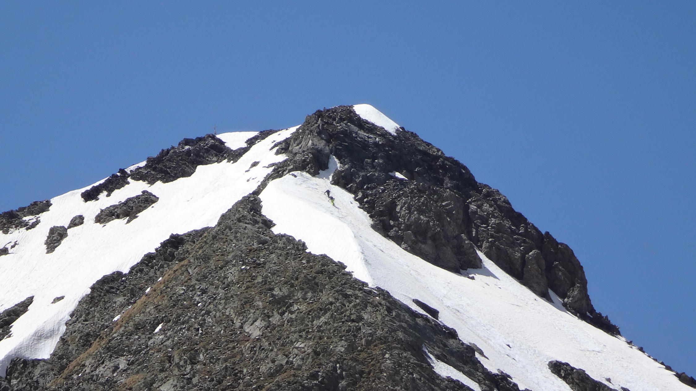 Gipfel 2750-2926m ohne ski , schnee und stein , steil, ski von 2750 bis etwa 2000m sulz gut ski, 2000m-1400 sulz sehr gut, dann bis 1250m farbhar,