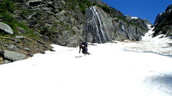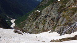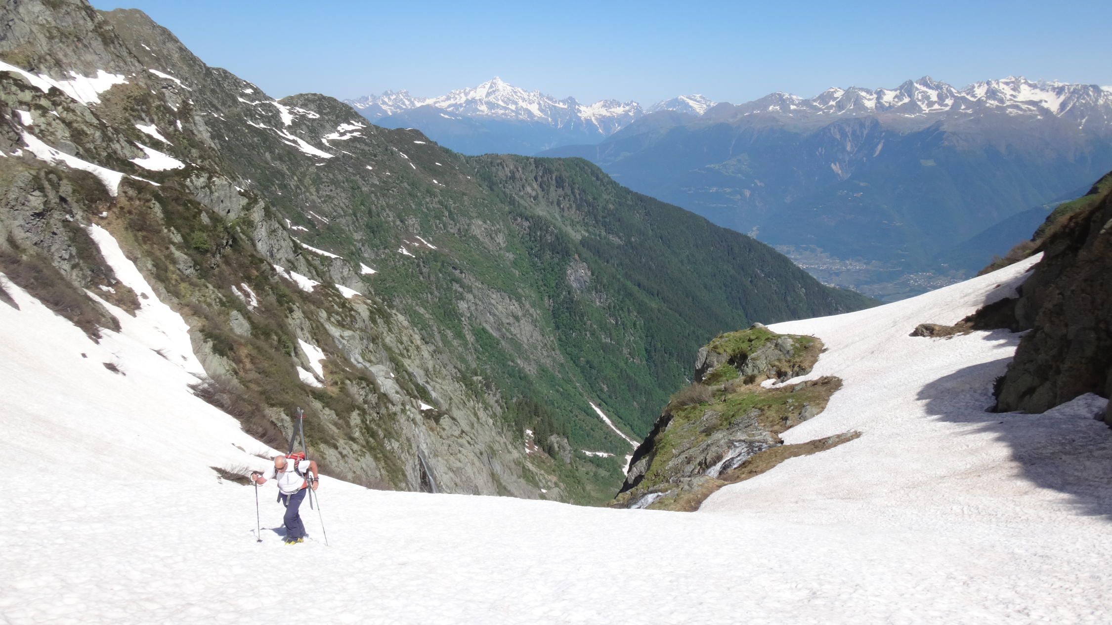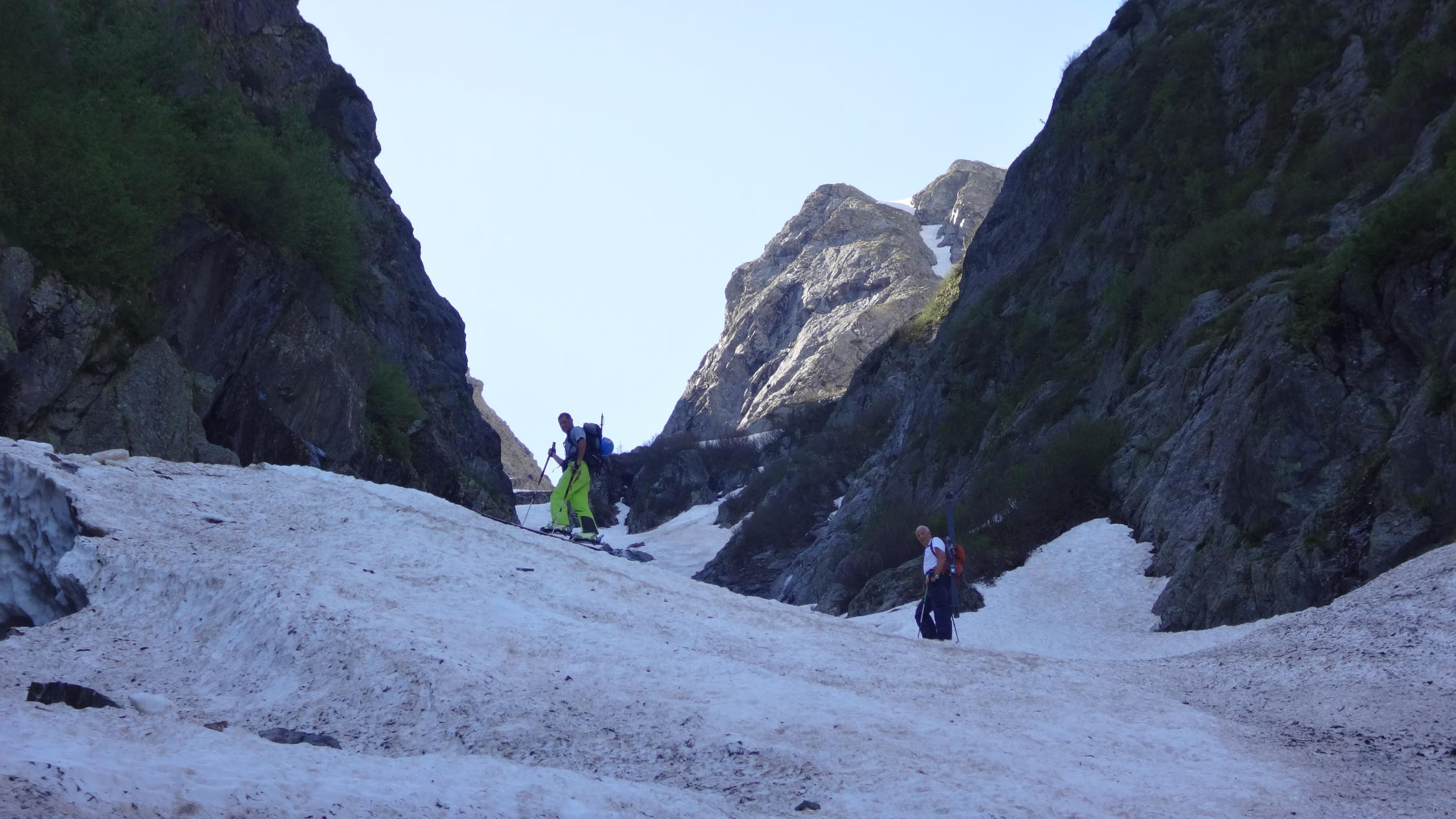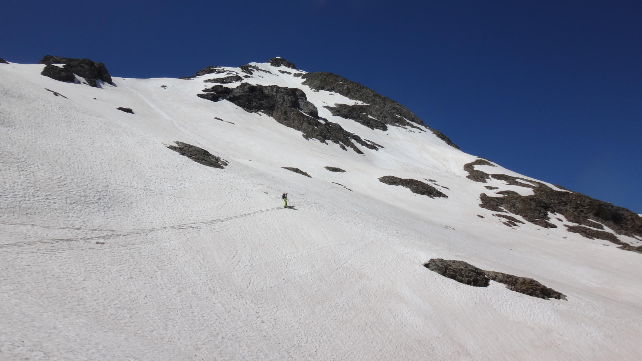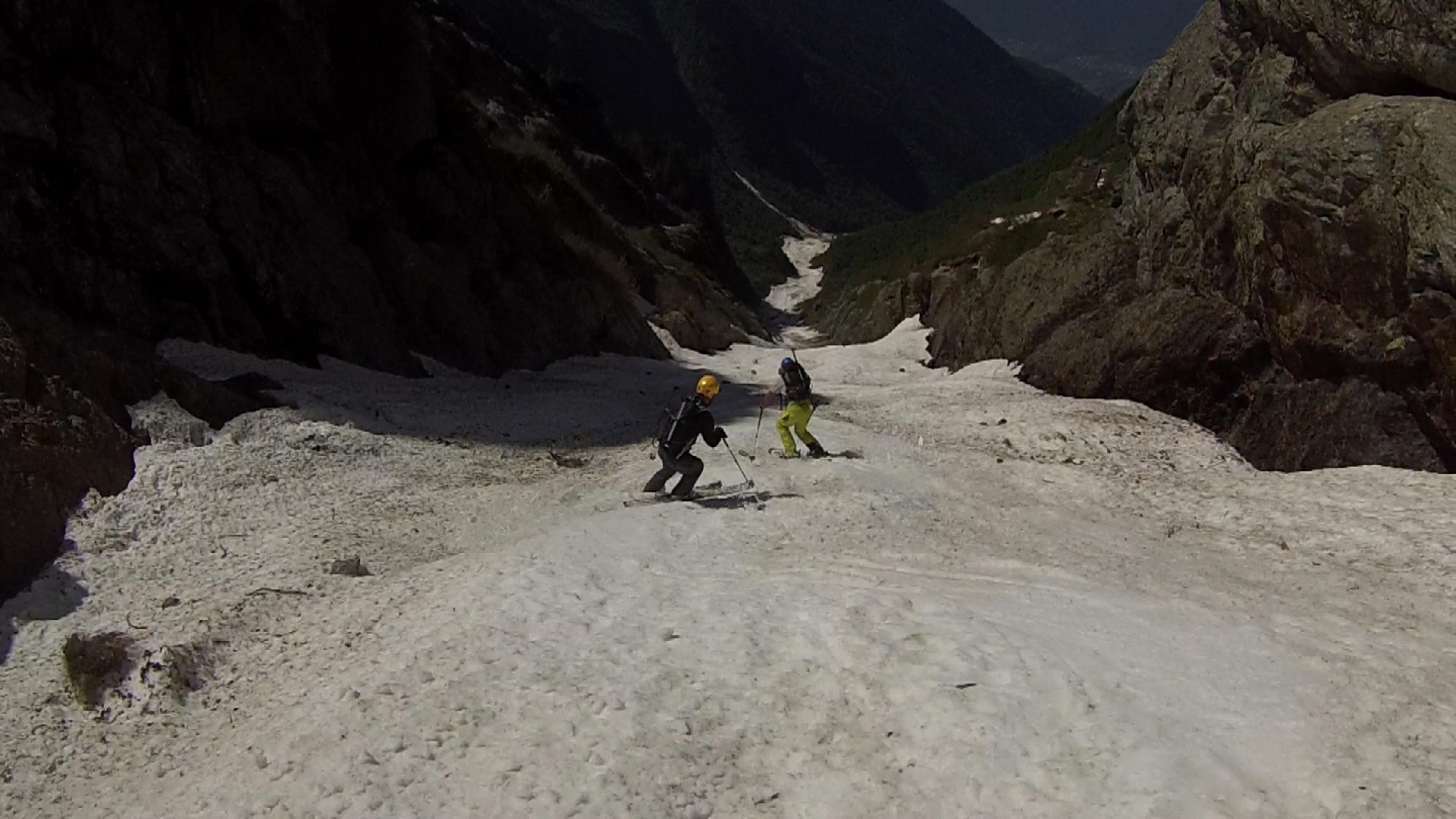Gipfel 2750-2926m ohne ski , schnee und stein , steil, ski von 2750 bis etwa 2000m sulz gut ski, 2000m-1400 sulz sehr gut, dann bis 1250m farbhar,