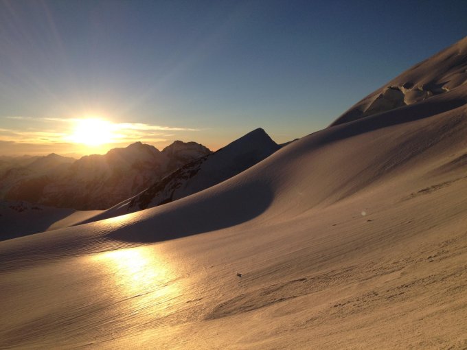Nacht war gerade genügend kalt, dass der Schnee auf der ganzen Tour zu Fuss und mit Ski tragfähig war (Start 2.30)