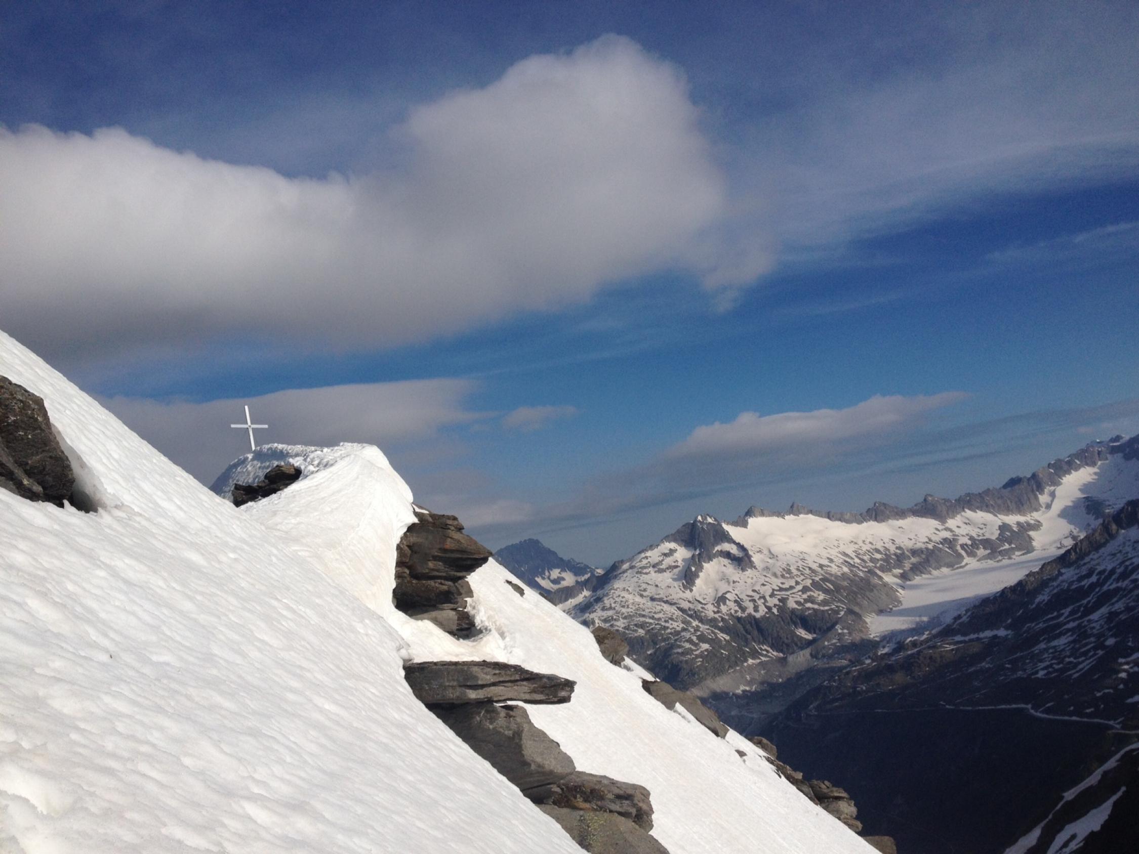 Ab Muttgletscher anschnallen und bis zur Nordflanke. Diese ist noch gut eingeschneit. Gipfelhang ebenfalls.