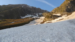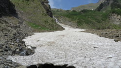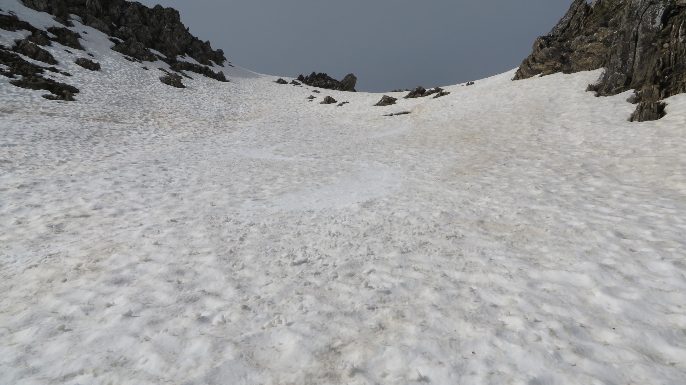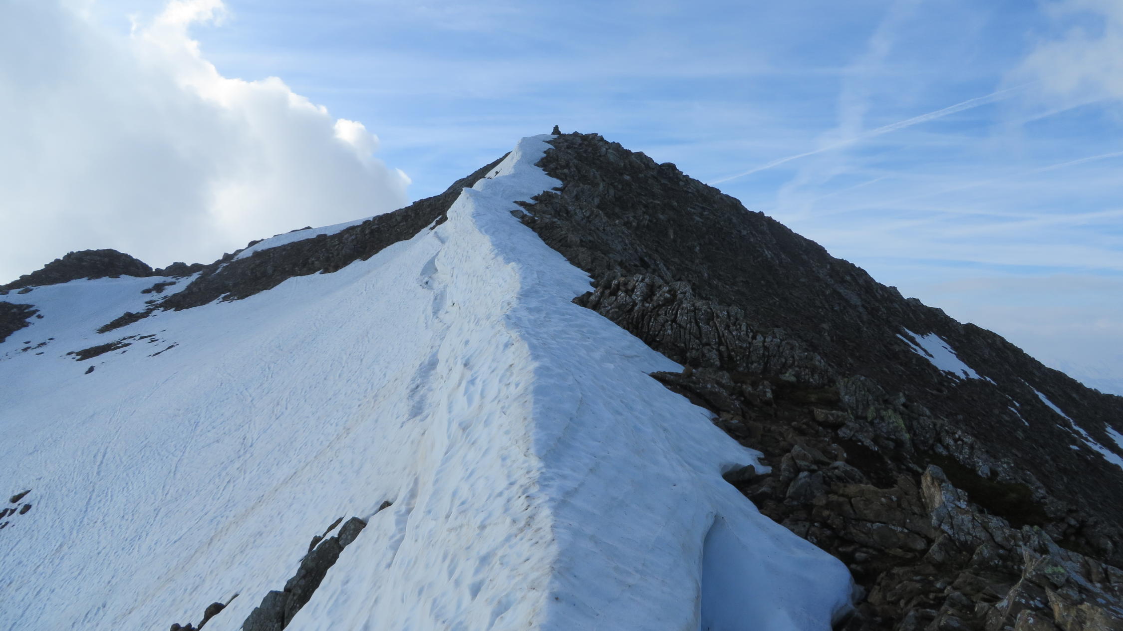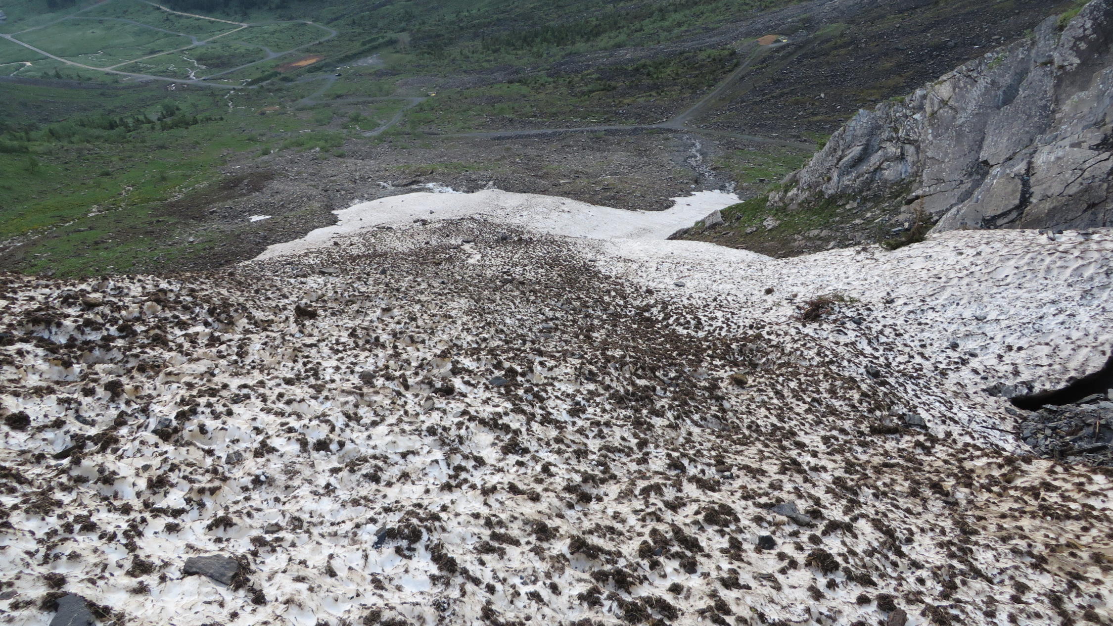 Aufstieg und Abfahrt leicht aufgesulzt und leicht gewellt aber überraschend gut zum fahren.Zum teil hat es von den zahlreichen Lawinen des Winters ein bisschen dreck und ist Steine gespickt.
