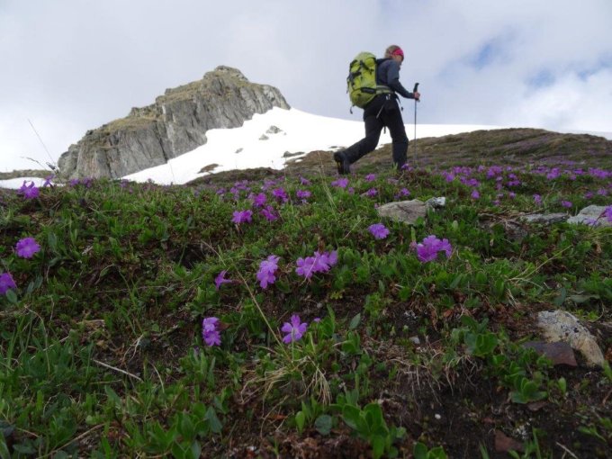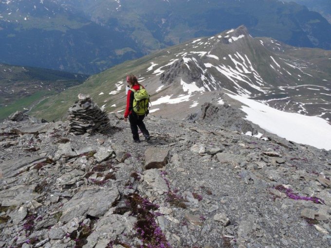Es hat noch vereinzelt ein paar Altschneefelder, die aber kaum stören und im Abstieg der Tour noch zusätzliche Würze geben.