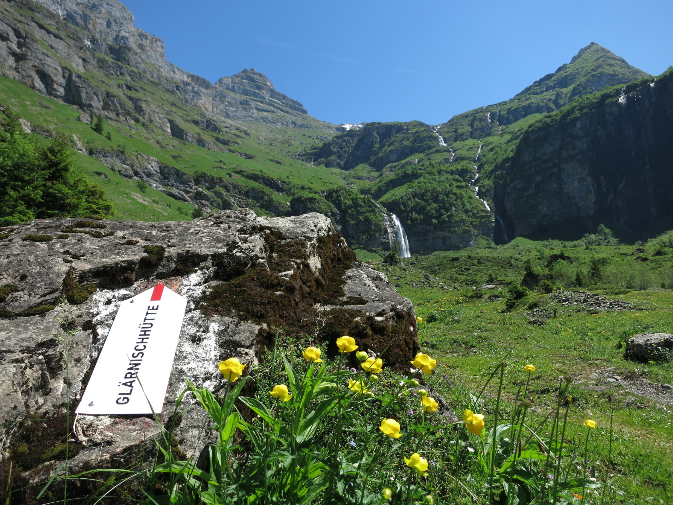 Klettergarten, Boulderparcours und Mehrseillängenrouten um die Hütte.