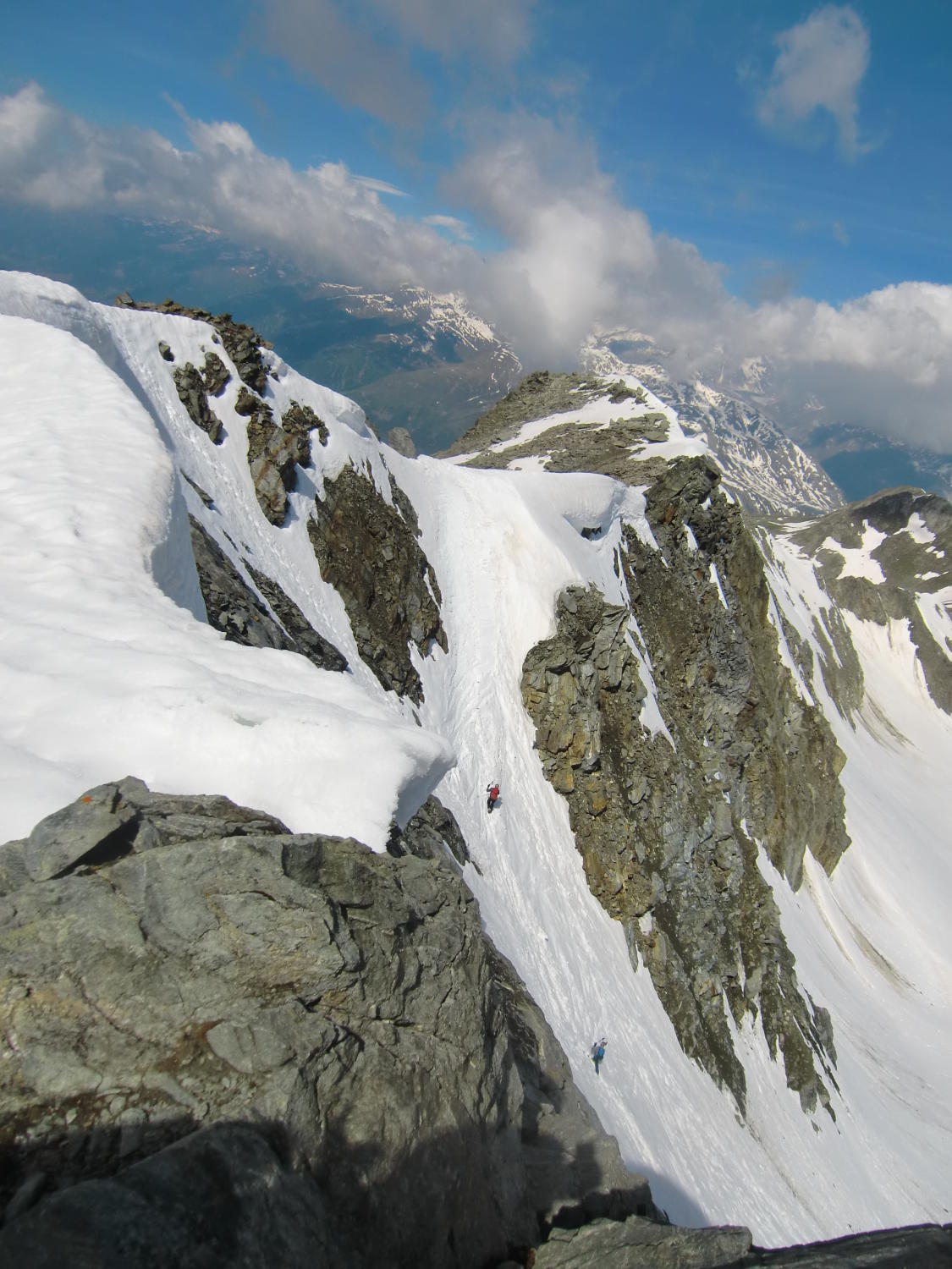 Harscheisen, Steigeisen und Pickel nicht zwingend, kann aber ab Skidepot evtl. nützlich sein, je nach Verhältnissen. heute nicht zwingend notwendig.