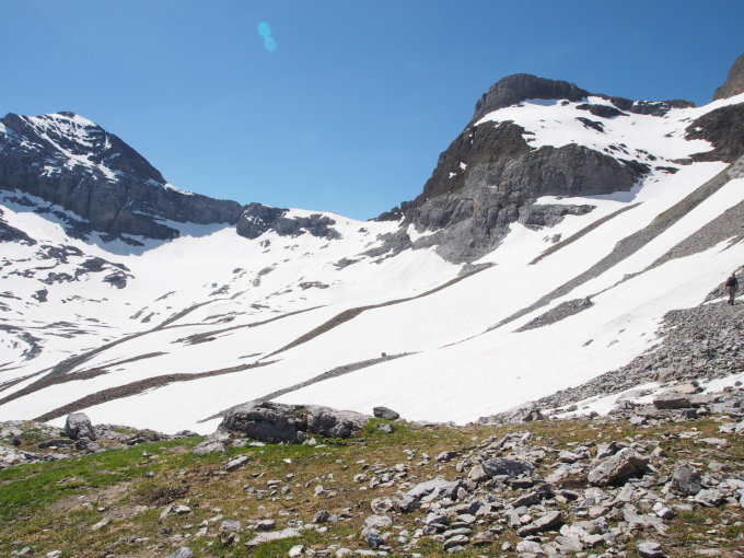 In den Hochebenen zum Rot Grätli noch viel Schnee. Auch das Grätli selbst ist noch komplett schneebedeckt. Der Aufstieg bis dorthin ist aber kein Problem und war durch den Schnee meines Erachtens auch deutlich einfacher.