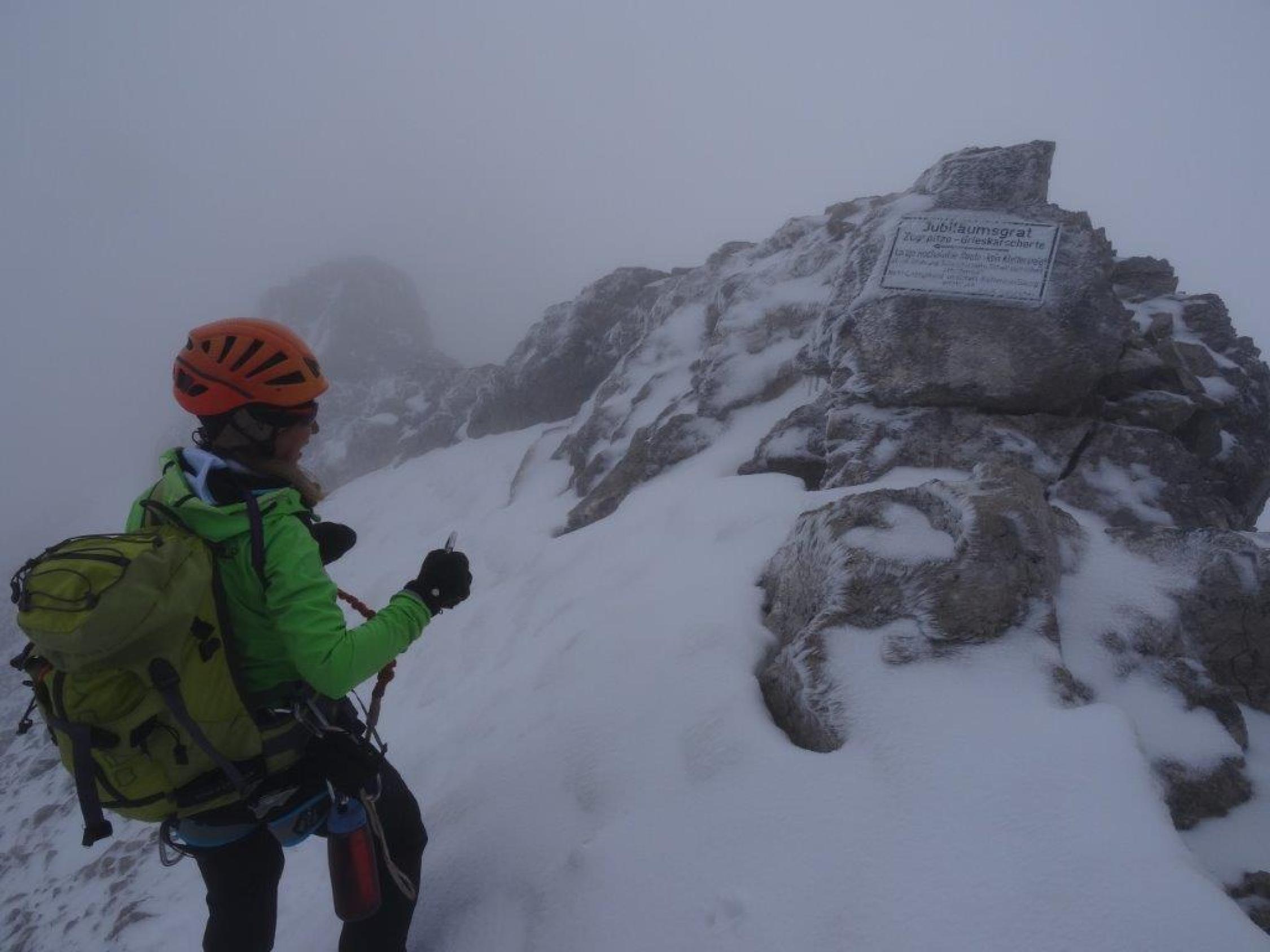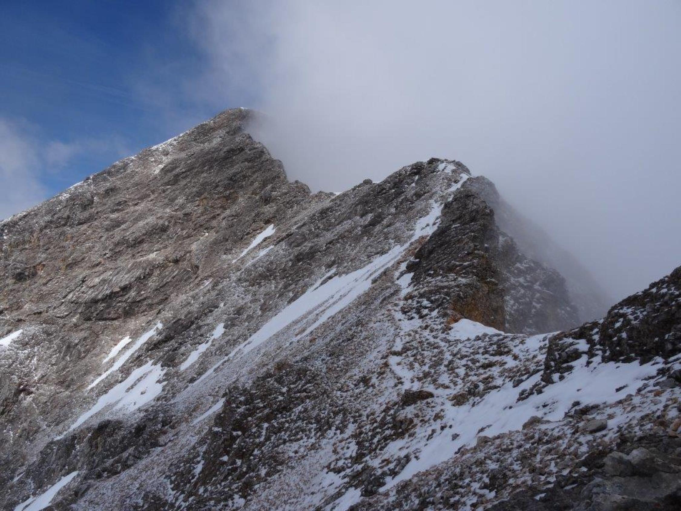 Beim Grathüttl trafen wir auf ein Pärchen, das via Mathaisenkar zum Biwak aufgestiegen ist, die Nacht hier verbringen und am Sonntag den Grat zu Ende klettern wird. Ihre Zeitangaben, 5h bis Griesskarscharte und 3h bis Biwak. Da kam doch mal kurz der Gedanke auf, das Biwak zu nutzen :-)