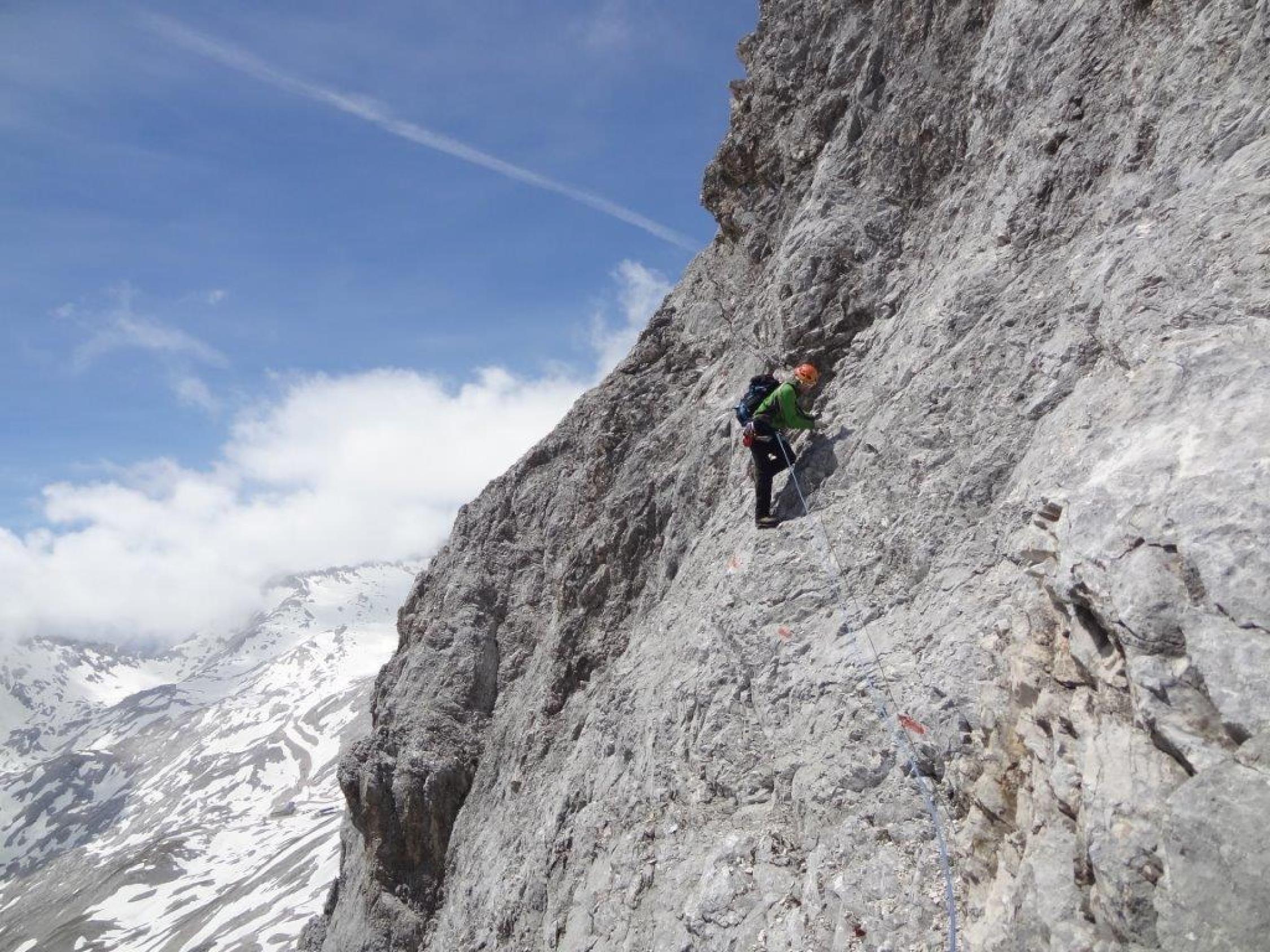 Diese Zeitangaben usw... kommen aus dem Führer, sind aber extrem knapp bemessen und wirklich nur für den geübten T6-Alpinisten ein Massstab, ansonsten vergesst die Zeitangaben, rechnet mit 12h und geniesst die Tour. (Start 5.00Uhr Münchnerhaus, Zugspitze).