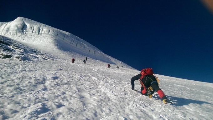 Perfekt, die ersten 300 Meter guter Trittfirm, oben raus Eis, gut zu sichern.