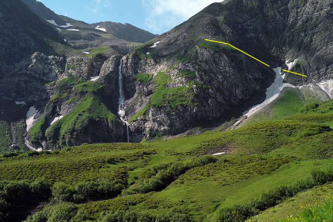 Auch am Heubützlipass (2468 m) liegen nordseitig noch grosse, durchgehende Schneefelder.