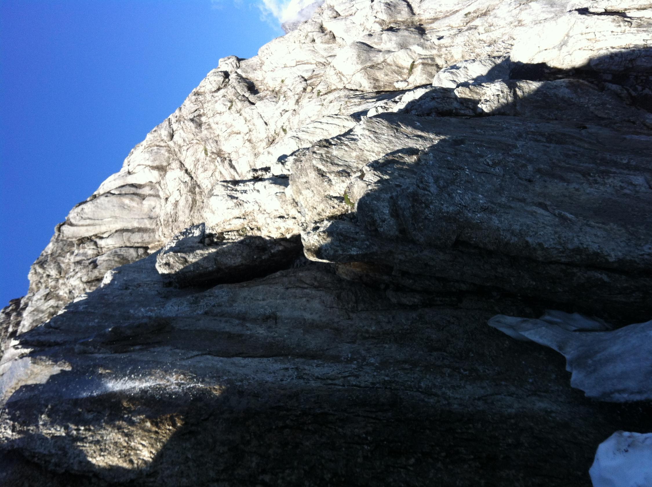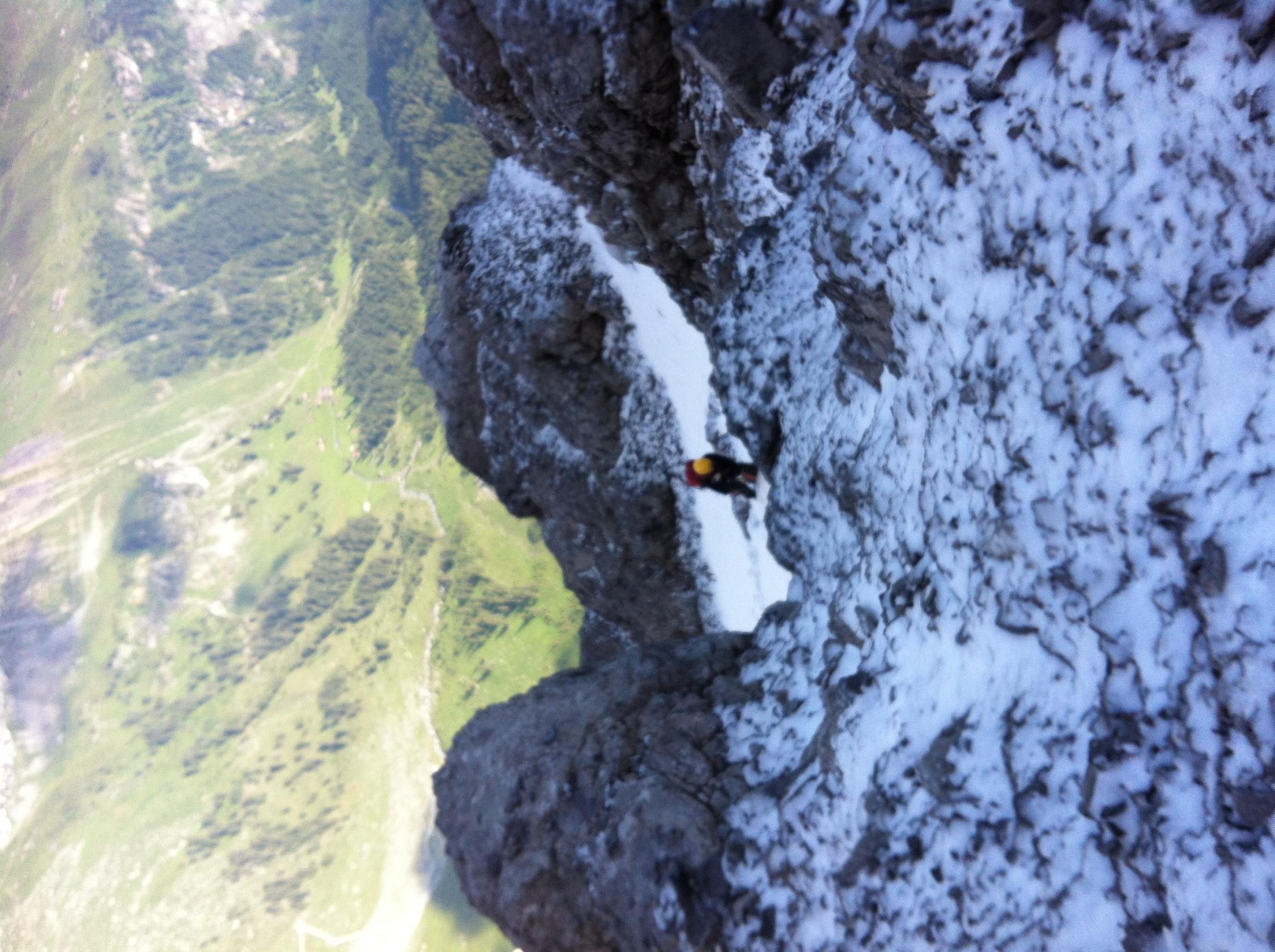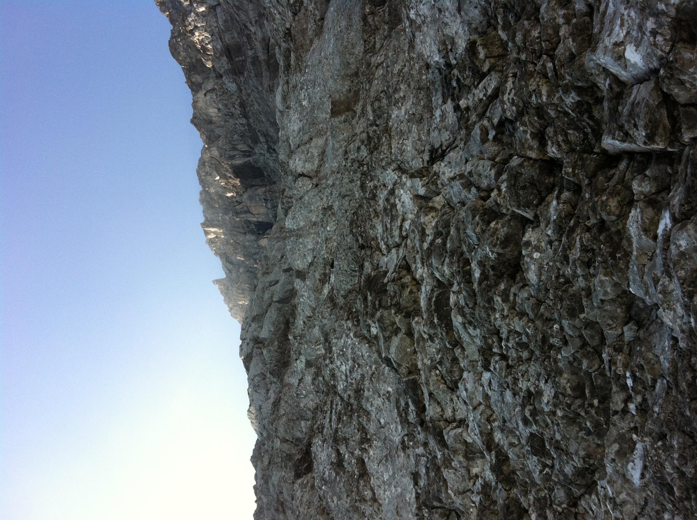 Ein Grossteil der Wand ist eher T6 Gelände als wirklich Kletterei.