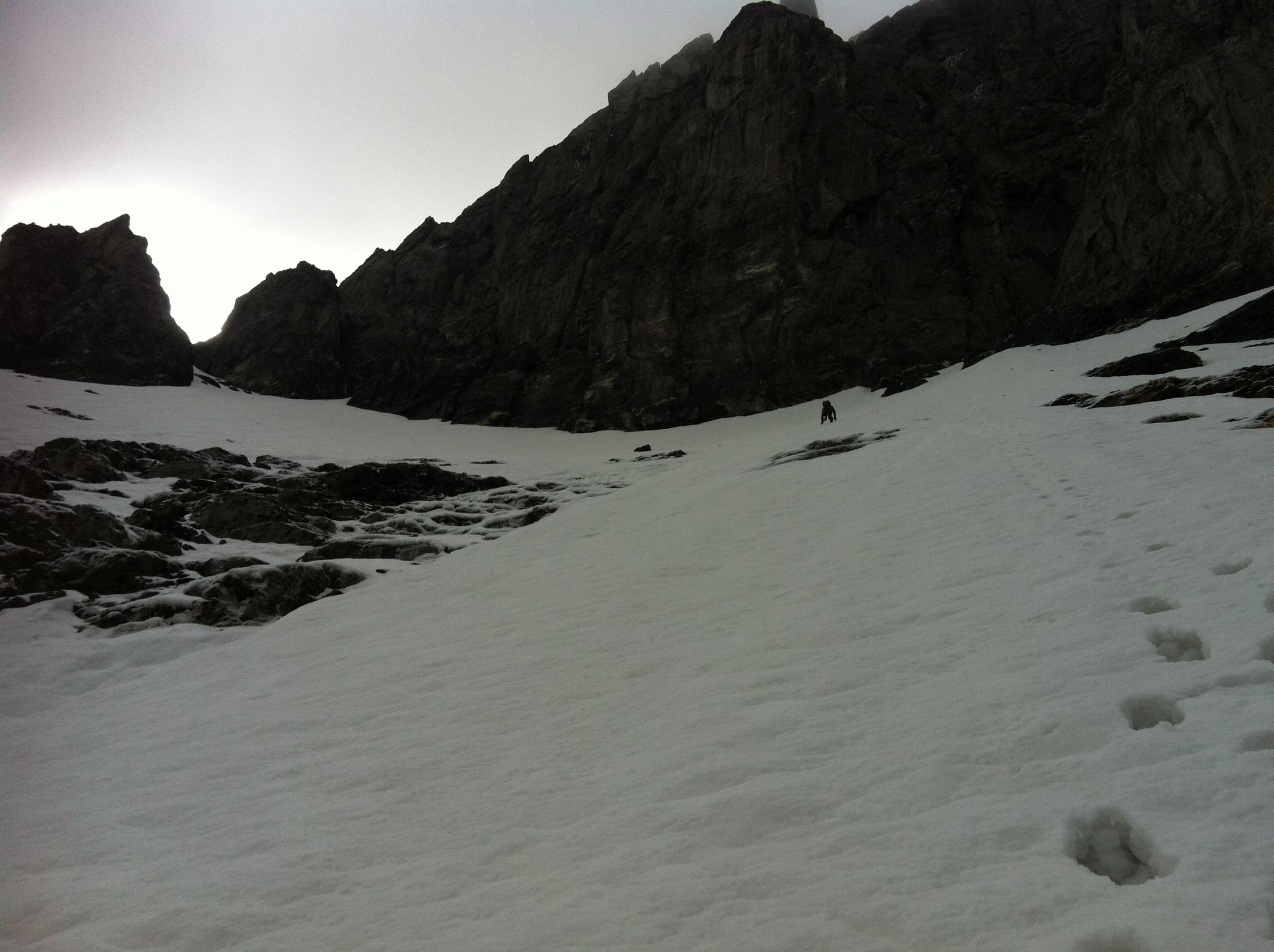 1800-2500 grossteils trockener Fels, Trittschnee in Schneefeldern
