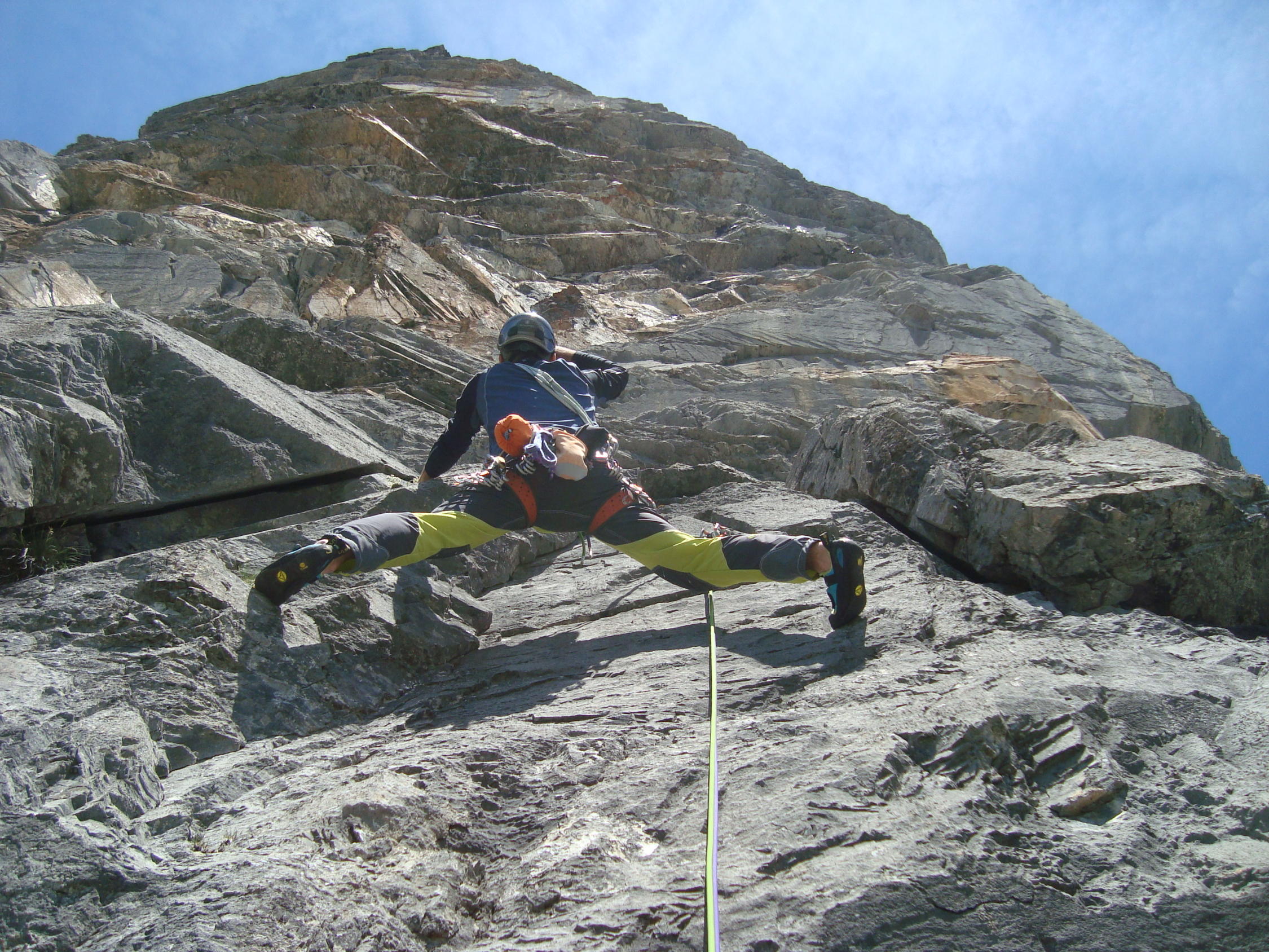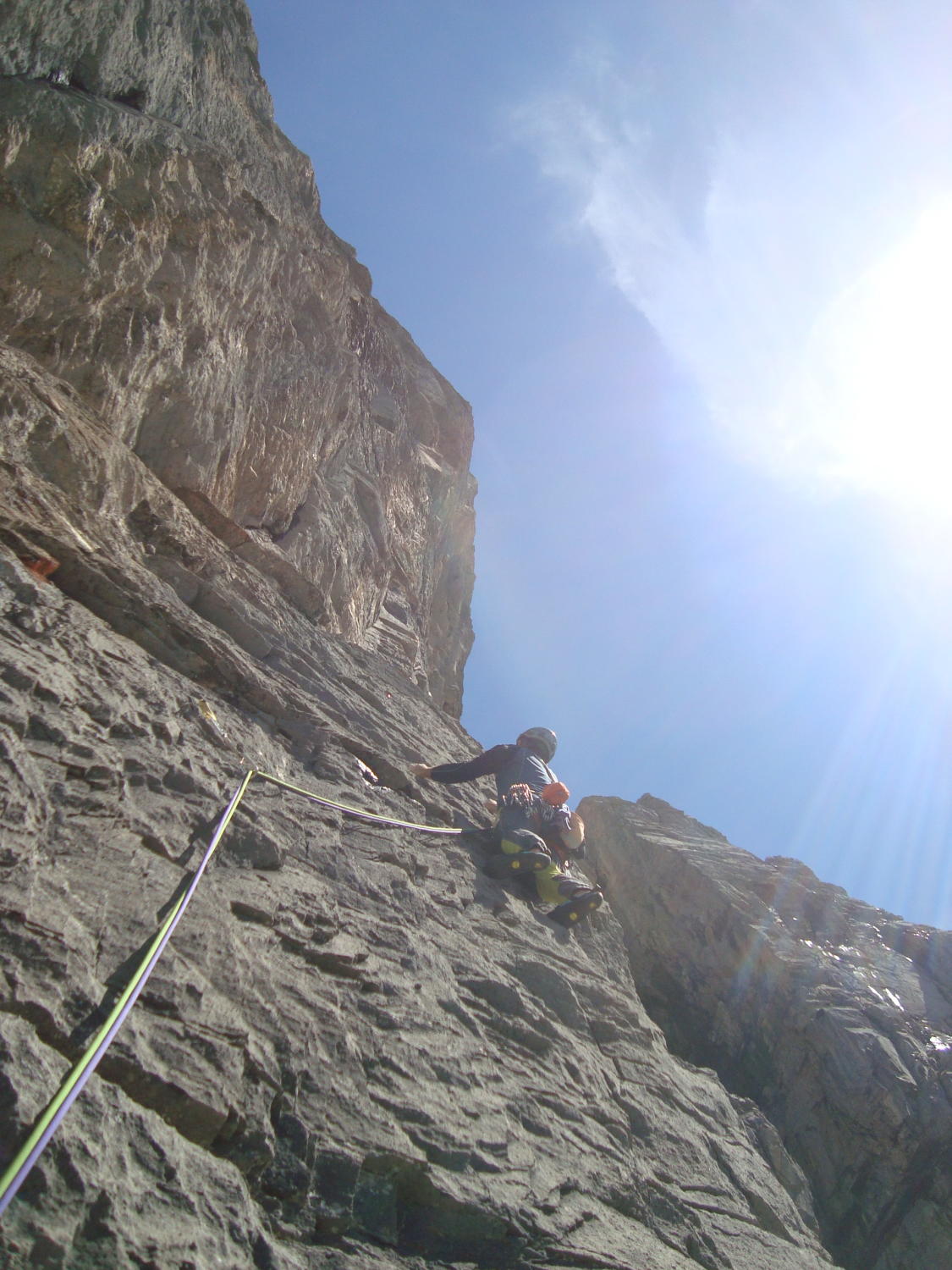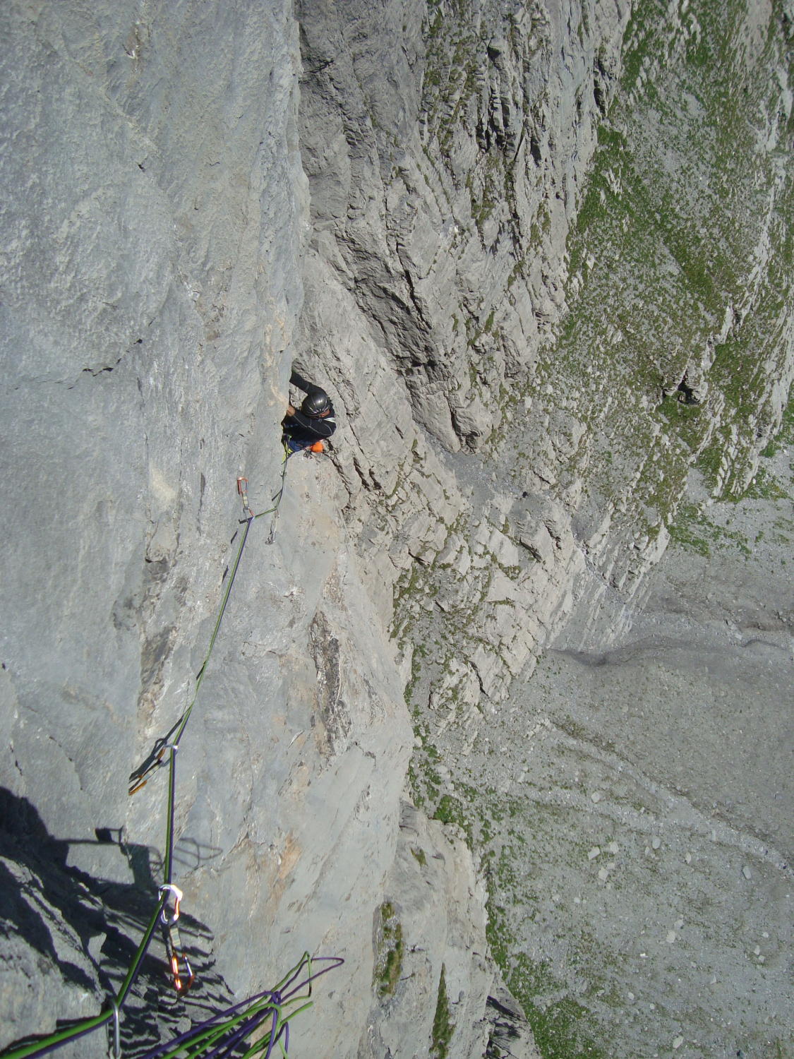 Am Morgen ganzer Chli Glatten Pflotschnass ausser dem S-Pfeiler oder dem Gelben Pfeiler. Daher vom Plan den "Uristier" bei den Hörnern zu packen nach rechts zum "Poker"n.