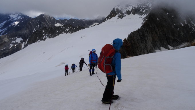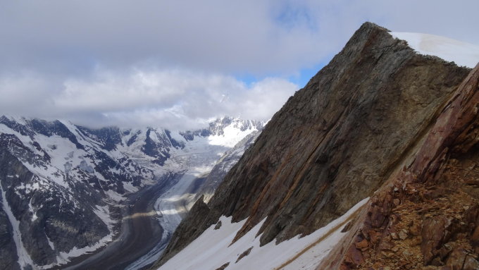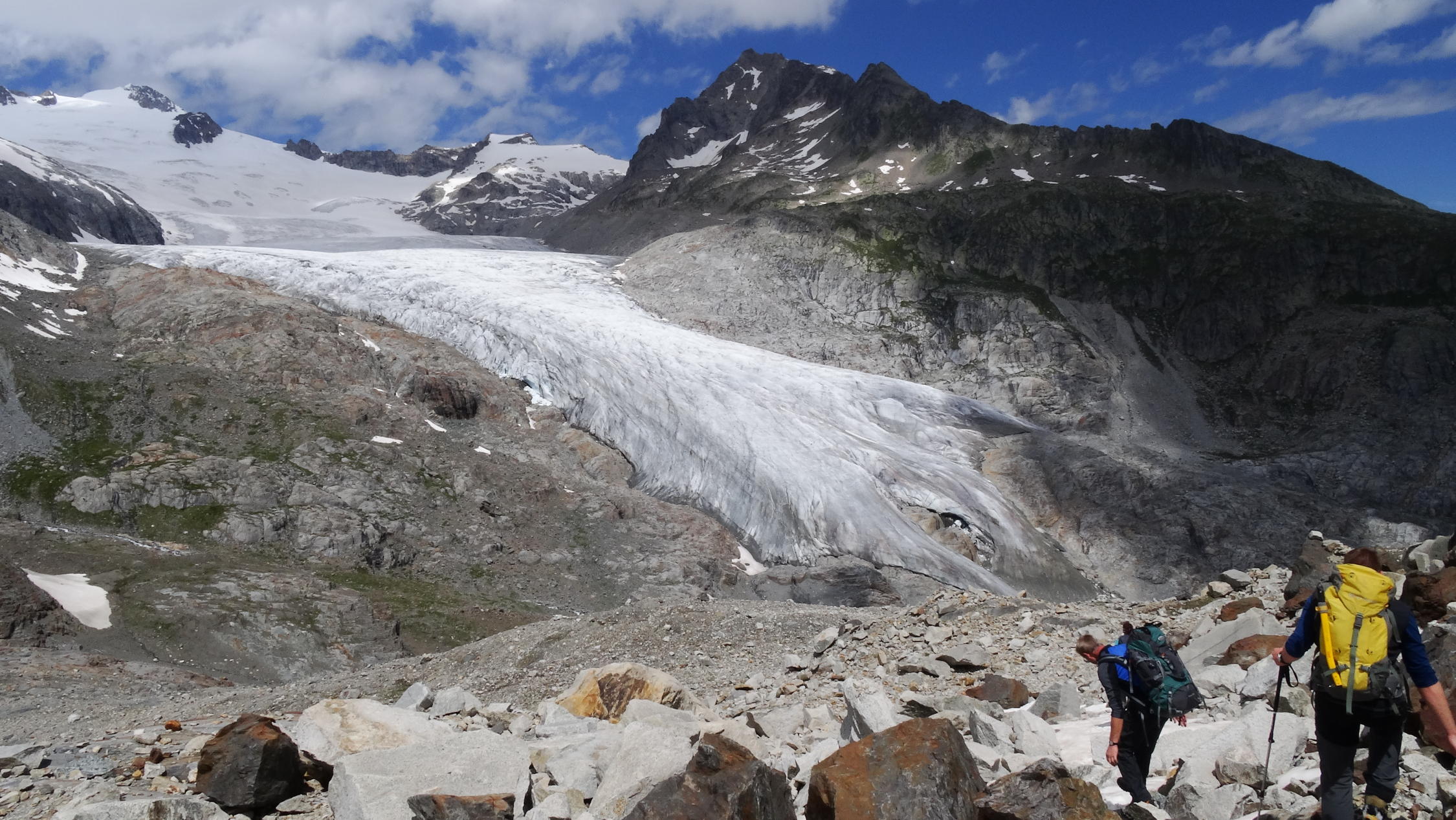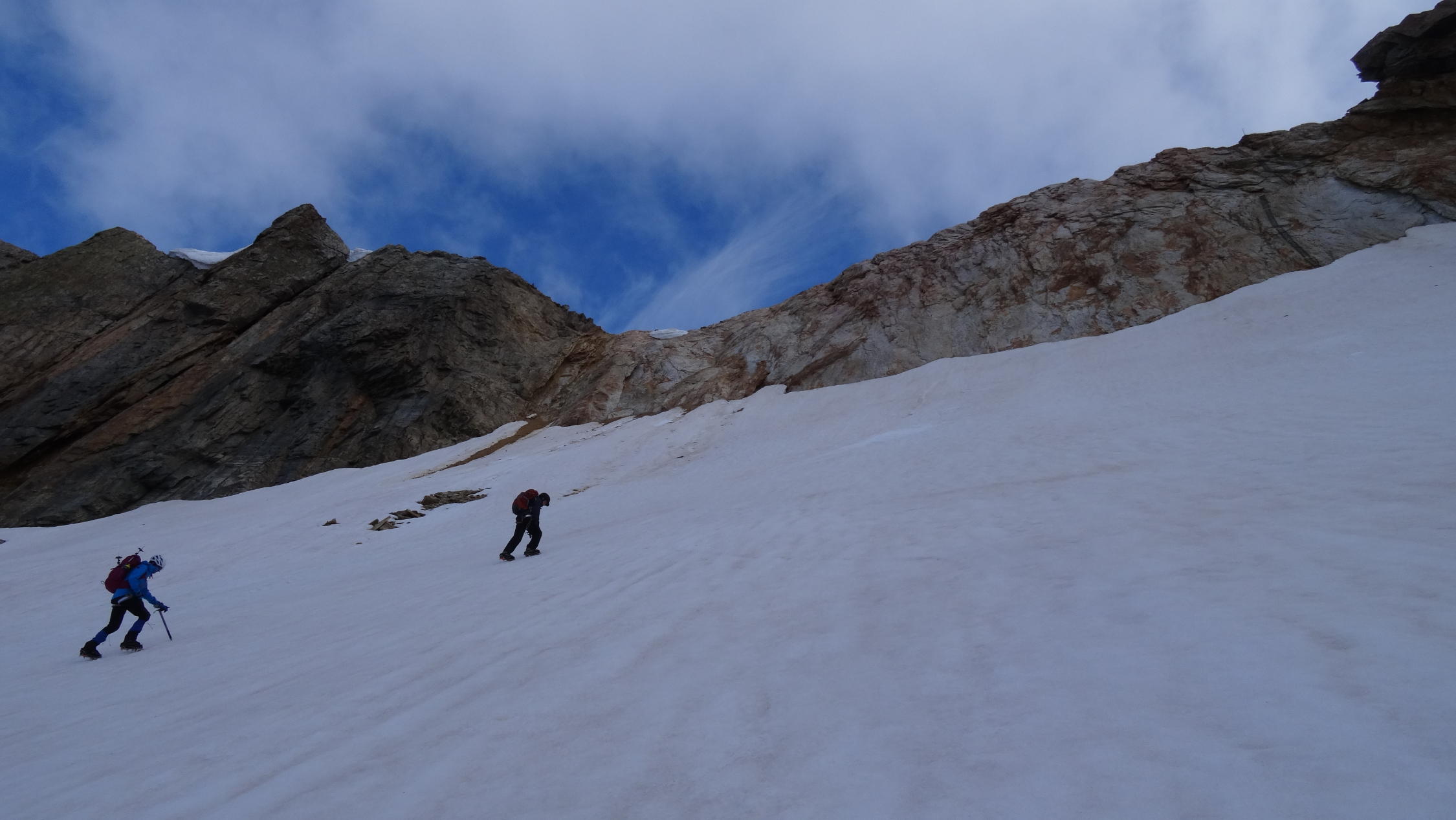 Wird eher ungünstiger, da viele im Abstieg hilfreiche Schneefelder verschwinden und der Grienbärgli Gletscher sicherlich mehr ausapert.