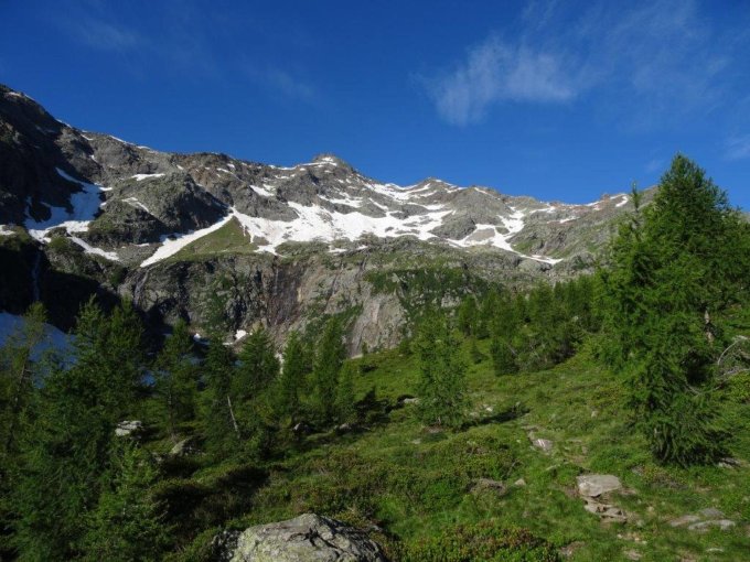 Klettersteigset kann nützlich sein, Helm empfohlen. Steigeisen nach klaren, kalten Nächten nützlich, da dieses Jahr für diese Jahreszeit deutlich mehr Schnee liegt.