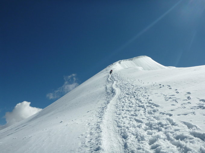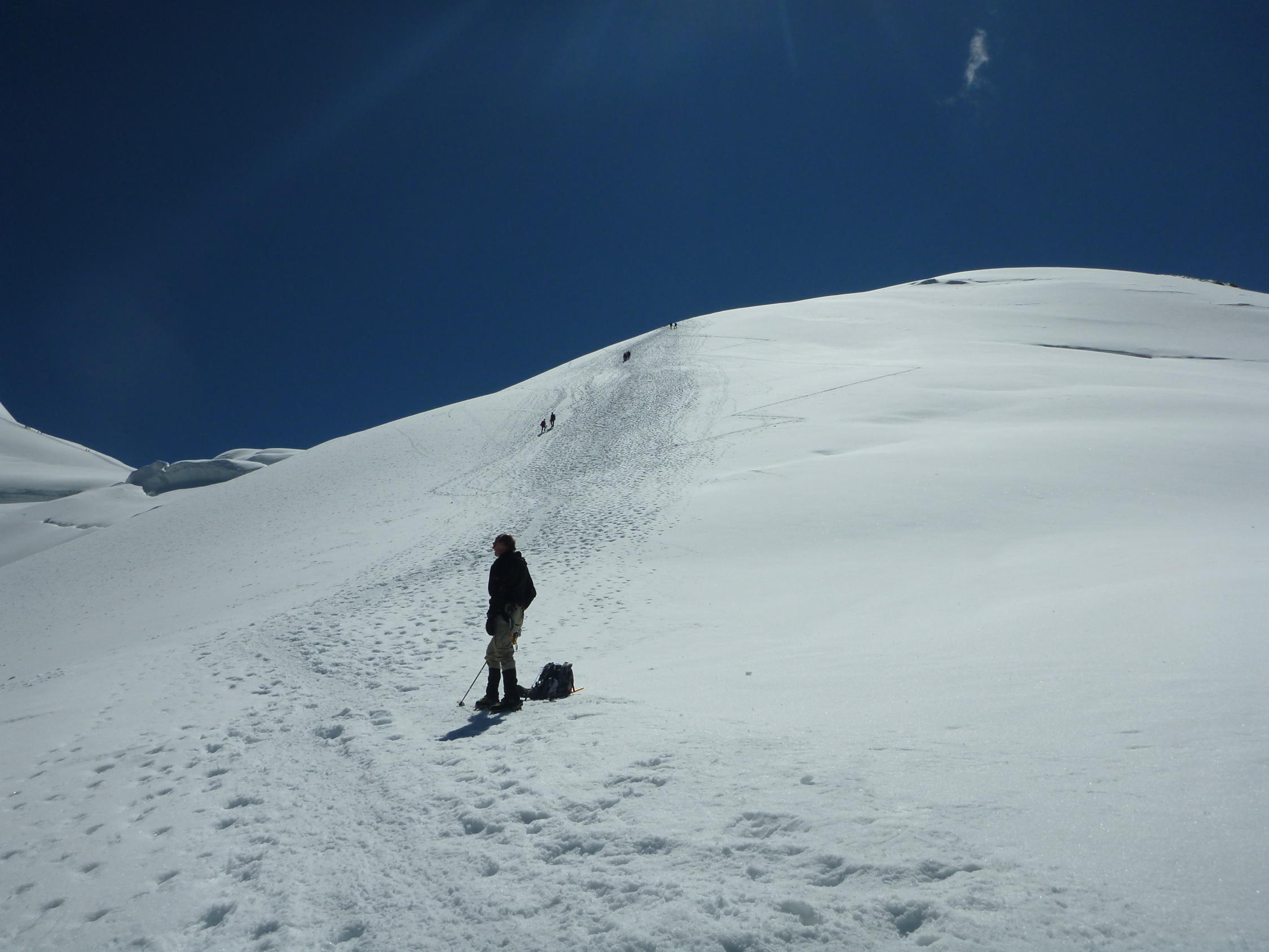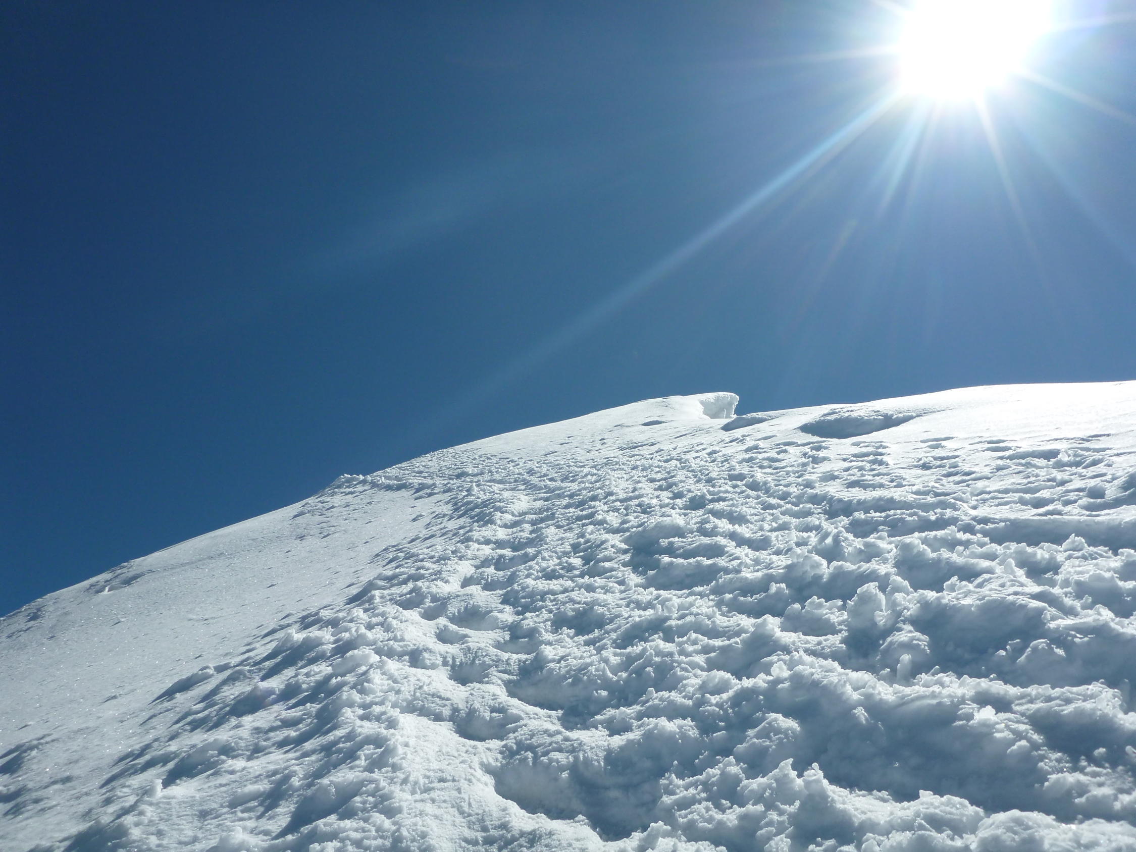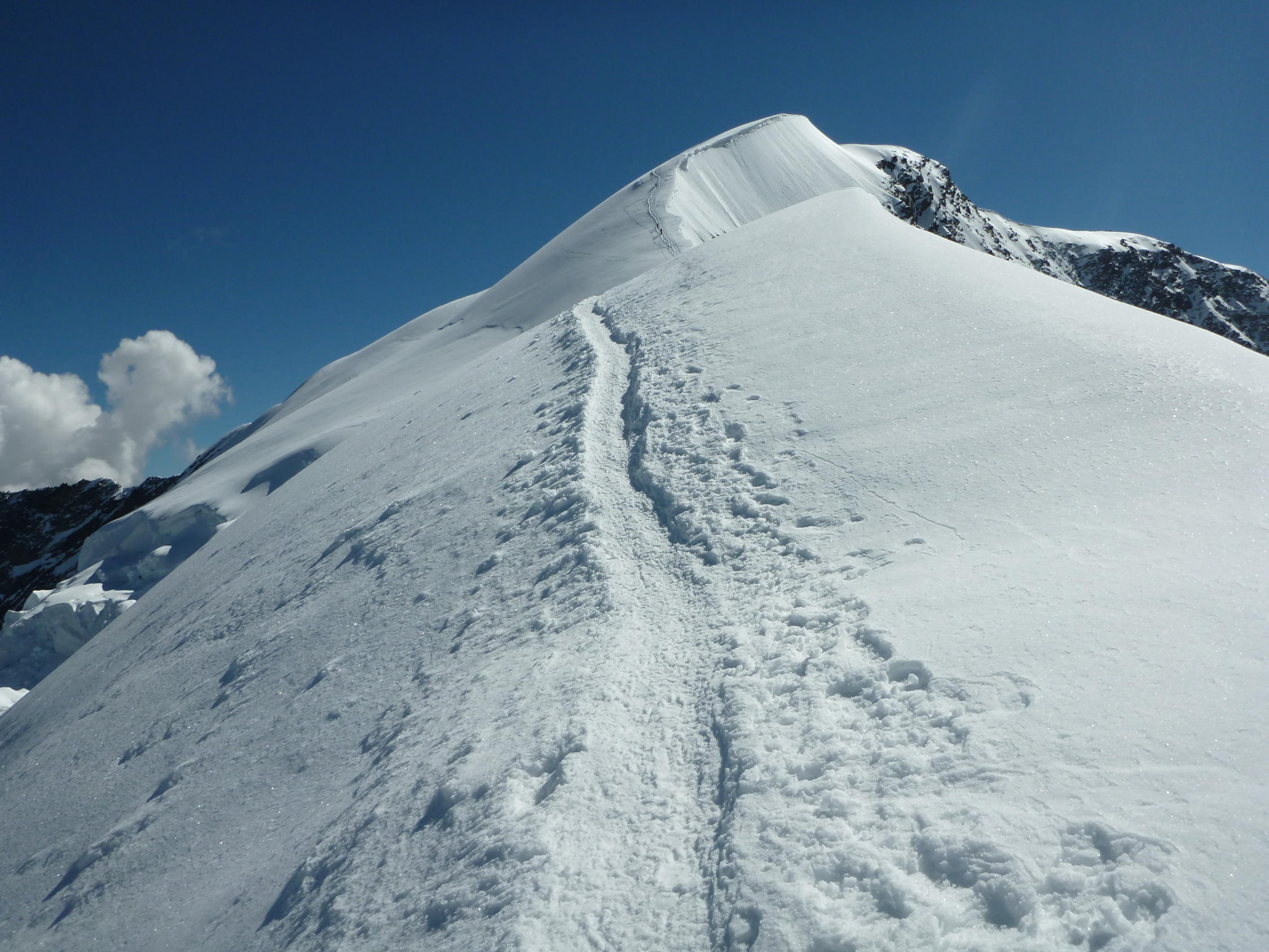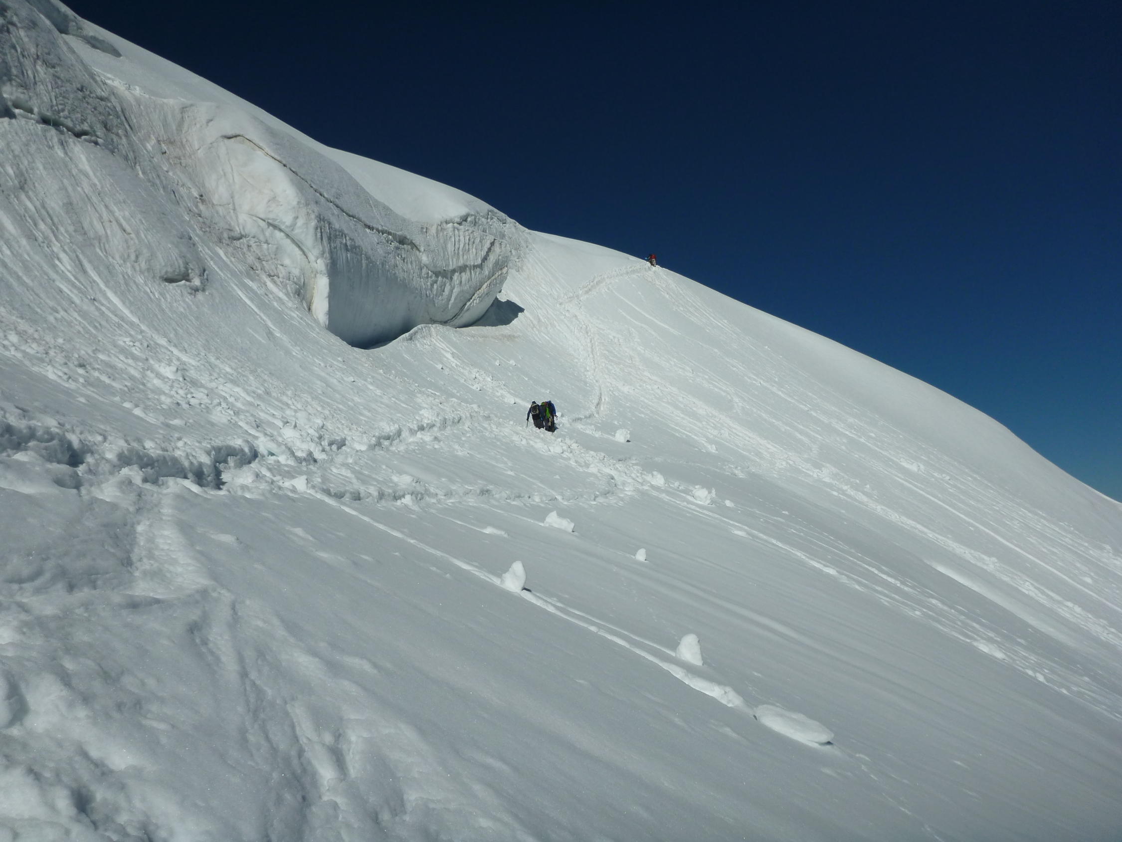 Die wenigen Spalten bieten (mit den üblichen alpinen Massnahmen) keine Probleme.
