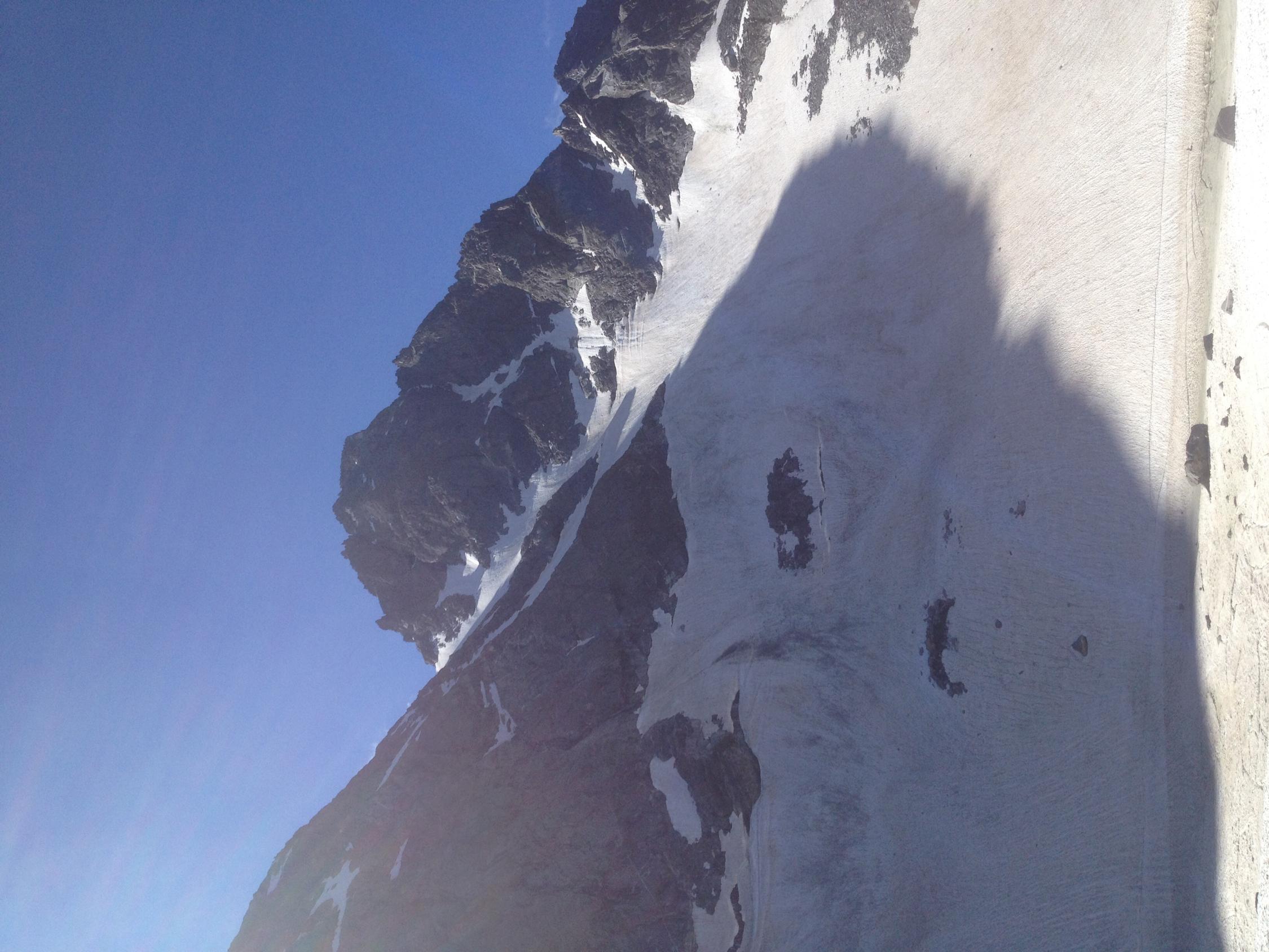 Von der Sasc Fürä Hütte zum Punkt 2590 im Sattel, im obersten Teil (normalerweise nasse Platten) unbedingt Steigeisen und Pickel. Nordkante sehr gut, nur die letzten 3 Seillängen noch etwas mit Schnee dem ausgewichen werden kann. Im Abstieg im Couloir noch viel Schnee und sehr weich, deswegen sind wir von der Gipfelnadel direkt abgeseilt zur ersten Abseilstelle(Repschnur und Karabiner jetzt vorhanden). Abstieg gut markiert, jedoch auf der Südseite erstaunlich viel Schnee und der Abstieg ist lang!