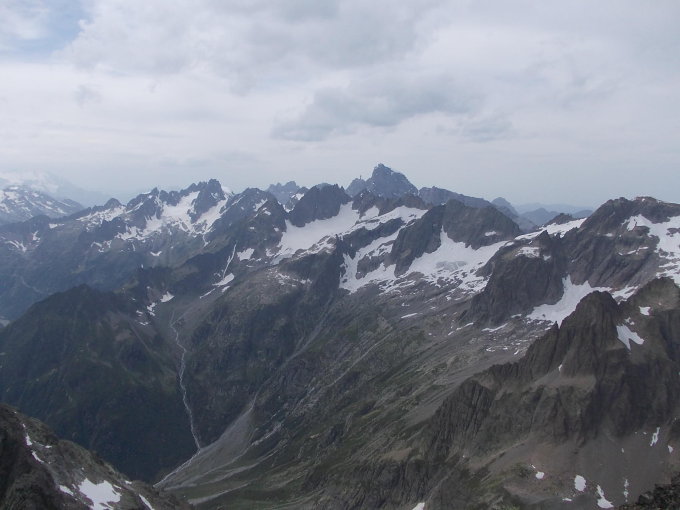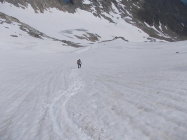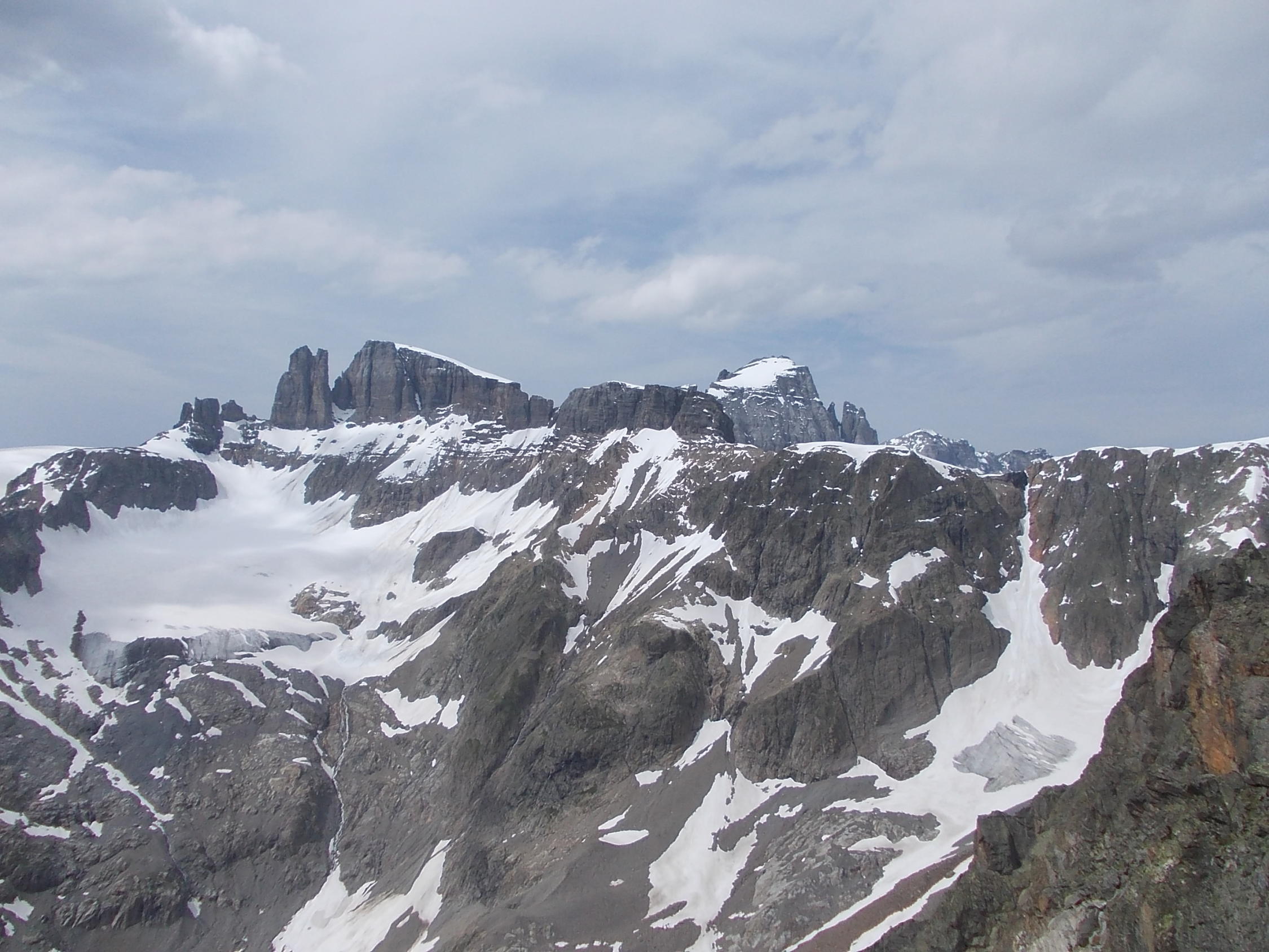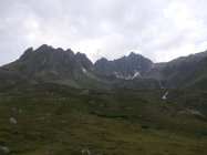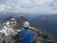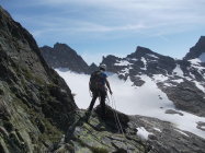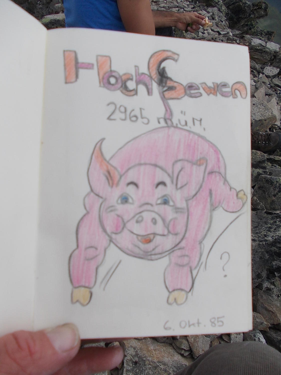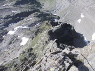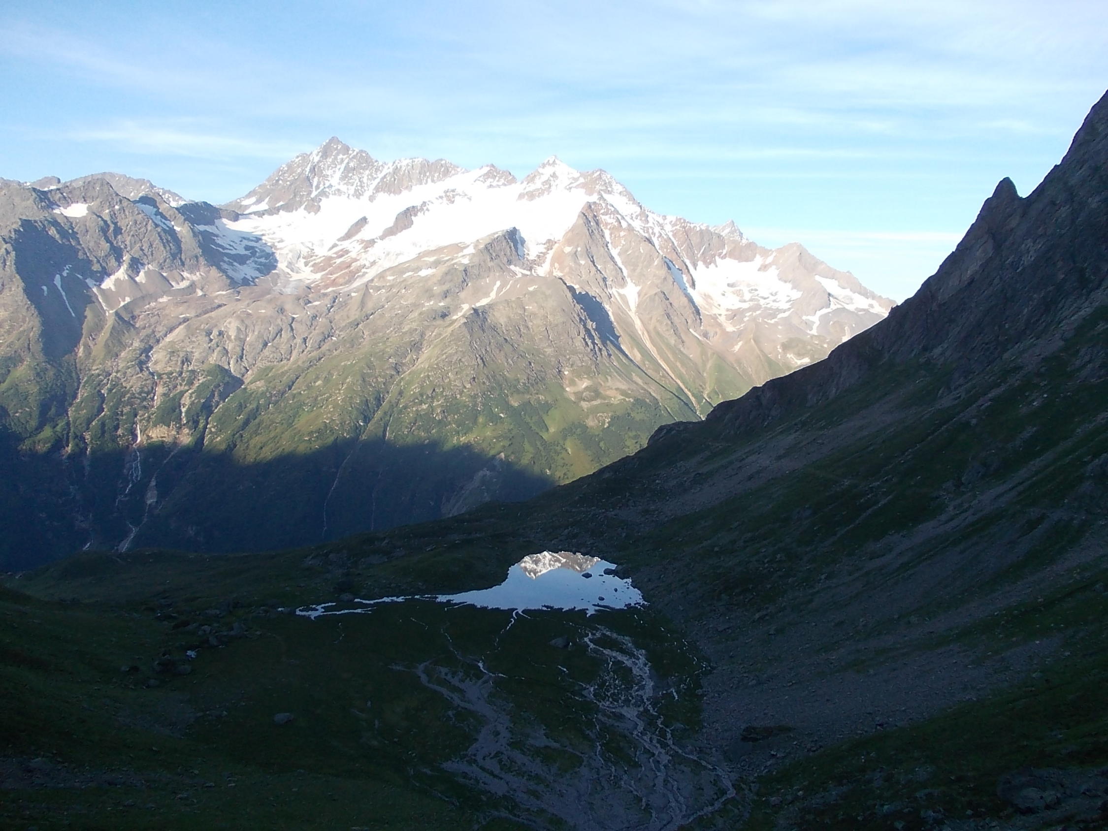 Spätnachmittags überraschend dichter Wolkenaufzug. Den Parkplatz erreichten wir aber gegen 19 Uhr trockenen Fußes. Wir waren heute allein an diesem ohnehin nicht sehr häufig begangenen Berg. Insgesamt ein sehr langes, alpines Unternehmen. Es dürften wohl um die 20 SL sein. Wir gingen die meiste Zeit gleichzeitig am Seil und benötigten für die reine Kletterei bis zum Gipfel dennoch 6 Stunden. Abgesehen vom Gipfelturm klettert man fast immer in bombenfestem Gneis, hat Spaß gemacht!