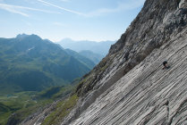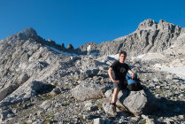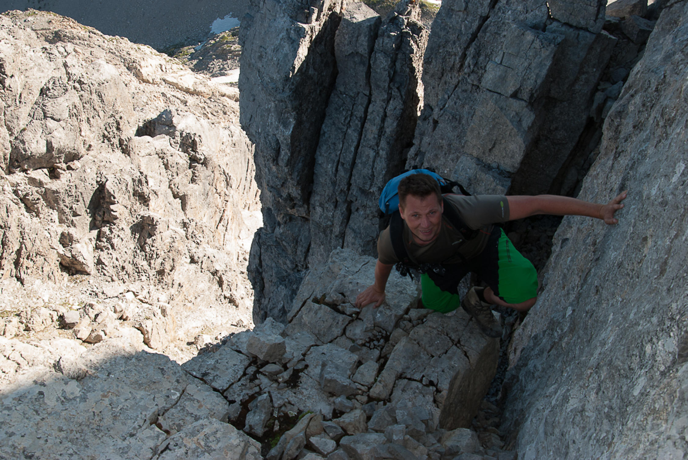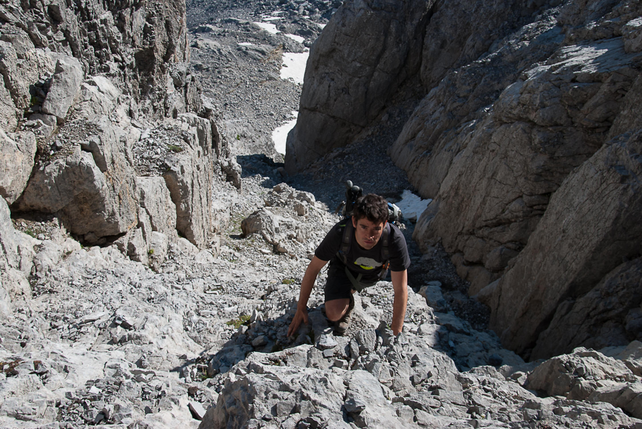 Viel Geröll... noch ein größeres Schneefeld vom Grubenjoch erleichtert noch den mühsamen Abstieg durch das Geröll.