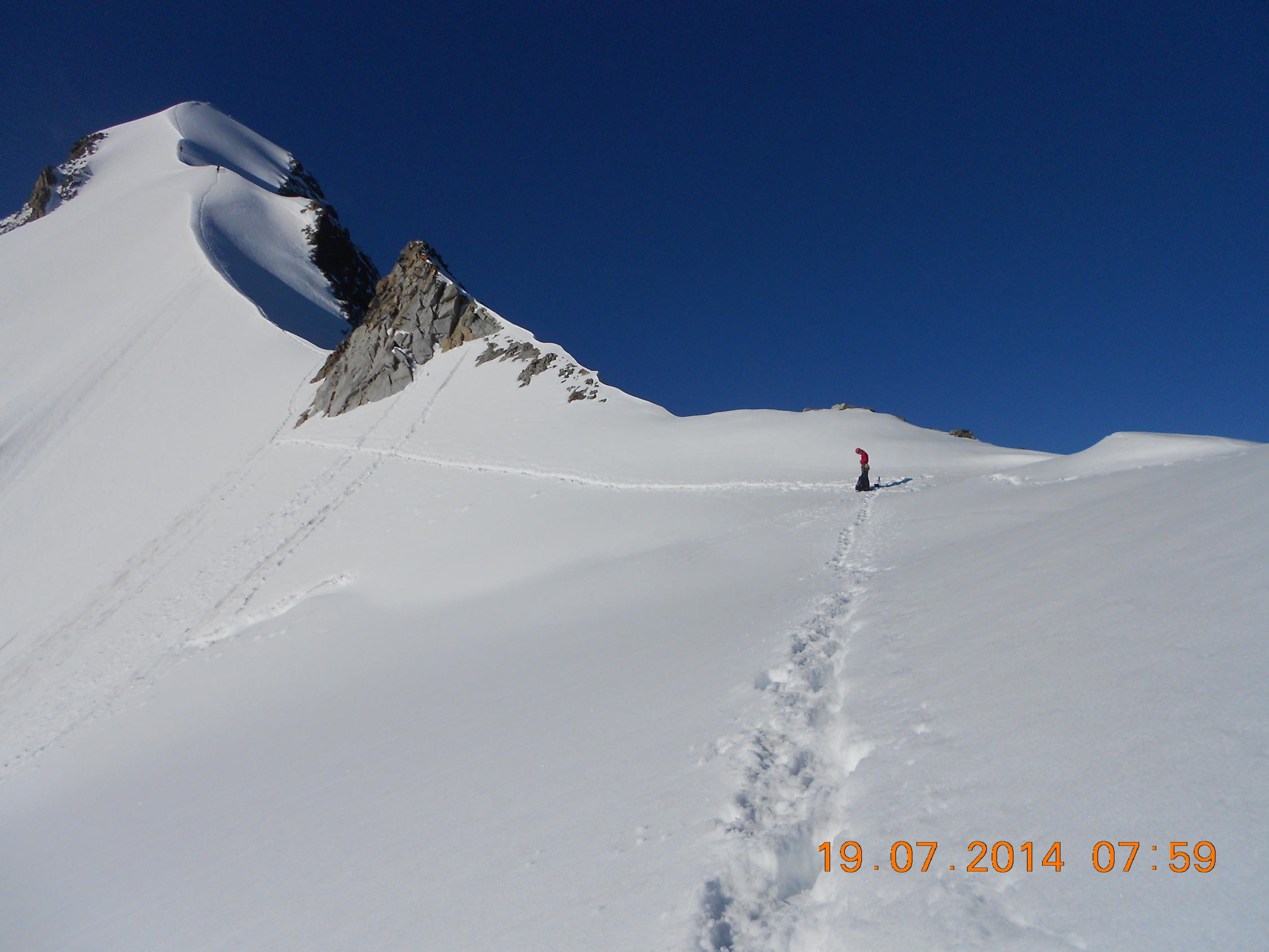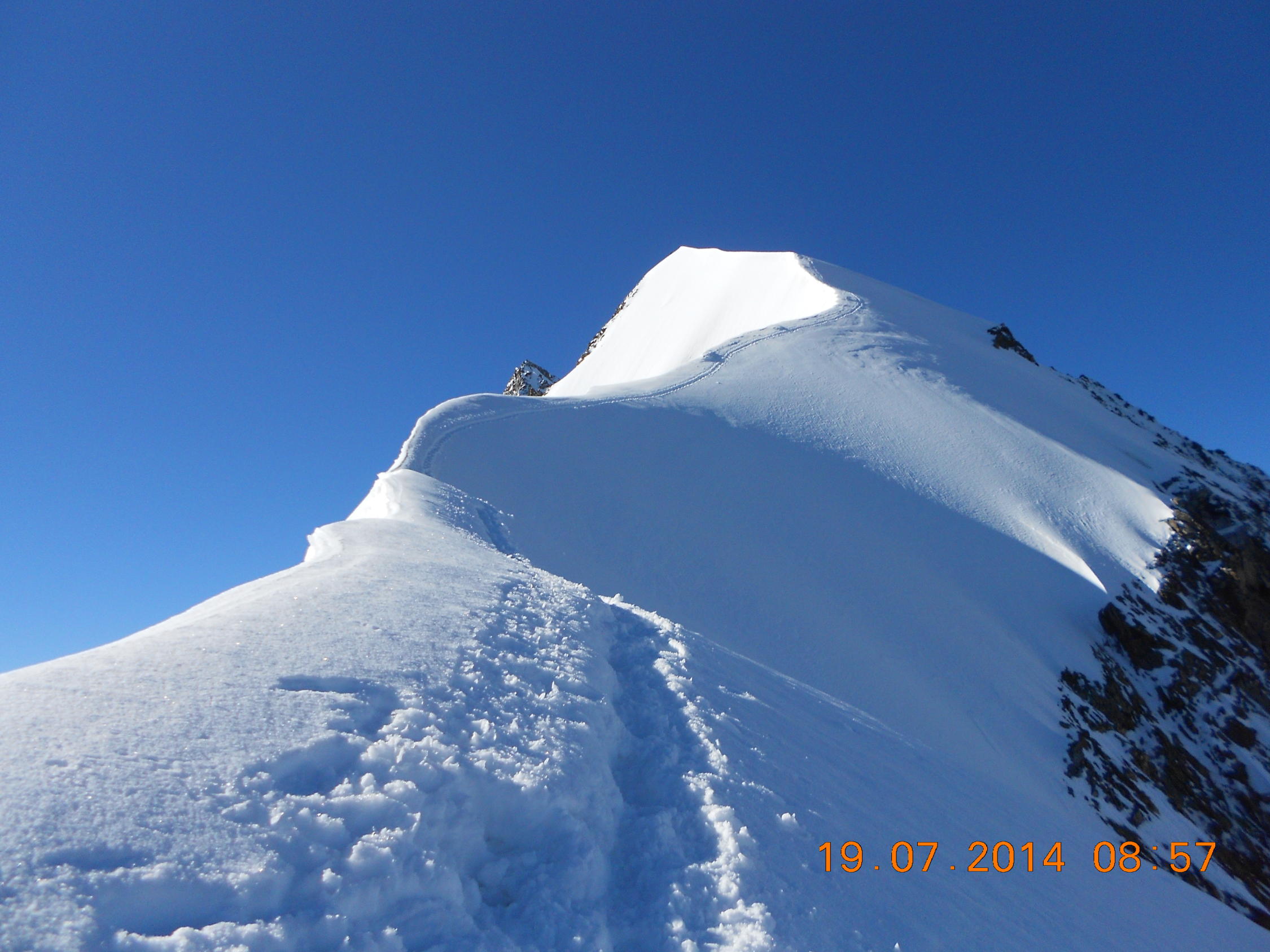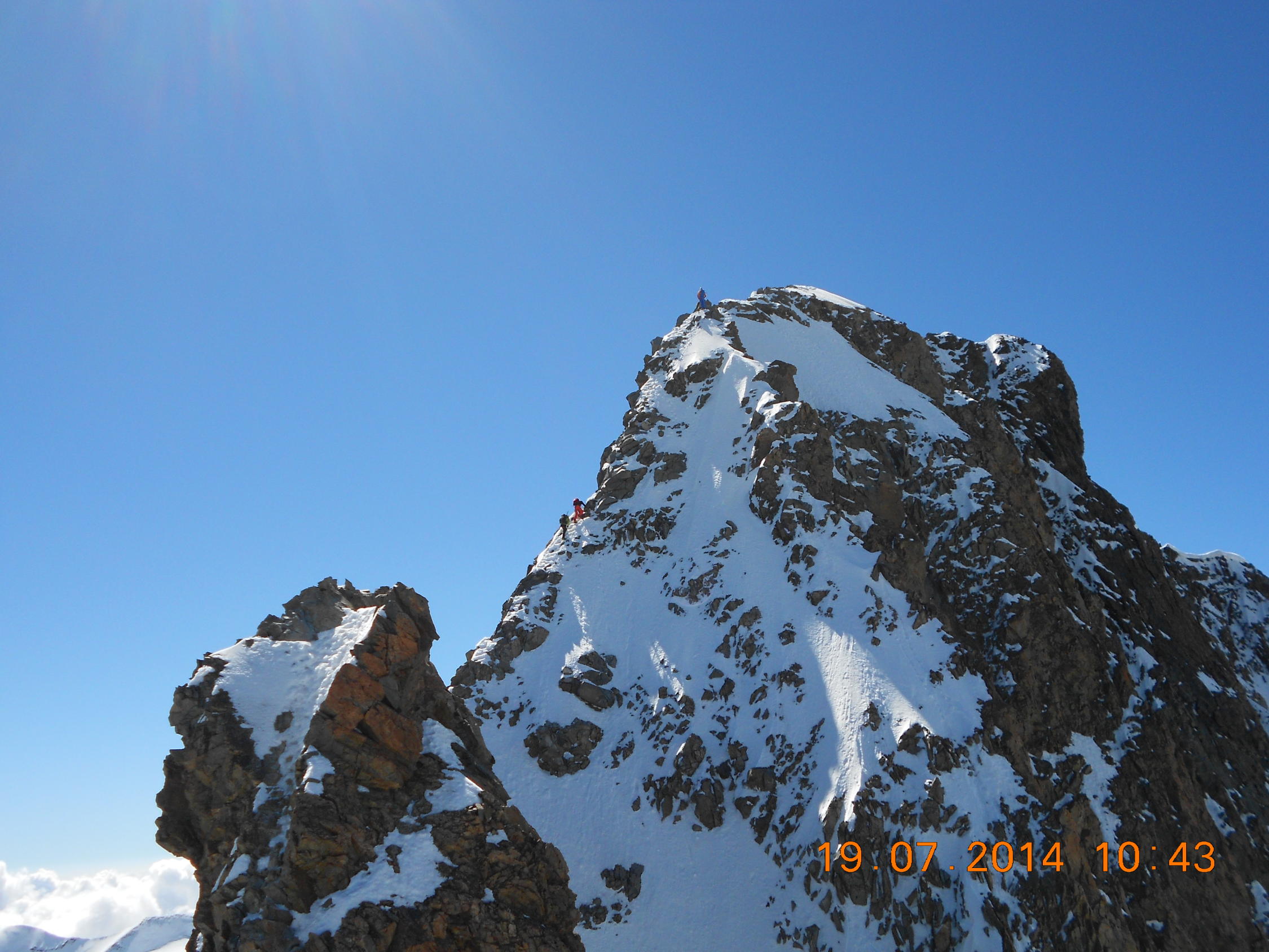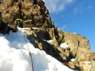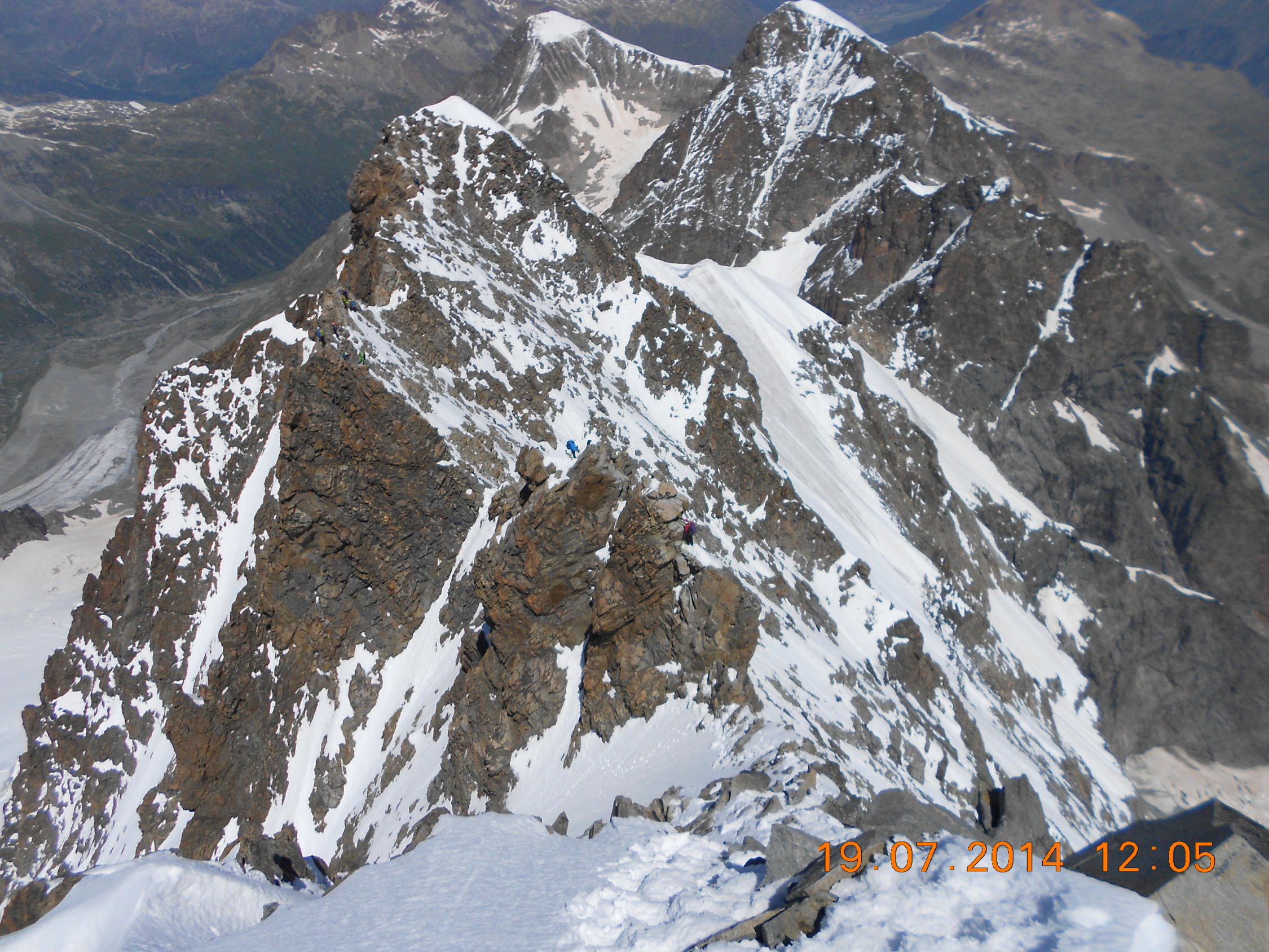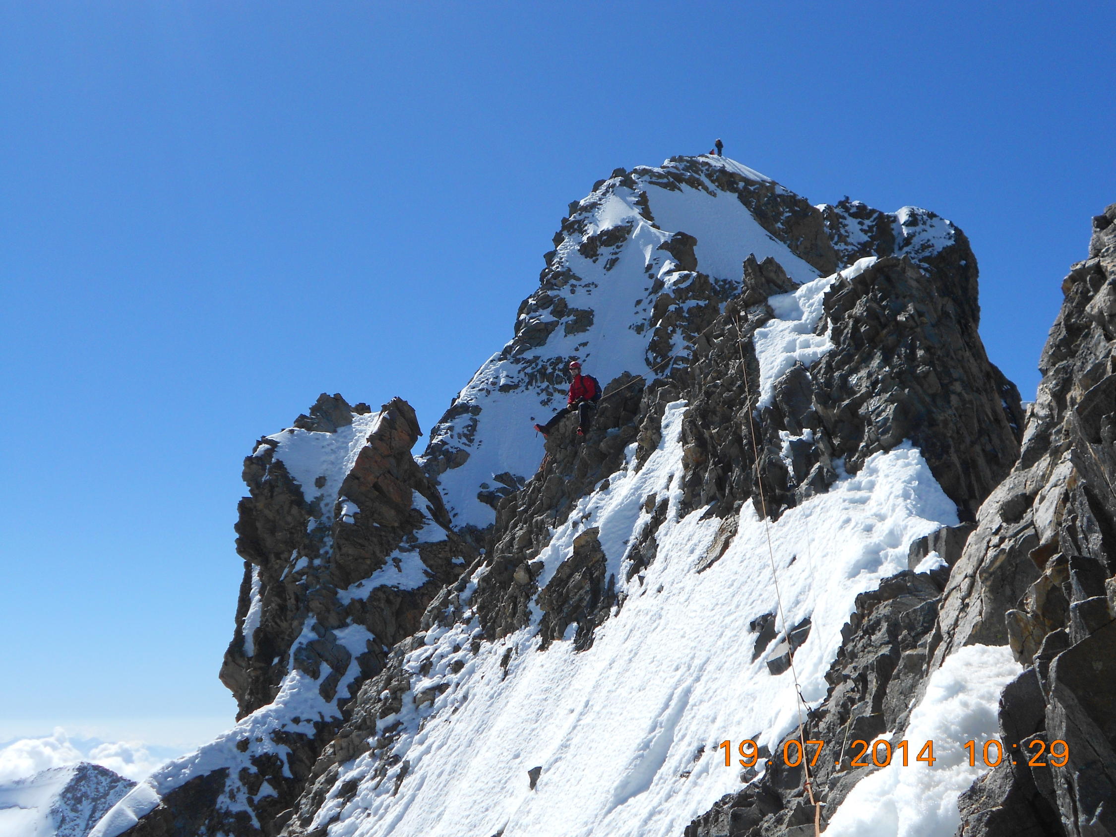 Oberer Felsgrat auch noch viel Schnee.Wir sind alles mit Steigeisen geklettert.