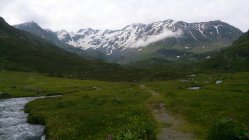 Keine Schneefelder mehr. Abfahrt wurde ein wenig erschwert durch den andauernden Regen ;-(