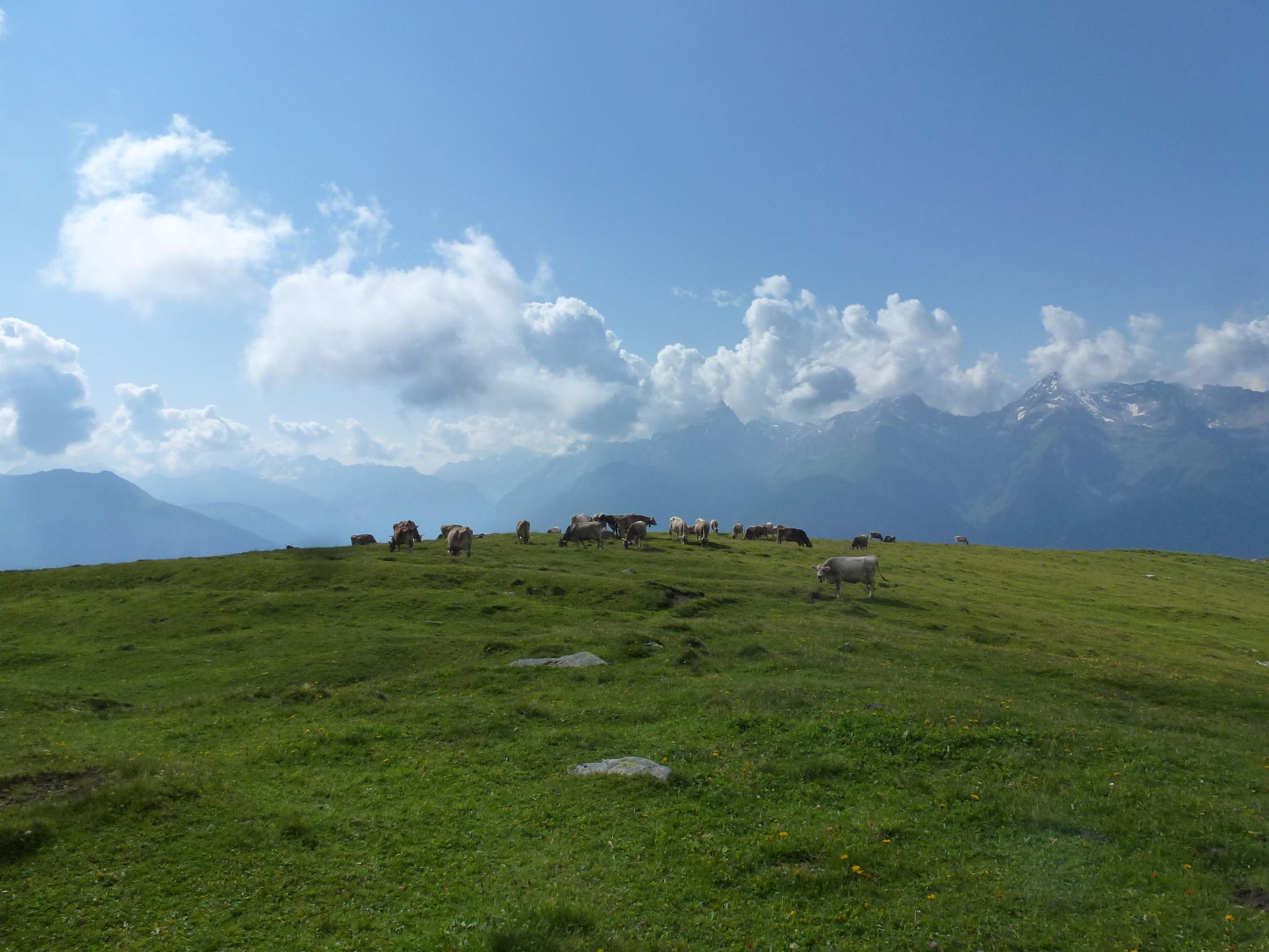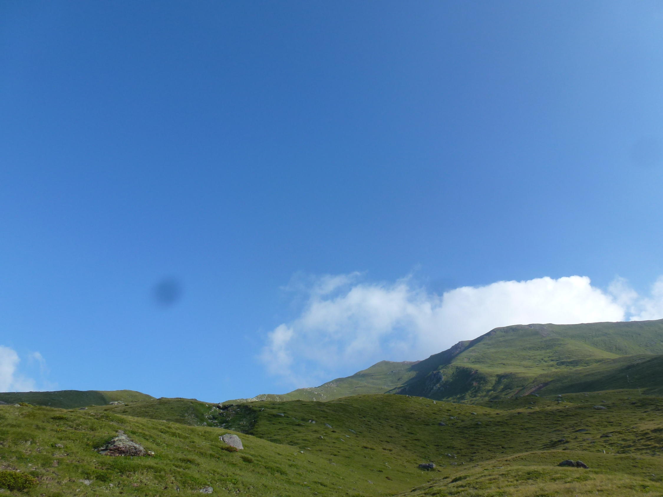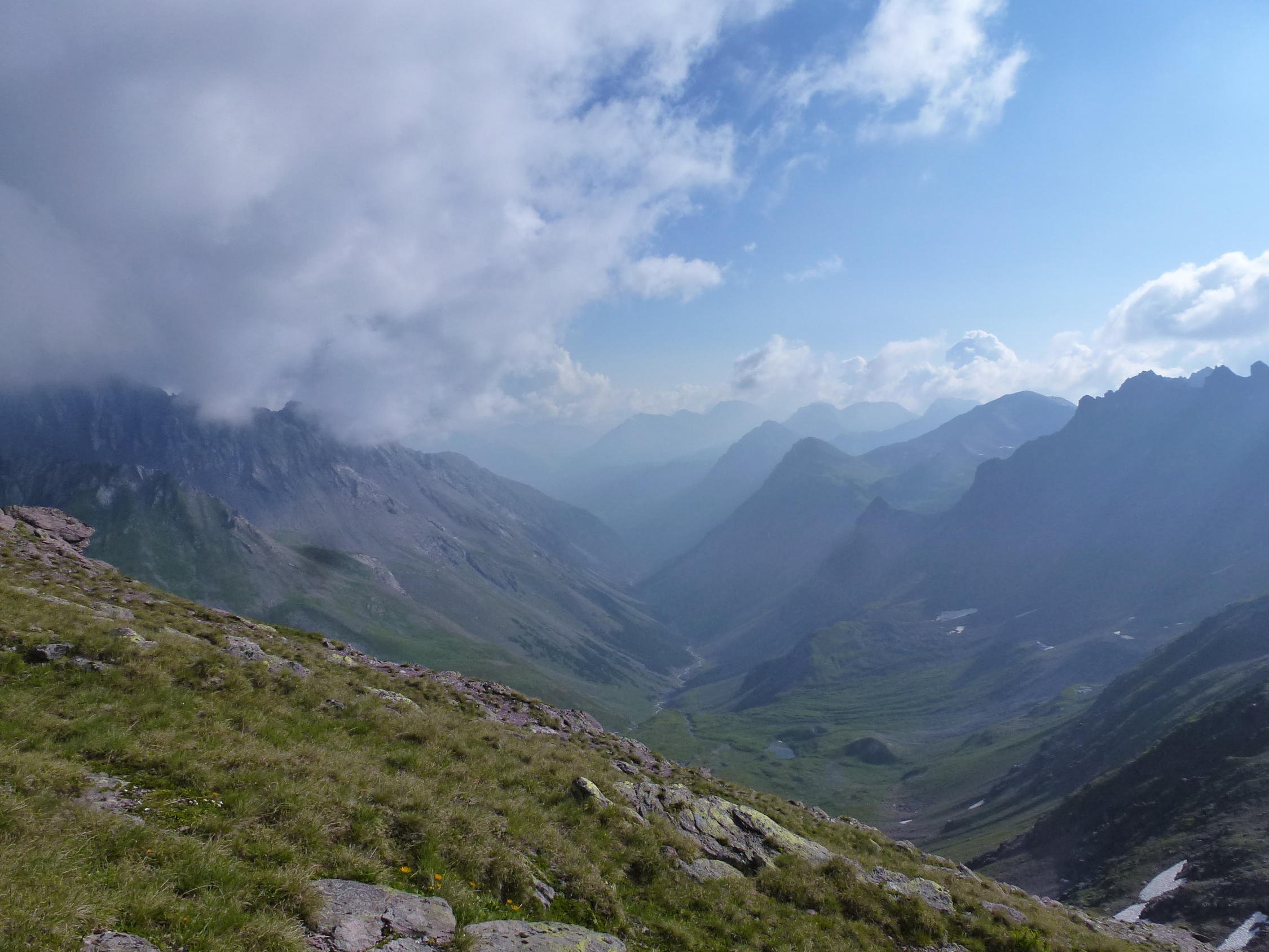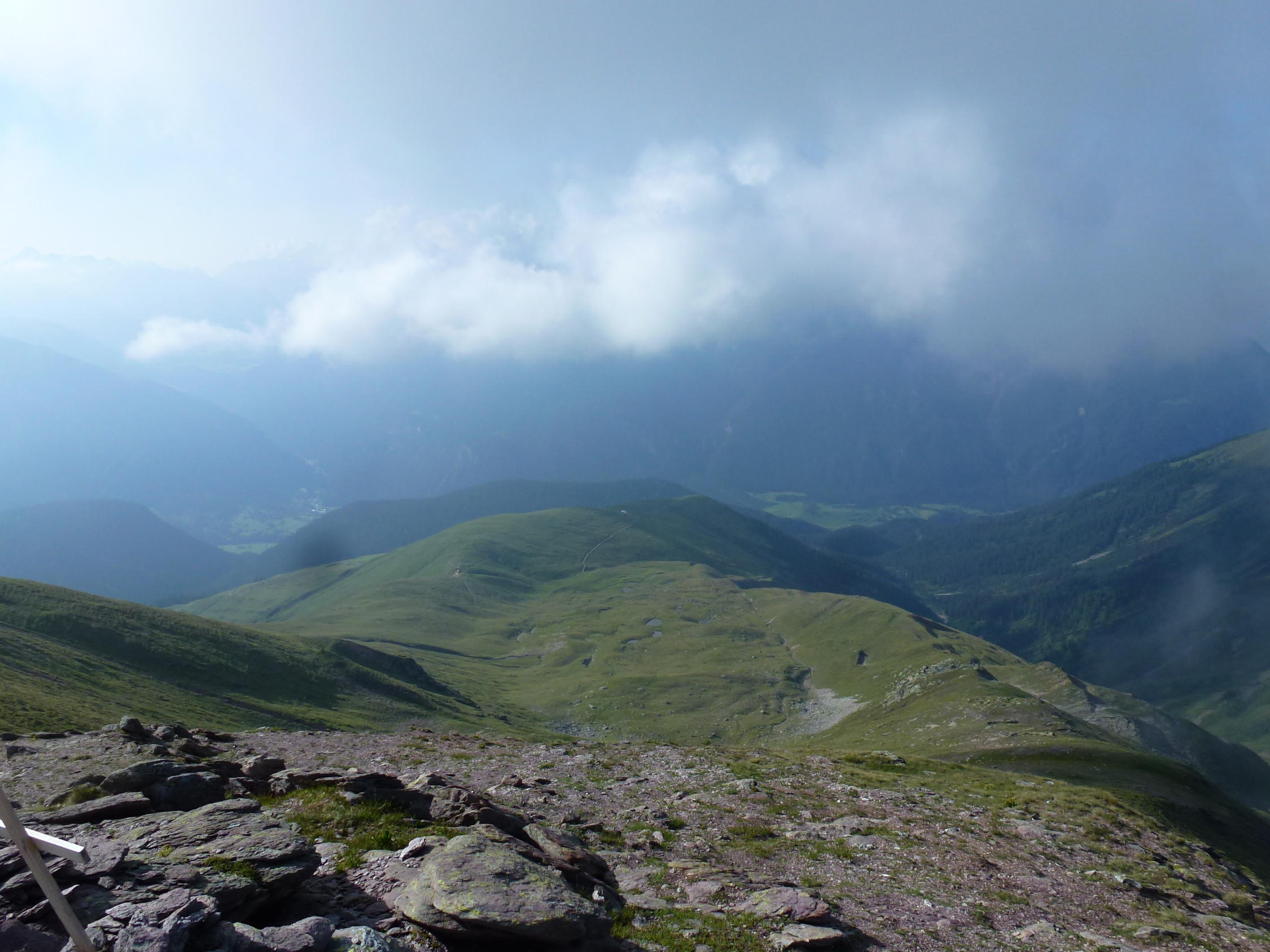 Früh aufstehen lohnt sich nicht immer...um halb 9 noch Wolken/Nebelfäzen die sich auf die Tgapeala Cotschna und die umliegenden Gipfel gelegt haben...