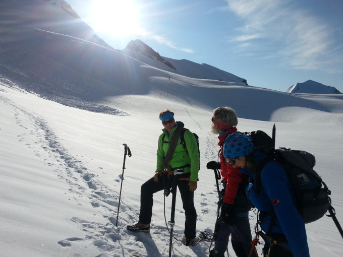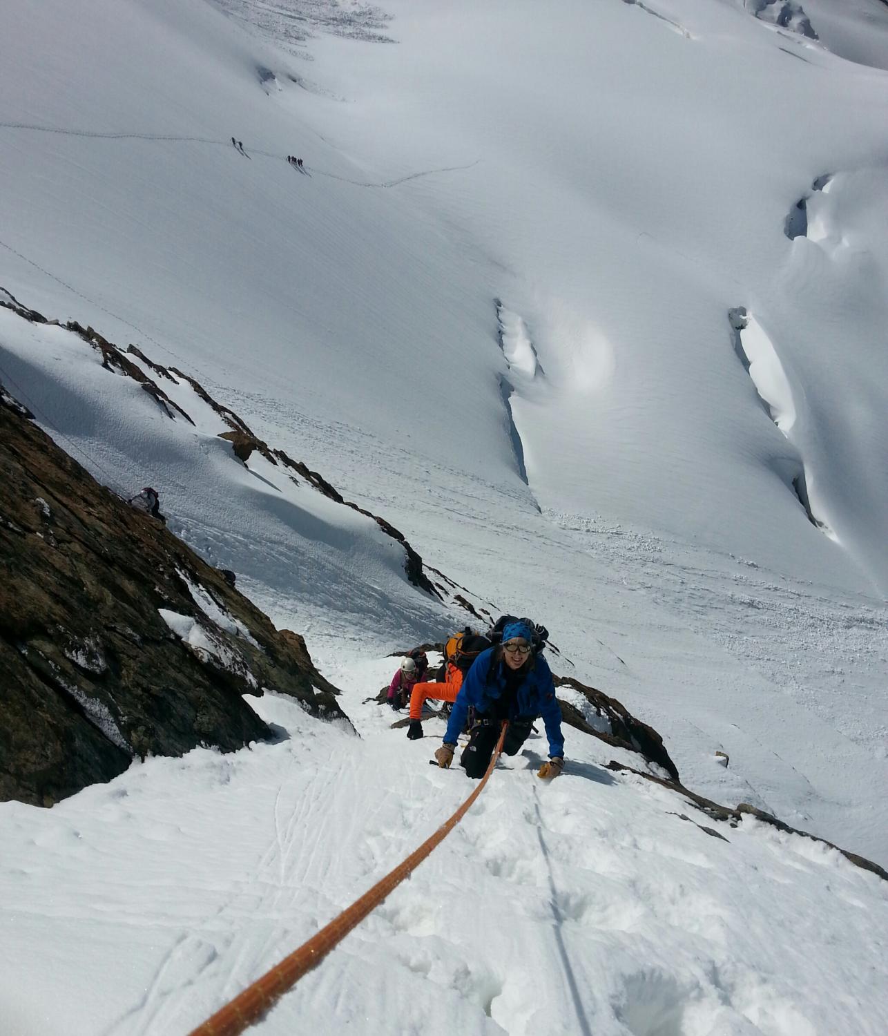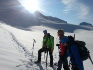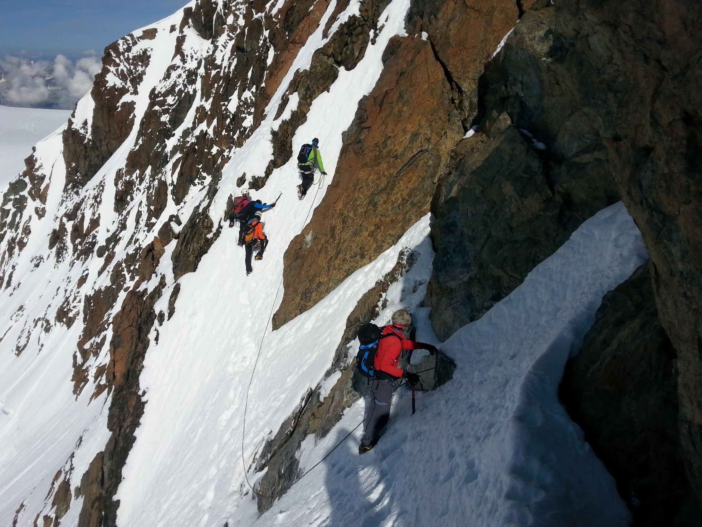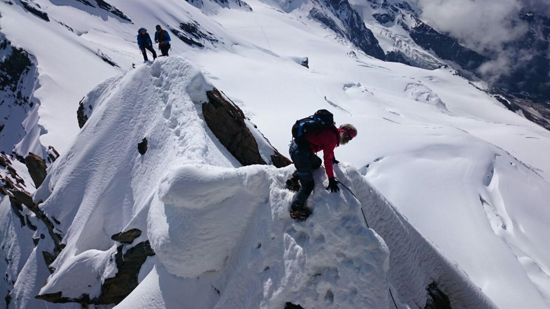 Viel Schnee in Grat, jedoch gut zu klettern mit Steigeisen.
