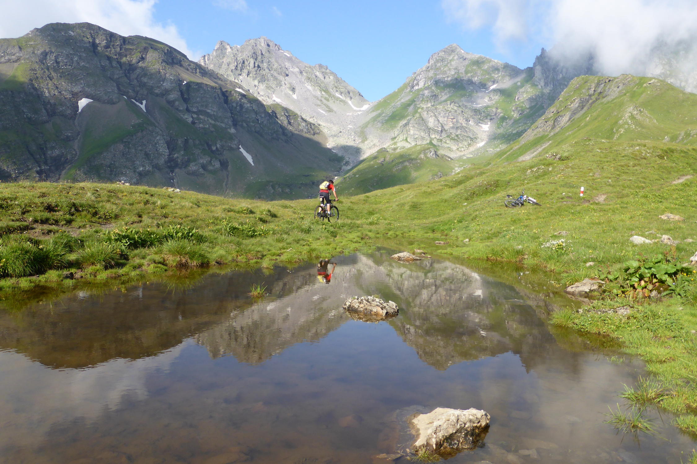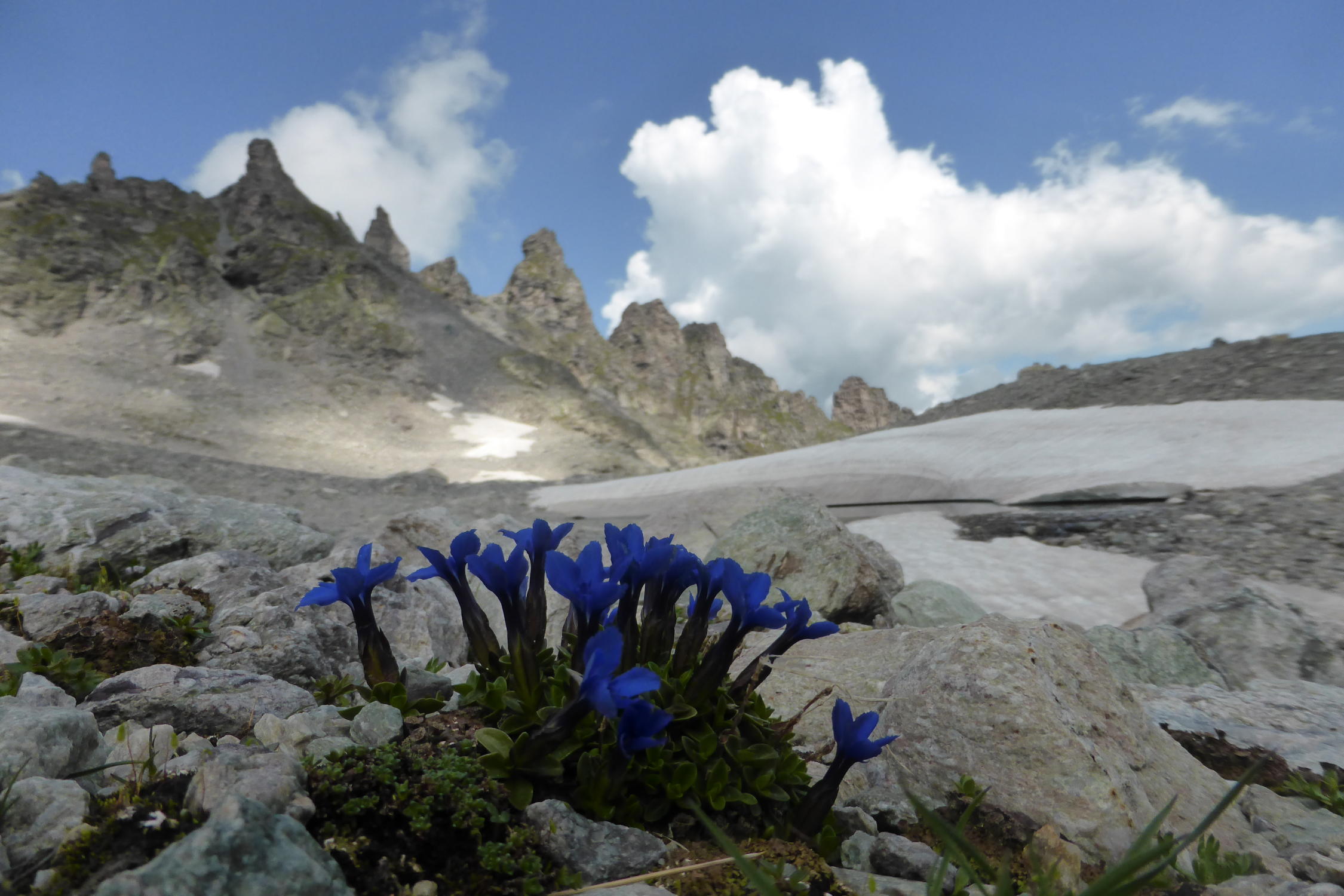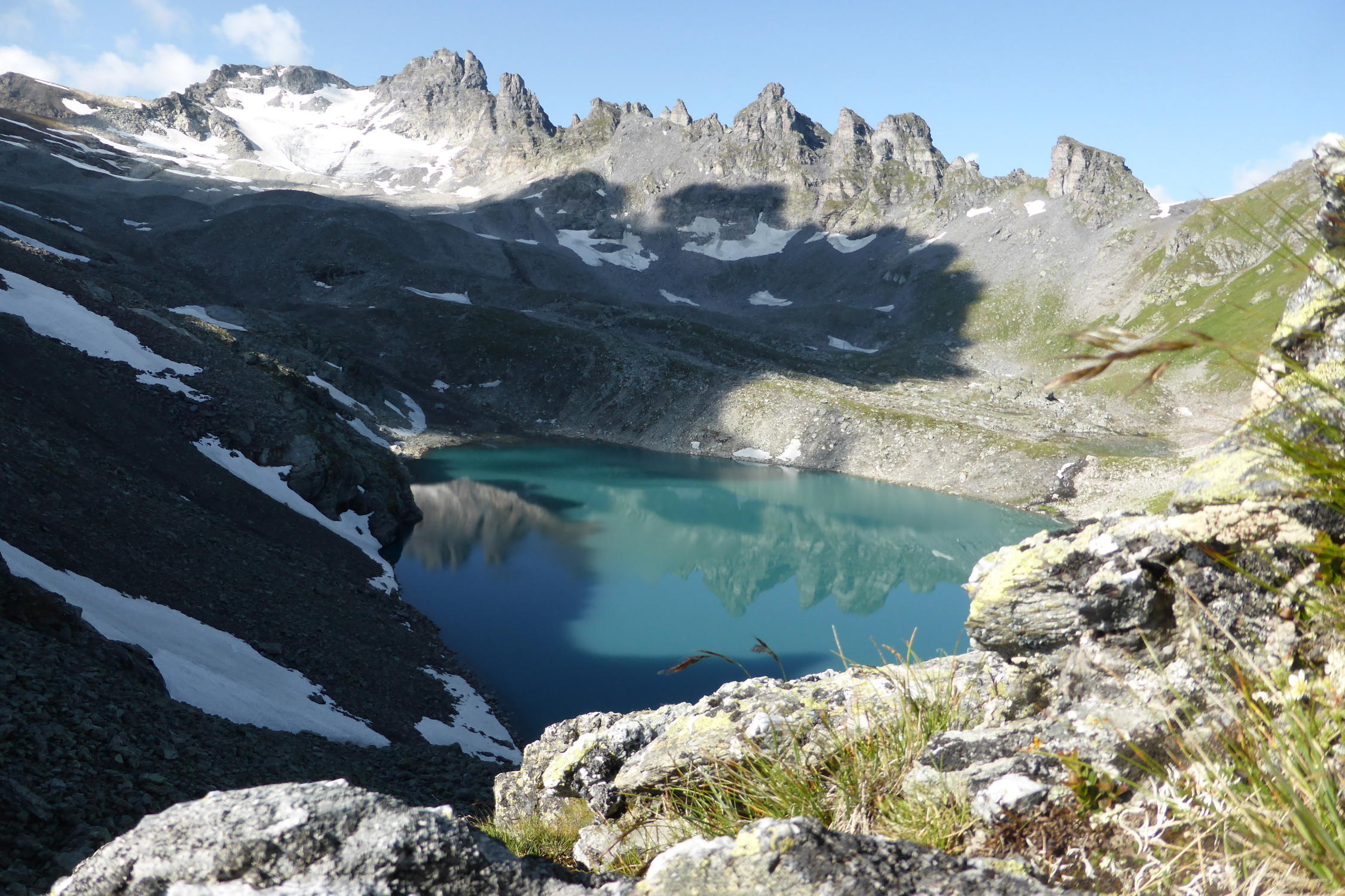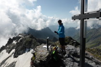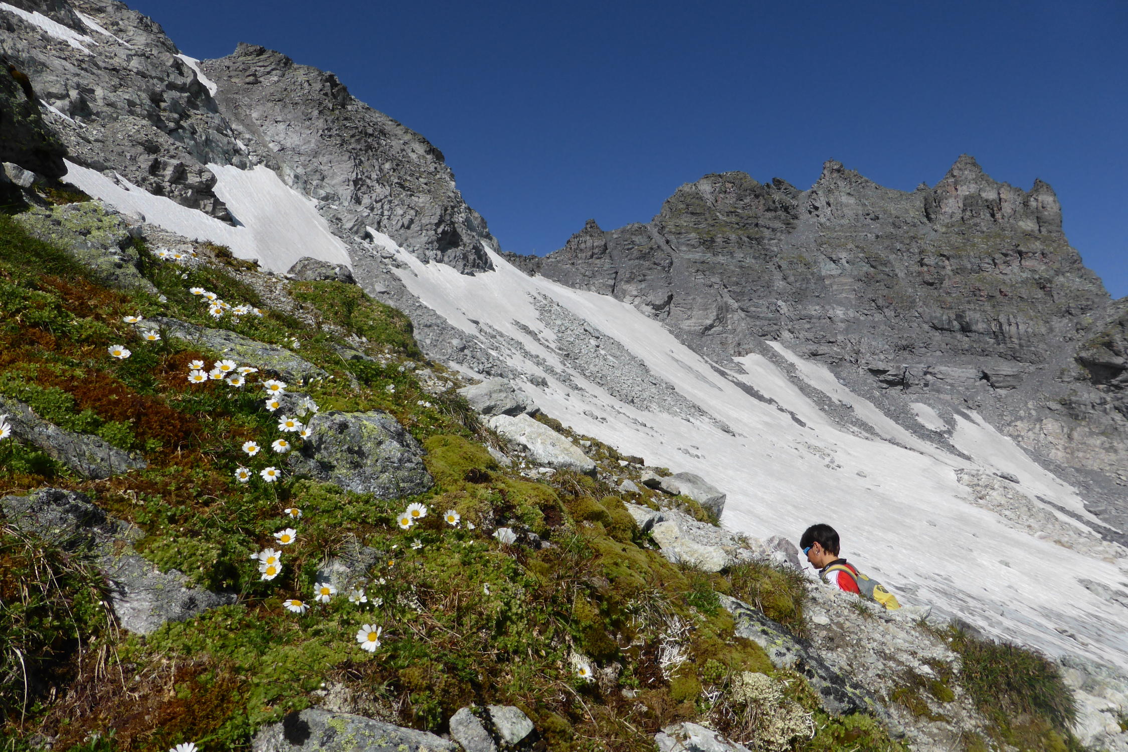 Der Weg über den Grat ist mit Seilen ausgestattet und bald schneefrei. Auf dem Gletscher liegt noch Schnee für den direkten Rückweg.