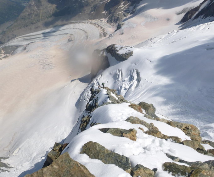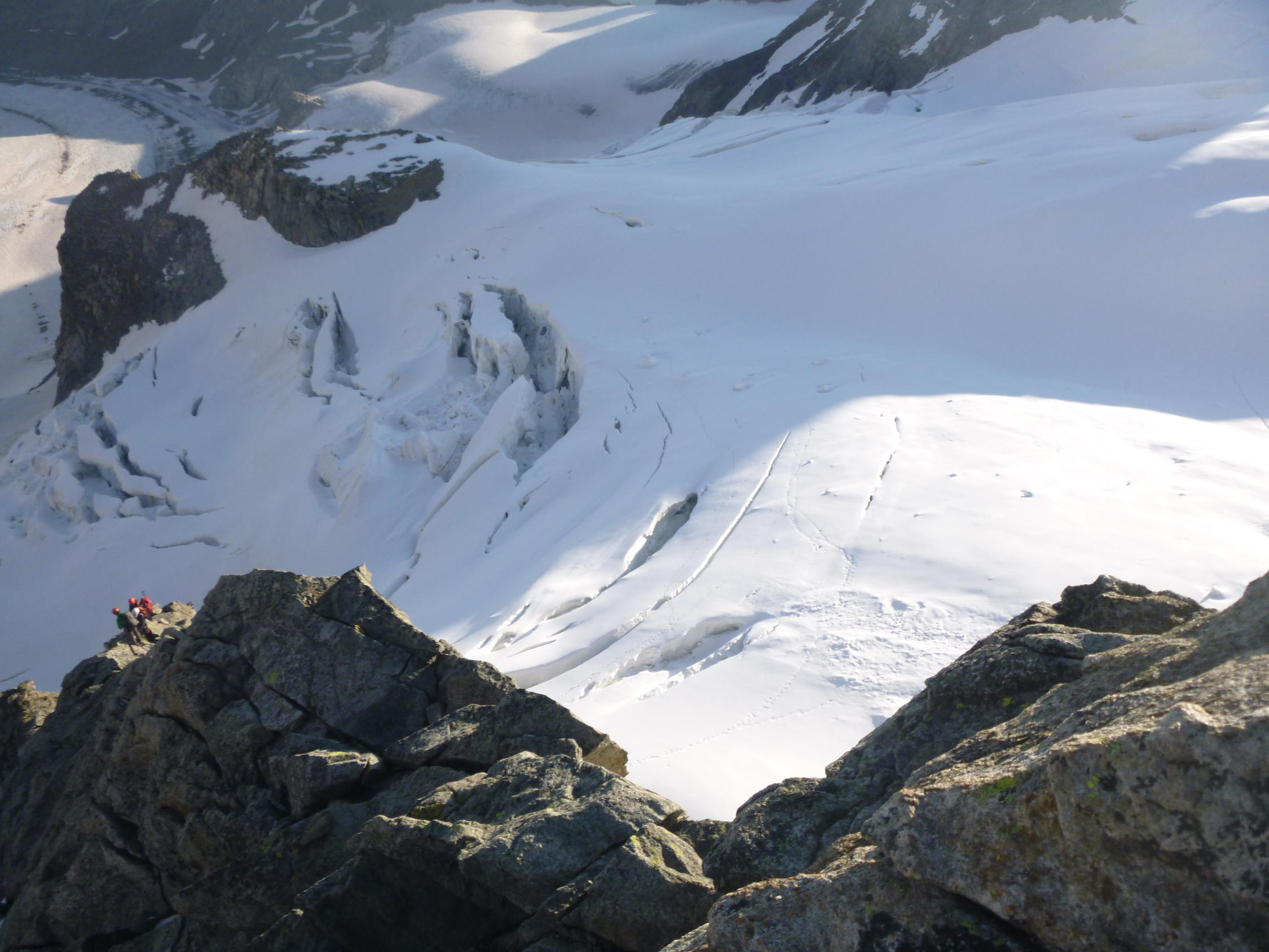 Sehr gute Verhältnisse am Grat, Zustieg und Bergschrund noch problemlos möglich, teilweise etwas Schnee auf dem Grat, hat aber nicht weiter gestört. Firnteil sehr guter Trittfirn.