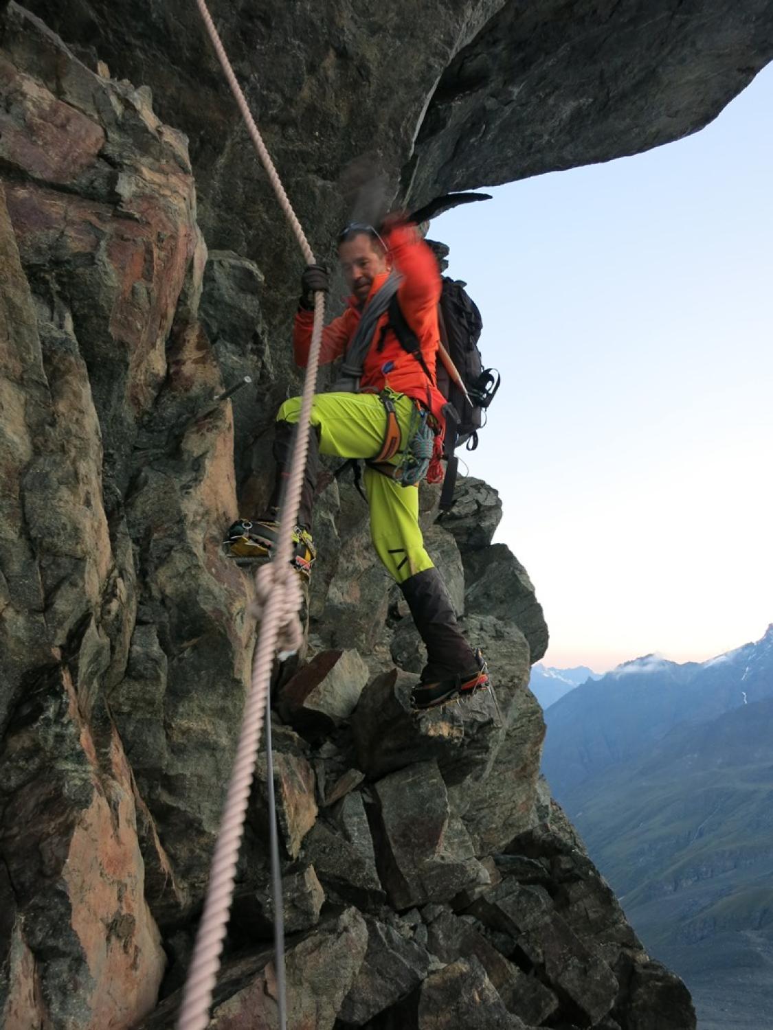 Start um 3:45 bei schönem und sternenklaren Sommerwetter und angenehmen Temperaturen. Bis zum Gipfel der Pfulwe gute Verhältnisse. Abstieg zum P.3265 ist teilweise mit Fix-Seilen und -Tauen abgesichert.