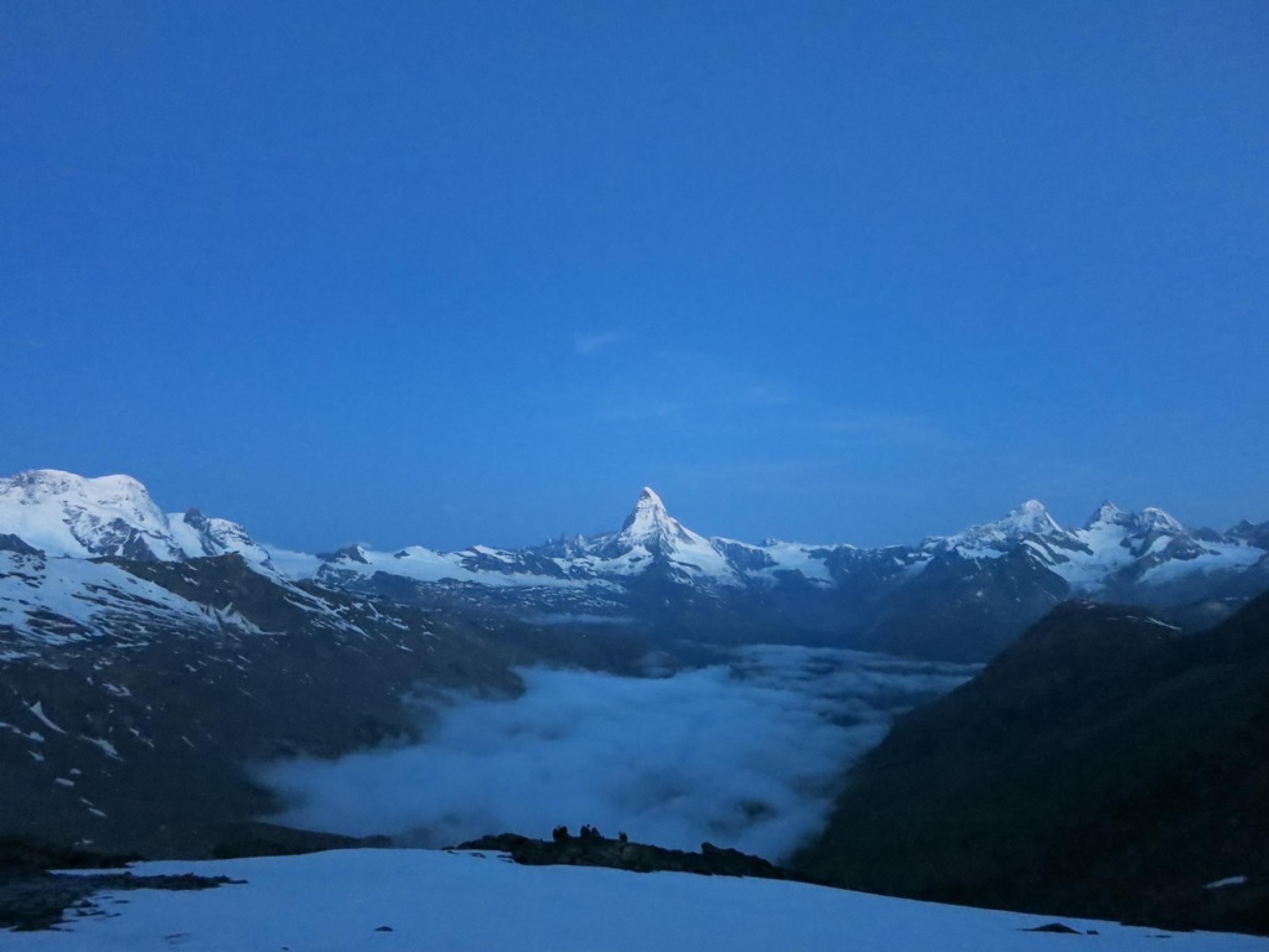 Früher Aufbruch lohnt sich, da sich die Besteigung des Rimpfischhorn‘s doch in die Länge zieht. Die im SAC-Führer angegebene Zeit von 4:30 ist schon ziemlich sportlich bemessen. Nette Bewartung im Berghaus Flue.
