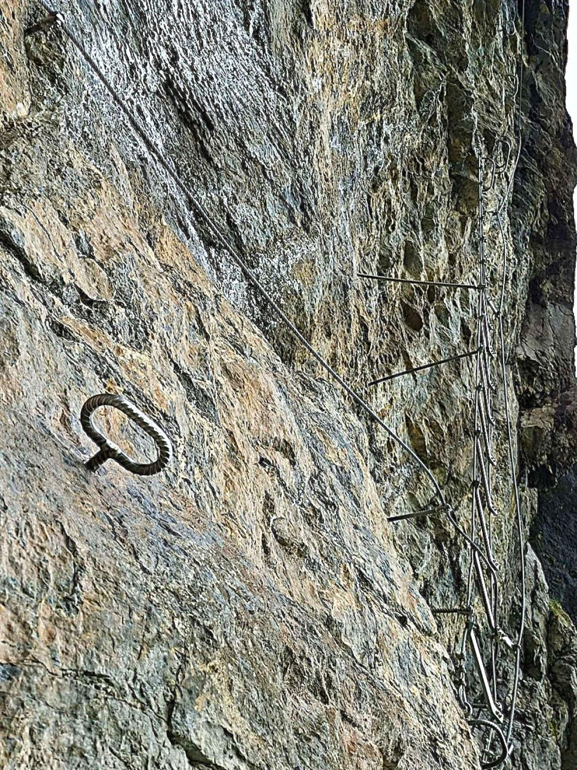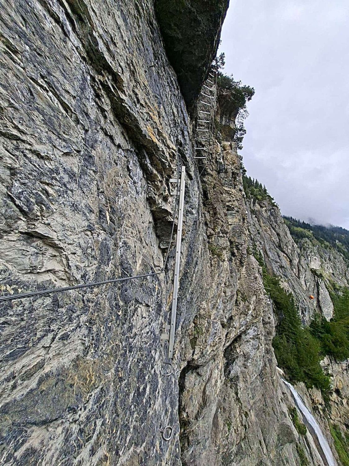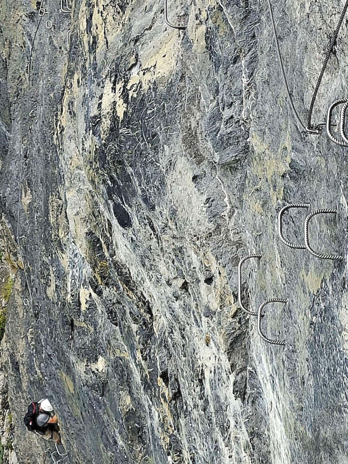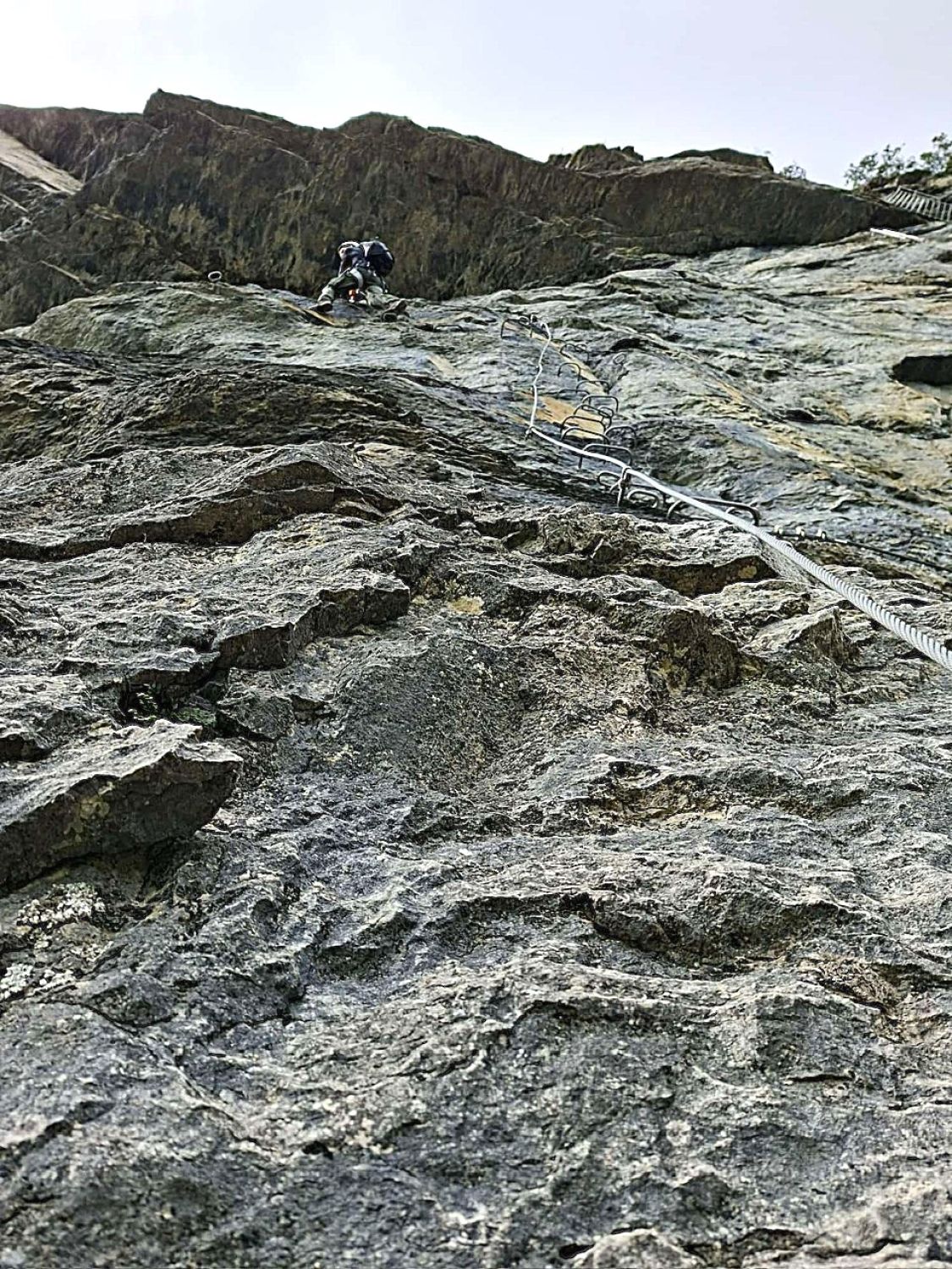 Einstieg um kurz nach 11 Uhr. Nach den sommerlichen Tagen und Wochen war es heute am Klettersteig zum ersten Mal etwas kühl und herbstlich aber ideal mit den Temperaturen. Trotz dem starken Regen in der Nacht war die Wand dank dem Wind überwiegend trocken.