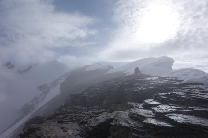 Auf dem Zackengrat hatten wir eine knappe Stunde lang Sonne und Blick auf die Walliser, dann war die Sicht wieder weg. Aber immerhin ...
