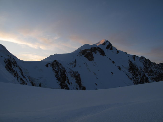 Gut eingeschneiter Glacier du Dôme sowie auch dessen westlicher Seitenarm. Auch der schmale Grat zum Dôme du Gouter bietet keine Schwierigkeiten. Danach breite Spur zum Mont Blanc via Bosses Grat. Abstieg zum Nid Aigle.Über den Maudit war keine Spur sichtbar, dort sollen die Verhältnisse stark vom Eisschlag geprägt sein.