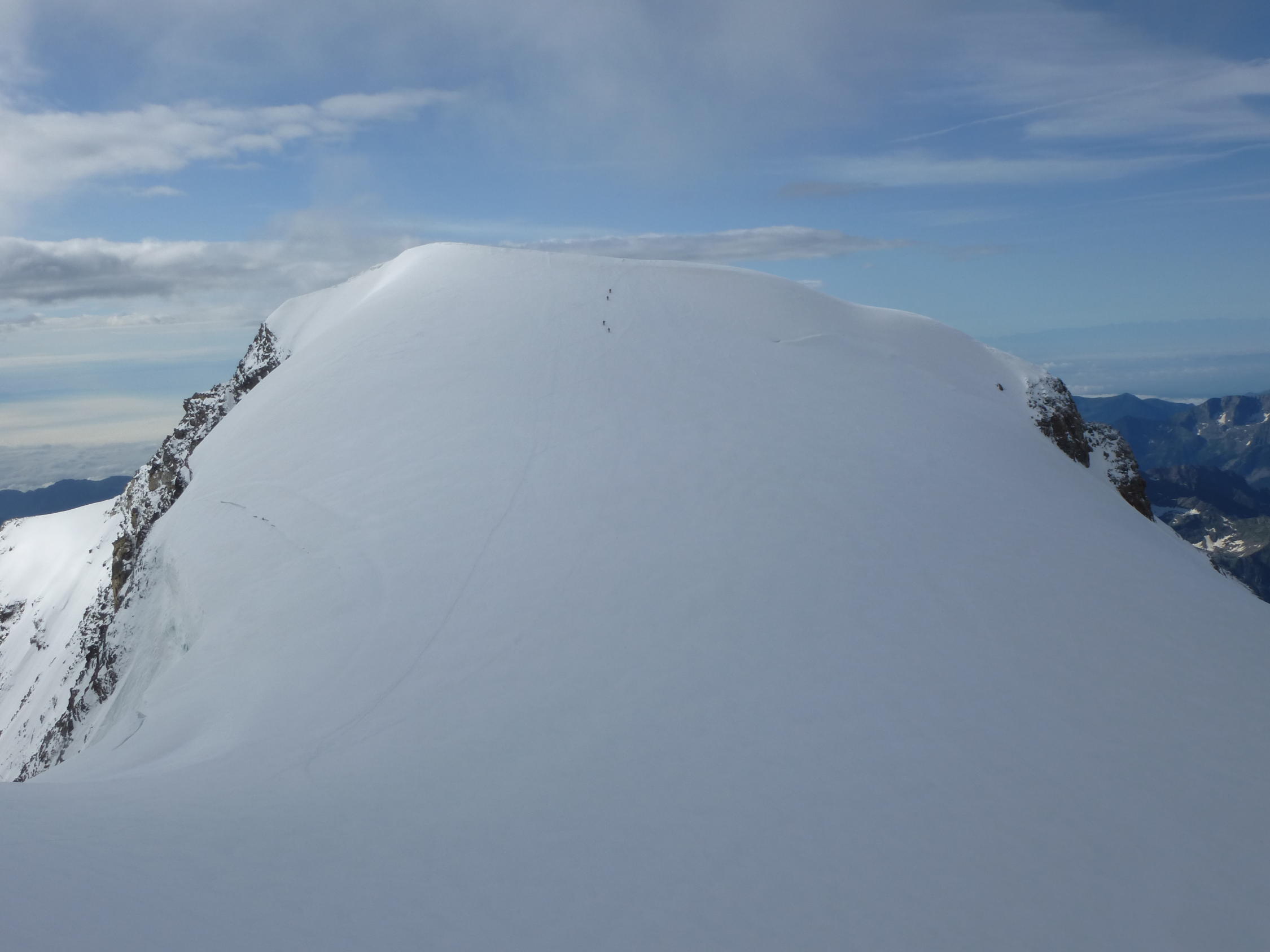 Vincentpyramide (4215m): NNW-Seite von Cab. Giovanni Gnifetti