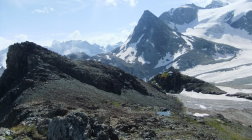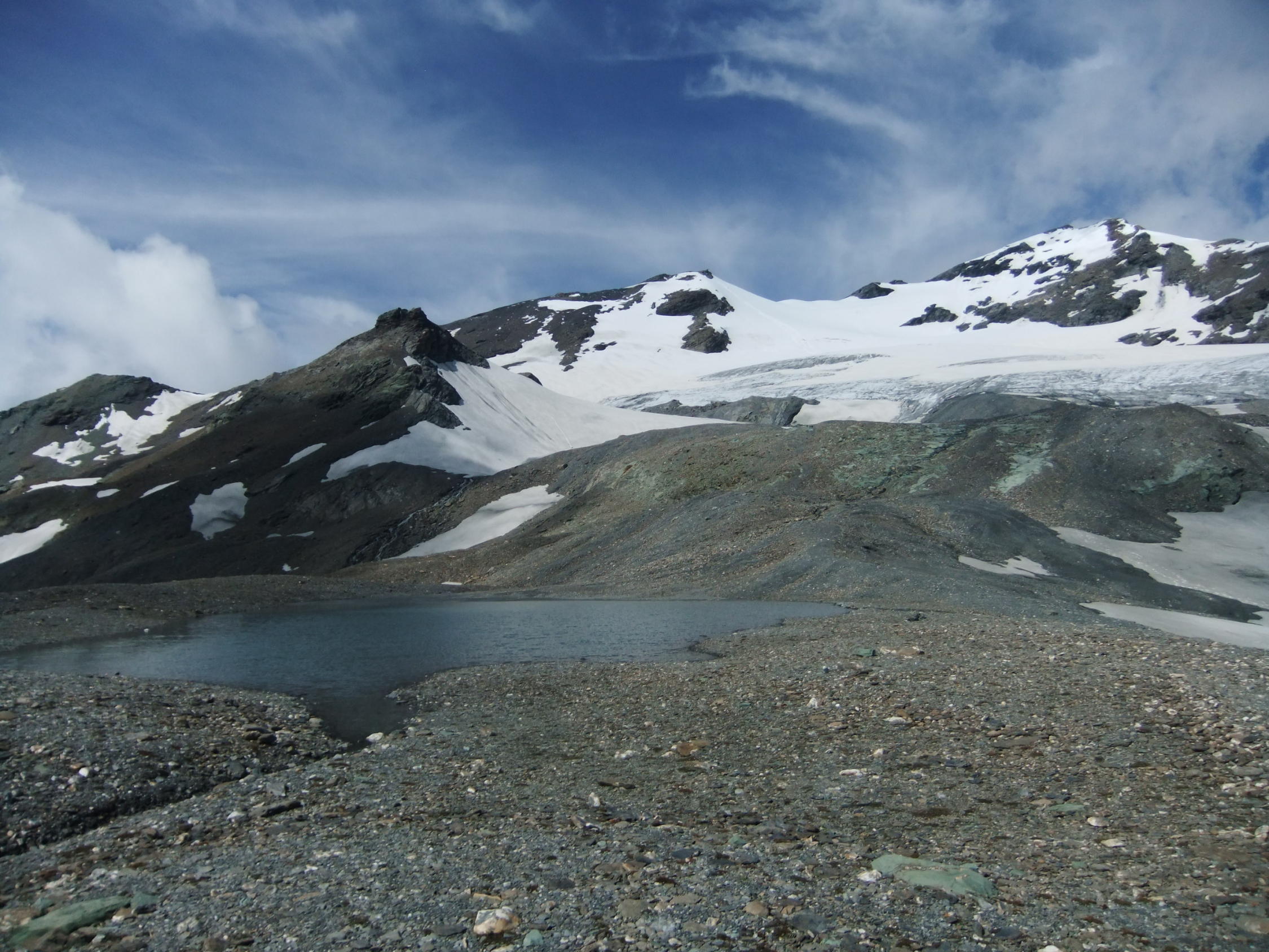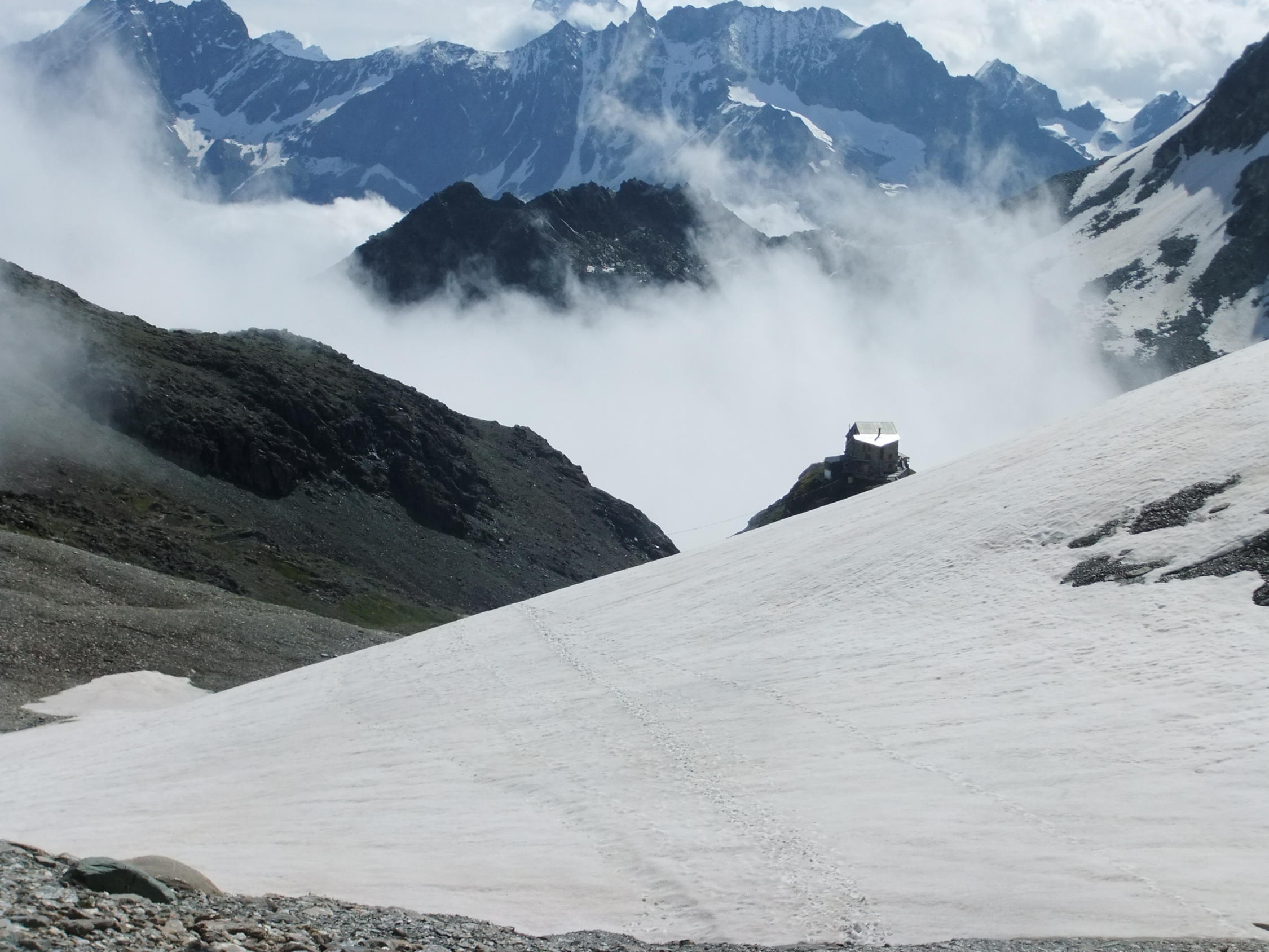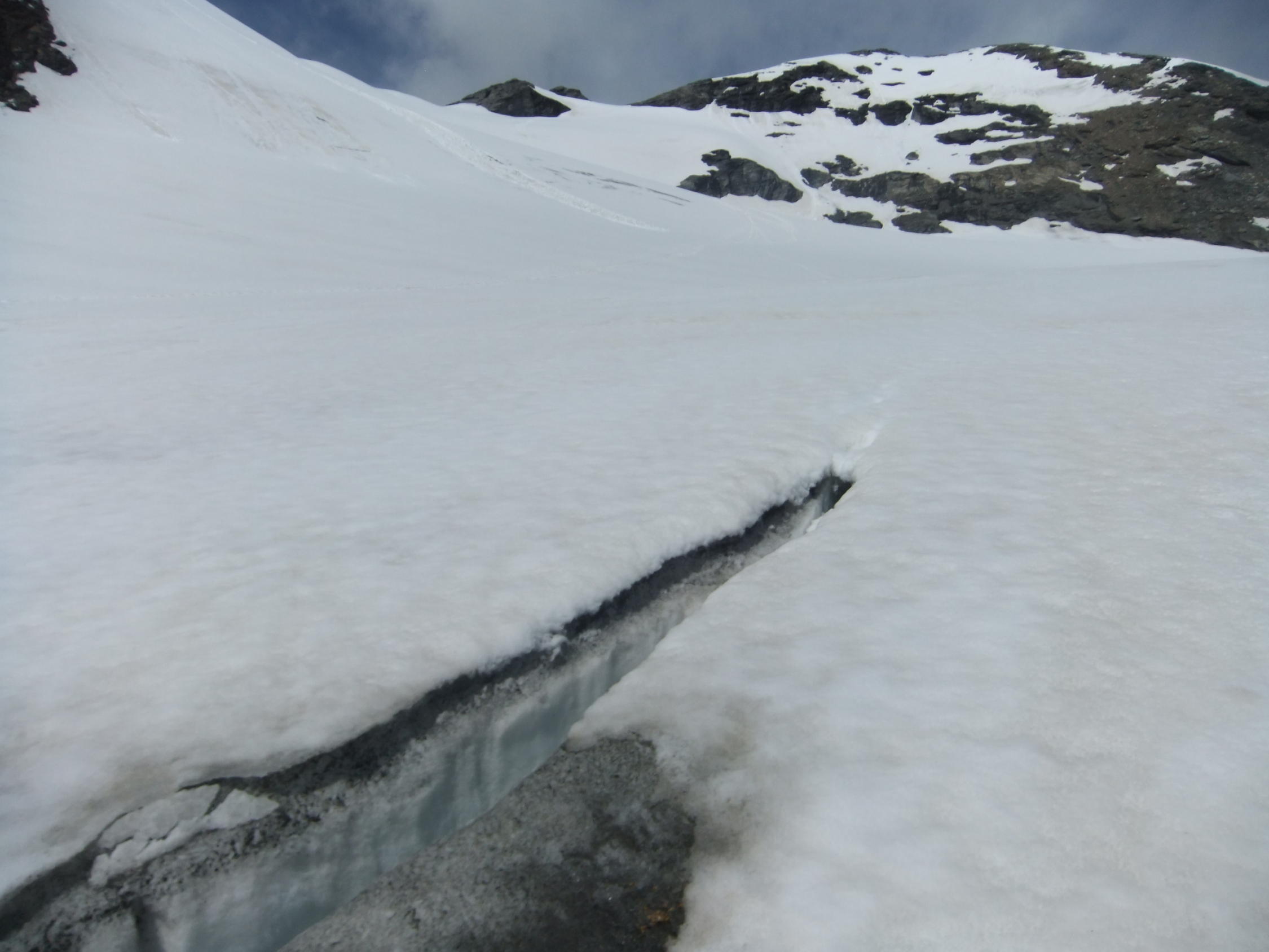 Im Aufstieg zum Gletscher kamen mir 4 Jugendliche von der Hütte mit Schaufeln und Hacken entgegen.