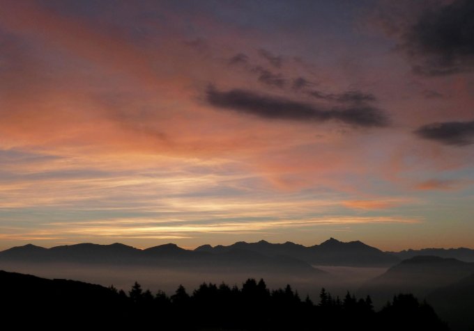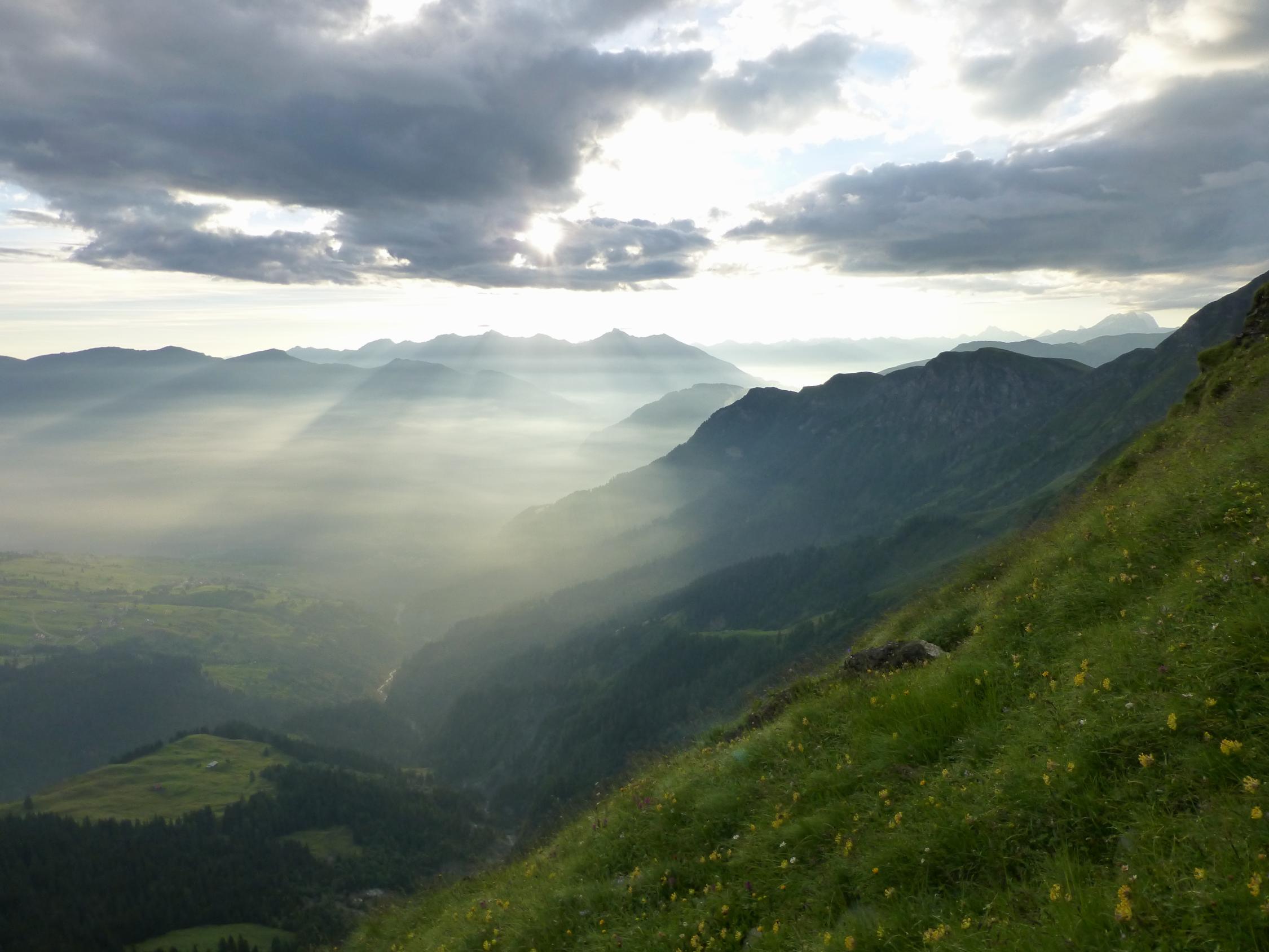 Pittoreske Morgenstimmung auf dem Glaspass (siehe Bilder), um 9.15 der erste Donner. Dann im Abstieg zieht ein Gewitter über den Piz Beverin, das mir eine unfreiwillige Dusche bescherte...