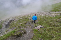 Der Alpweg von 1739 bis zur Lücke ist sehr nass und mit vielen Viehspuren.