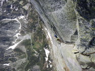 Absicherung eher so...so als gut, die Absicherung reicht aus für alle, die die Schwierigkeiten beherrschen, zusätzliche Sicherung ist nicht immer möglich. Vor allem der erste Bohrhaken erschien uns oft zu hoch gesetzt. In einer Seillänge ohne Sicherungsmöglichkeiten z.B. 1. BH in 10m Höhe. Oder in der 4. SL Querung nach Stand auf Platte und über kurze Steilstufe ohne BH/Sicherungsmöglichkeit hoch.